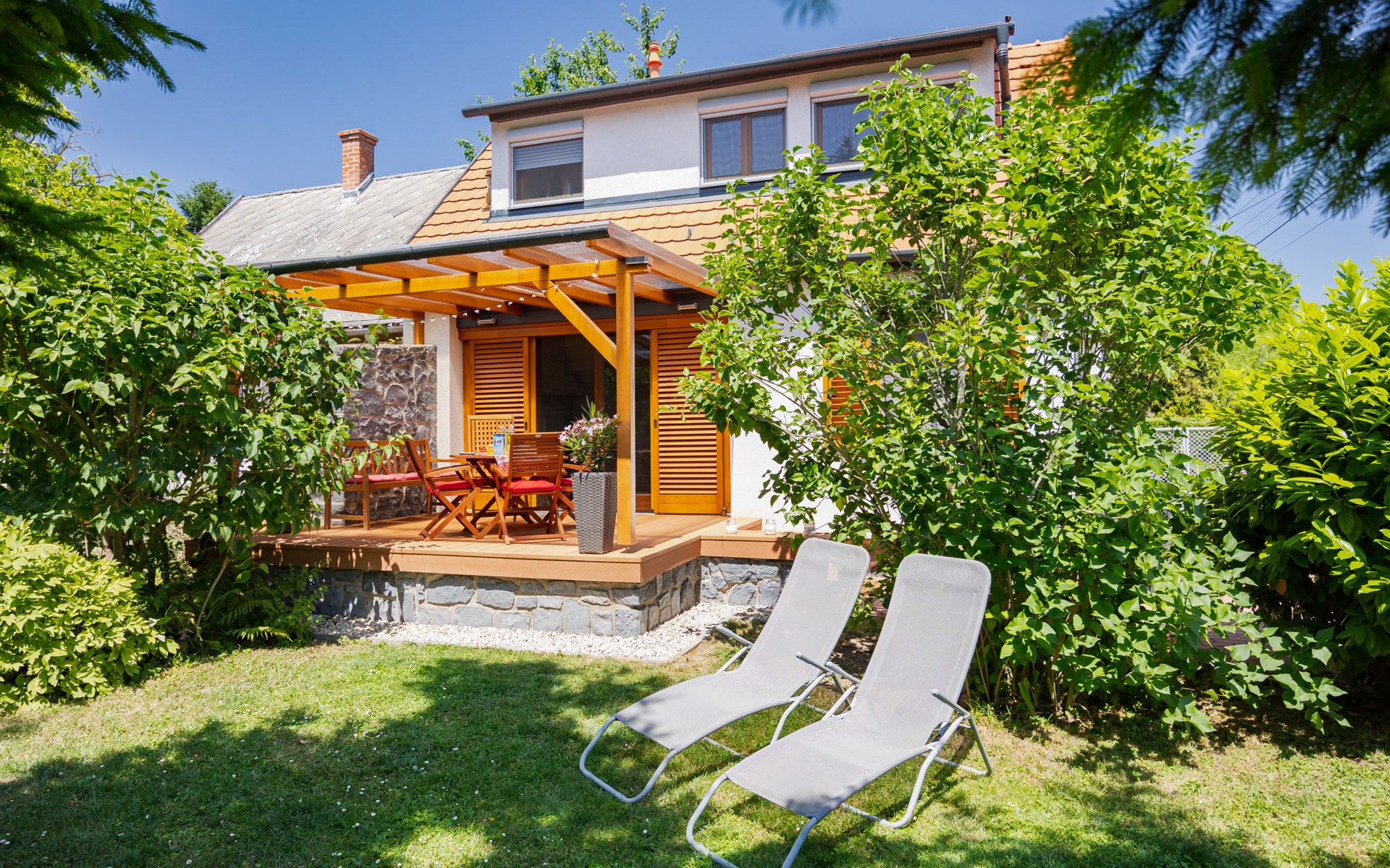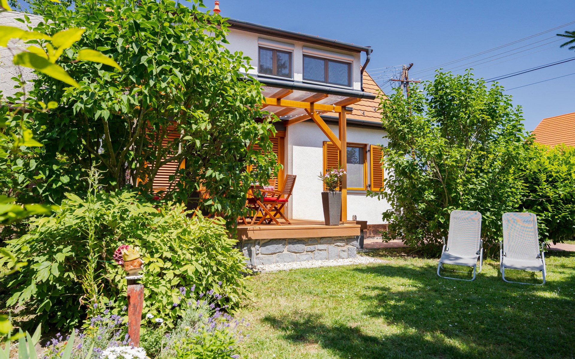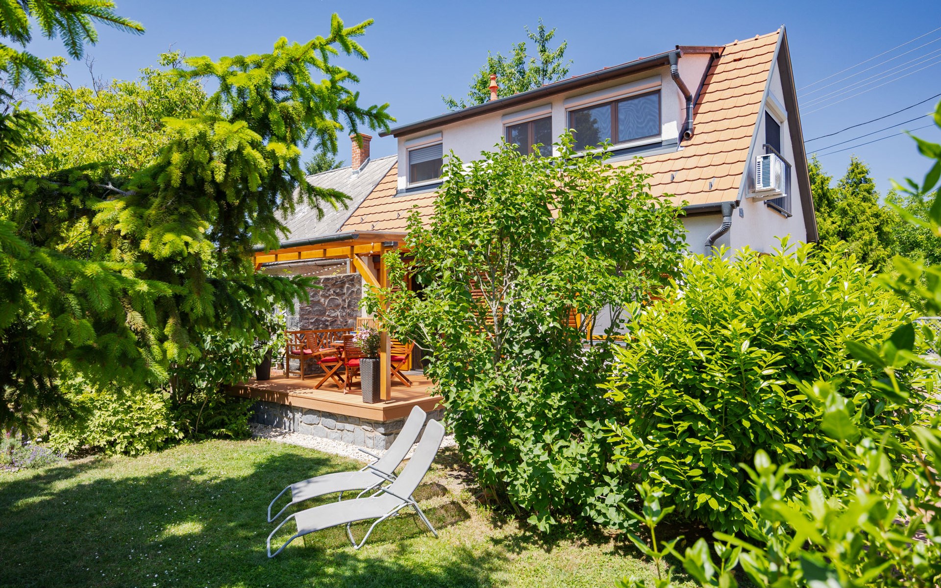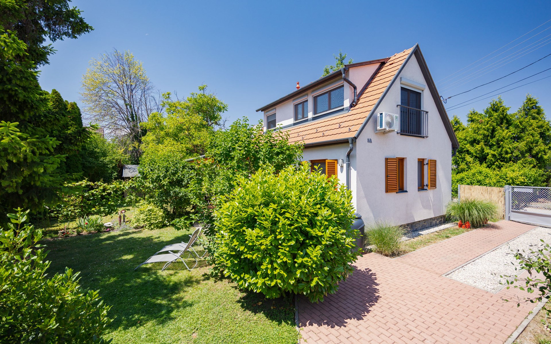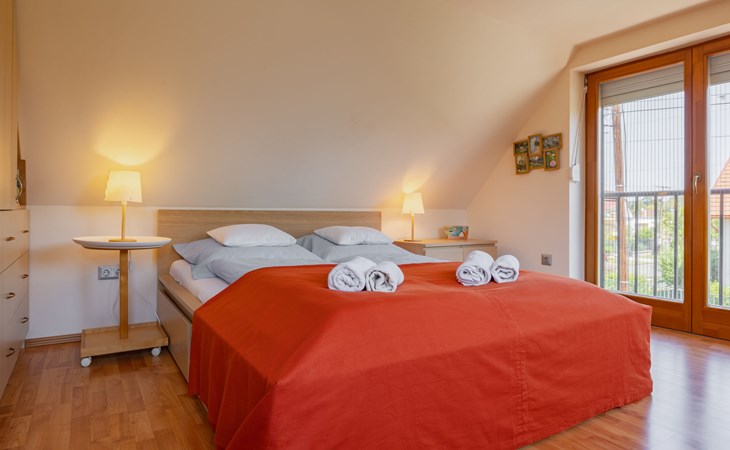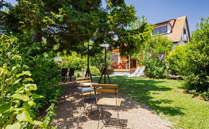Balatonakali 15 km van Balatonfüred: Gezellige, comfortabele twee onder één kap woning "Clarissa", van 2 verdiepingen. In de plaats, 200 m van het meer, 1 km van het strand. Voor alleengebruik: terrein (omheind), tuin (niet omheind) bloemen en bomen. (schommel). In het huis: Internet (WiFi), centrale verwarming, air-conditioning, wasmachine. Parkeerplaats op het terrein. Supermarkt 550 m, restaurant 280 m, bakkerij, café 550 m, fietsverhuur 900 m, bushalte "Balatonakali, bejárati út" 400 m, treinstation "Balatonakali-Dörgicse" 650 m, thermaalbad "Hévíz" 52 km. Jachthaven 400 m, golfterrein (18 holes) 6 km, tennis 4 km, tennishal 14 km, manege 15 km, sportcentrum 14 km, fietspad 50 m, kinderspeelplaats 350 m. Attracties in de buurt: Balatonudvari Golf Club 60 km, Tihany templom 13 km, Balatonfüred Annagora Aquapark 14 km, Badacsony 25 km, Folly Arboretum 20 km, Veszprém Zoo 40 km. Baby uitrusting op aanvraag (incl.). De eigenaar accepteert geen jeugdgroepen. De sleuteloverdracht vindt plaats bij het agentschap Interhome in Balatonfüred, 15 km. Spoorweg in de buurt 100 m van het huis.