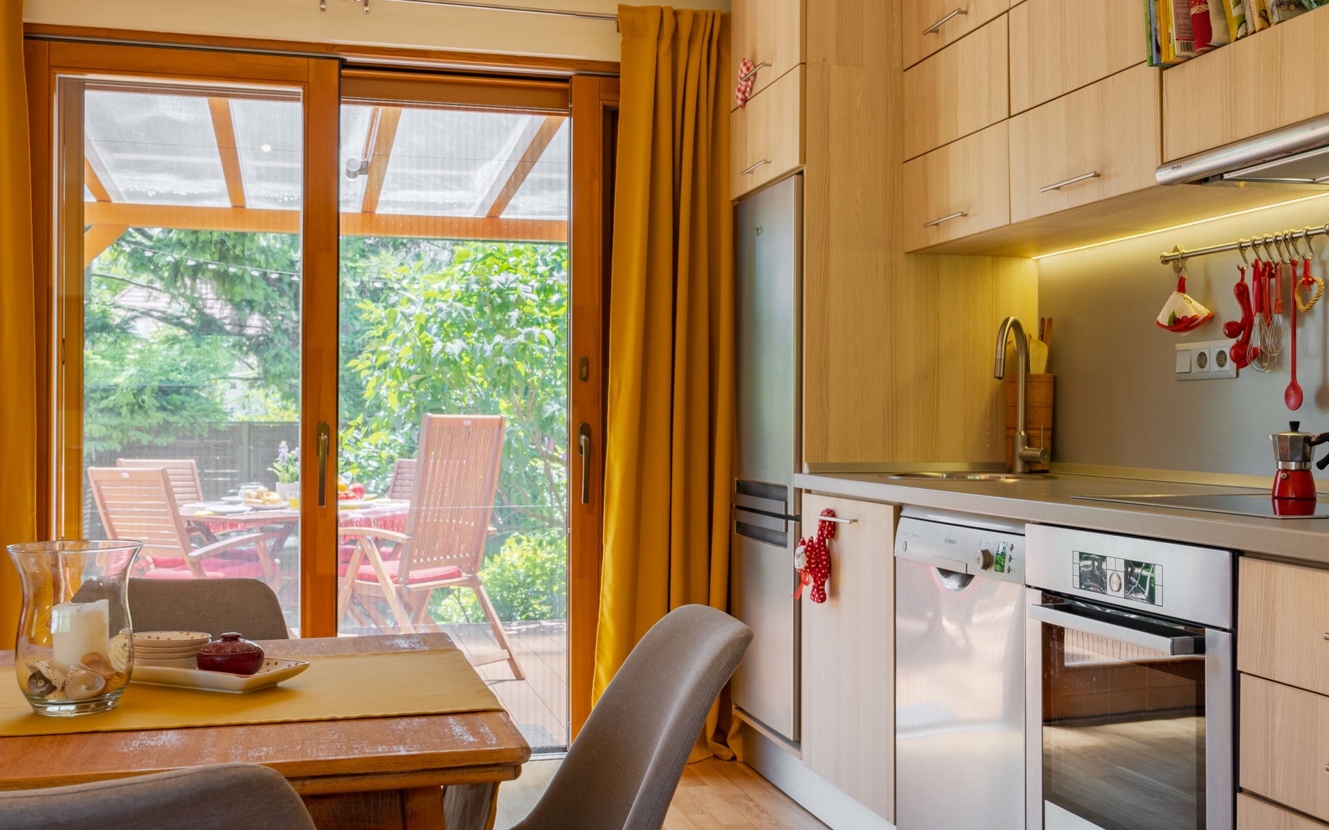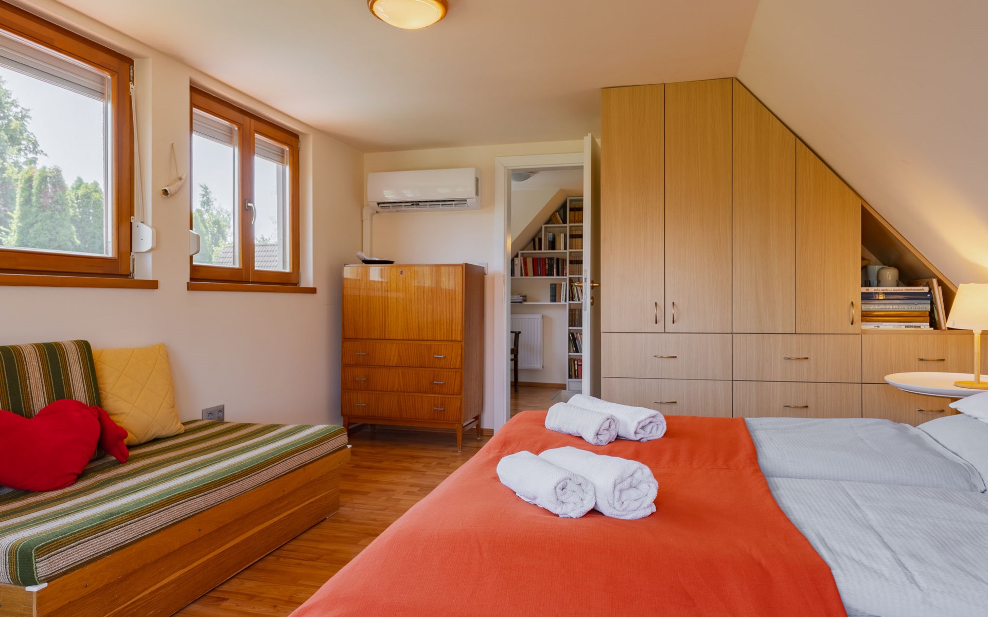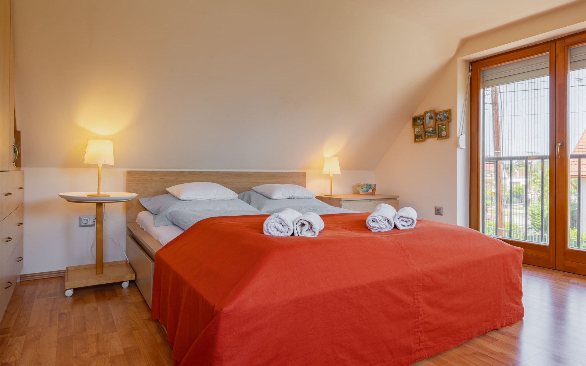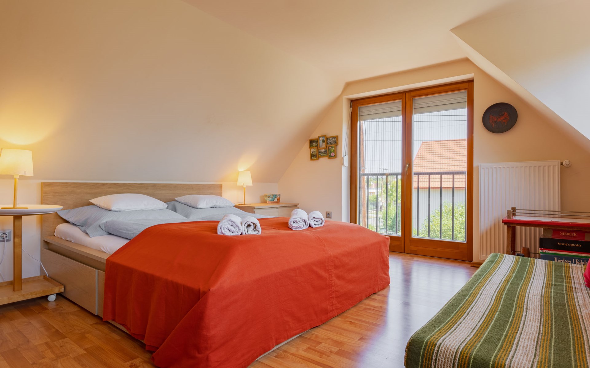 Balatonakali 15 km van Balatonfüred: Gezellige, comfortabele twee onder één kap woning "Clarissa", van 2 verdiepingen. In de plaats, 200 m van het meer, 1 km van het strand. Voor alleengebruik: terrein (omheind), tuin (niet omheind) bloemen en bomen. (schommel). In het huis: Internet (WiFi), centrale verwarming, air-conditioning, wasmachine. Parkeerplaats op het terrein. Supermarkt 550 m, restaurant 280 m, bakkerij, café 550 m, fietsverhuur 900 m, bushalte "Balatonakali, bejárati út" 400 m, treinstation "Balatonakali-Dörgicse" 650 m, thermaalbad "Hévíz" 52 km. Jachthaven 400 m, golfterrein (18 holes) 6 km, tennis 4 km, tennishal 14 km, manege 15 km, sportcentrum 14 km, fietspad 50 m, kinderspeelplaats 350 m. Attracties in de buurt: Balatonudvari Golf Club 60 km, Tihany templom 13 km, Balatonfüred Annagora Aquapark 14 km, Badacsony 25 km, Folly Arboretum 20 km, Veszprém Zoo 40 km. Baby uitrusting op aanvraag (incl.). De eigenaar accepteert geen jeugdgroepen. De sleuteloverdracht vindt plaats bij het agentschap Interhome in Balatonfüred, 15 km. Spoorweg in de buurt 100 m van het huis.