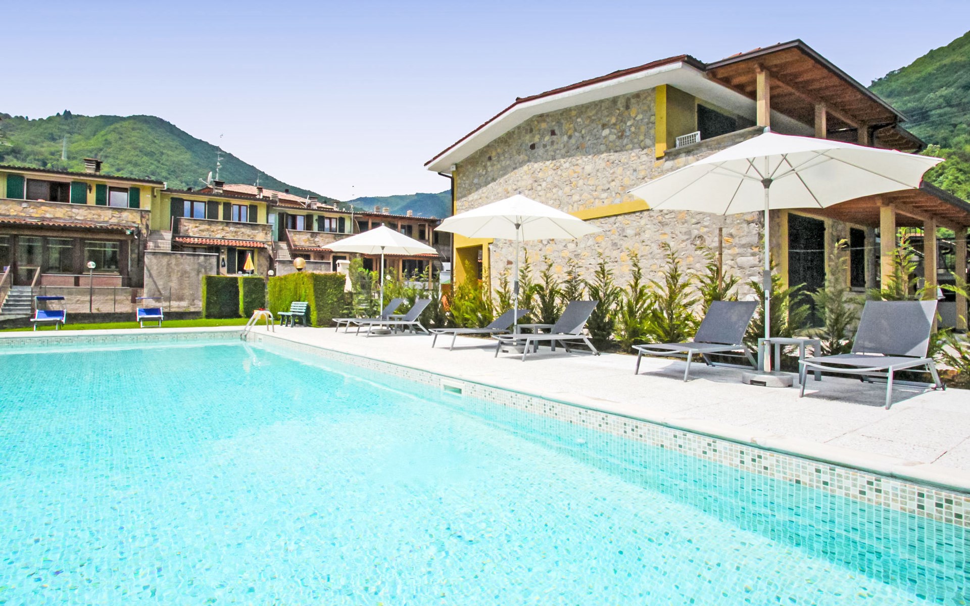 Mooi, comfortabele residentie "Elettra", 380 m boven zeeniveau. 12 appartementen in de woning. In het gehucht Pieve Vecchia, 1 km van het centrum van Idro, rustige ligging, 500 m van het meer, 50 m van de rivier. Voor medegebruik: tuin met gazon en bomen, openluchtzwembad (14 x 7 m, 100 - 140 cm diepte, seizoensgebonden beschikbaarheid: 15.Mei. - 15.Sep.). Buitendouche, tuinmeubelen, grill. In het complex: internetaansluiting, Internet (WiFi), tafeltennis, tafelvoetbal, bergruimte voor fietsen, zonneterras, wasmachine (voor medegebruik). Luchthaventransfer (extra). Parkeerplaats bij het huis. Levensmiddelenwinkel, restaurant 50 m, bar, bushalte 100 m, rotsstrand 500 m, thermaalbad "Terme di Comano" 55 km. Bekende meren kunnen gemakkelijk worden bereikt: Lago di Garda 40 km, Lago di Ledro 40 km. De afgebeelde foto is slechts een voorbeeld. Vergelijkbare accommodaties kunnen worden geboekt.