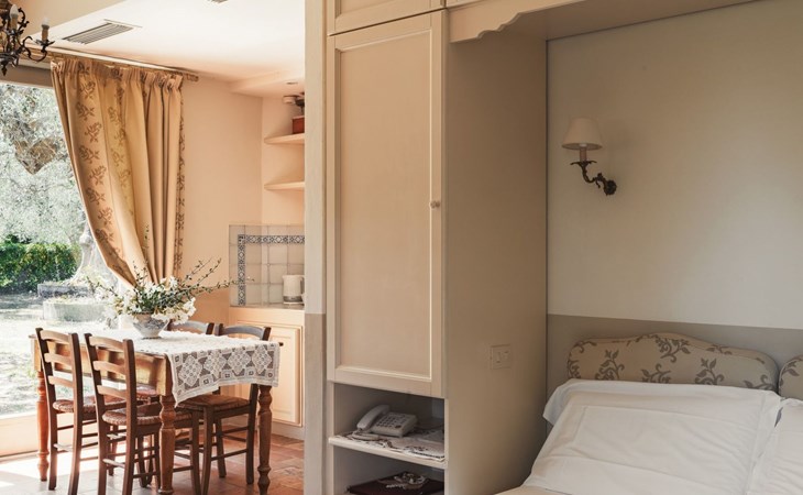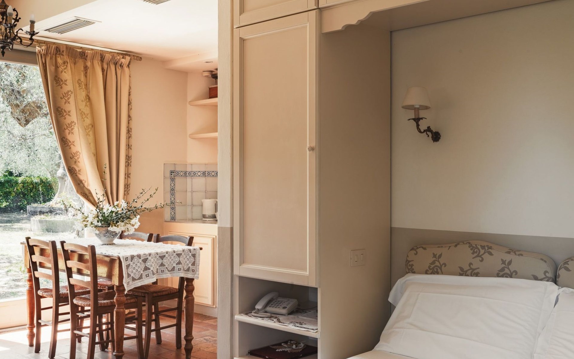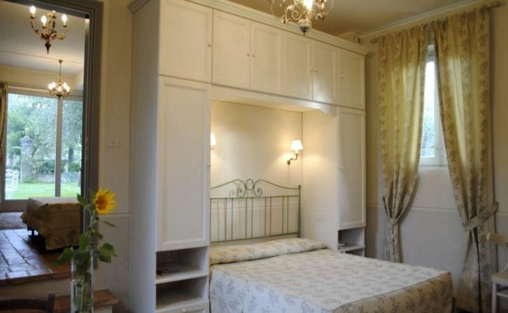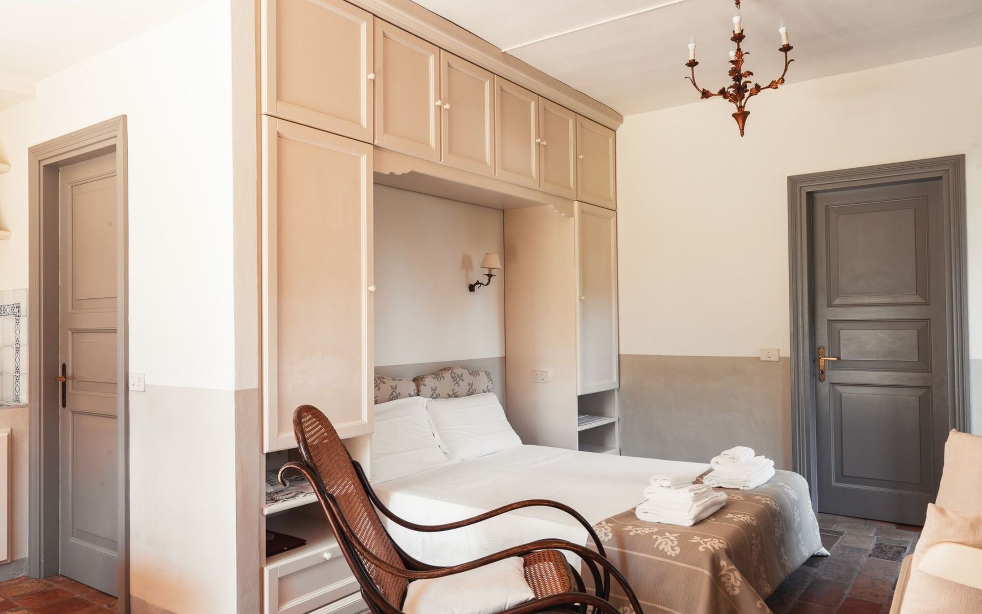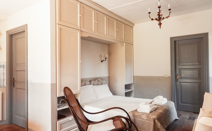 The two-room apartment is located inside the Pignocco Country House, an 18th-century farmhouse that has been finely restored and converted into non-hotel accommodation. Nestled in the Marche hills, just 5 km from the historic centre of Pesaro and the sea, it is the ideal place for a holiday among nature, sea and culture, with the possibility of visiting the main historical and artistic locations in the province of Pesaro Urbino.The farmhouse, purchased by the grandfather in 1952 and for a long time the family's country residence, has been carefully restored and converted into cosy holiday flats, furnished with furniture restored directly by the owners or custom-made by local craftsmen. Surrounding the property is a large garden enriched with pines, cypresses, laurels and wild vegetation, providing an authentic and relaxing atmosphere. There is a summer swimming pool immersed in a centuries-old olive grove, equipped with deckchairs and sunbeds, perfect for regenerating yourself on hot days. Outdoor areas with barbecues and garden tables complete the experience, ideal for pleasant convivial moments in the open air.The two-room flat, located on the ground floor of the old barn, consists of two main rooms and is tastefully furnished, retaining some original details. The first room is used as a living area, with a country-style kitchen, a wooden and crystal dining table and a cosy sleeping corner with a double bed set under a built-in wardrobe. The second room is a real double bedroom, reached by passing through a door and up three steps, designed to provide additional privacy and comfort. There are also two bathrooms, practical and functional, making the flat ideal for two couples or a family. A window with original masonry grilles, once used to ventilate the grain, now provides an evocative play of light and shade. Delicate furnishings with matching fabrics and antique chandeliers create a harmonious atmosphere. Outside, a charming relaxation area under a centuries-old olive tree invites you to sip an aperitif or dine with family or friends, making every stay an unforgettable experience.The flat is located in a quiet and familiar environment, ideal for those who want a relaxing holiday. The nights are quiet and guarantee a peaceful rest, while a rich breakfast can be booked in the morning. There is also a tourist information point available for guests, useful for discovering the beauty of the area. The owners, resident in the structure, offer a discreet but always available presence for any need.In the surrounding area you can visit the Monte San Bartolo Natural Park, which offers scenic trails, bicycle and e-bike paths and viewpoints overlooking the sea. There are also Villa Caprile, with its water games in the Italian-style gardens; Villa Imperiale, a Renaissance jewel; Fiorenzuola di Focara, a medieval village overlooking the sea; the spectacular Furlo Gorge, the most famous canyon in the Marche; Gradara, with its castle and the legend of Paolo and Francesca; Urbino, the city of Raphael and UNESCO World Heritage site; Mondavio, among the most beautiful medieval villages in Italy. IT041044B97SULLU9R
