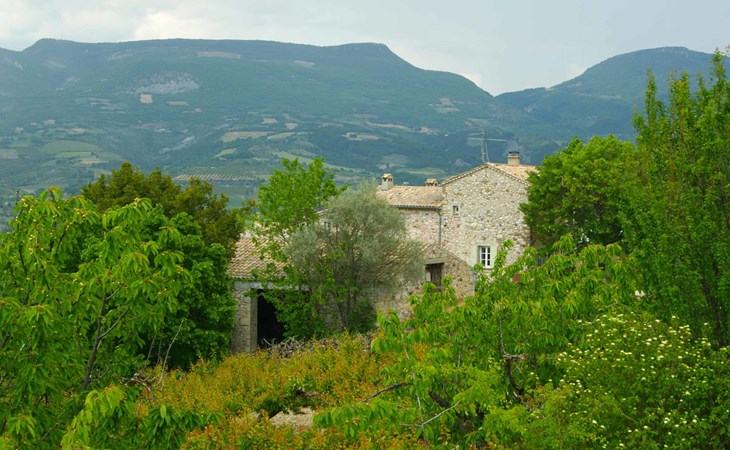 Besignan 11 km van Buis les Baronnies: Het stenen rijtjeshuis "La maison du Brun" ligt in een gehucht met 4 huizen en is omgeven door bomen. Rijtjeshuis "Du Brun", omgeven door bomen. In een gehucht met 4 huizen, buiten de plaats, 5 km van het centrum, geïsoleerde, rustige ligging, te midden van groen. Voor alleengebruik: verzorgde tuin met planten en bloemen, parkeerplaats op het terrein. Winkel 11 km, levensmiddelenwinkel 5 km, supermarkt 11 km, restaurant 5 km, bushalte "Mirabel-aux-Baronnies Mairie" 29 km, openluchtzwembad 11 km. Manege 3 km. Attracties in de buurt: Via ferrata, Mont Ventoux 50 km. Wandelgebied le Lubéron. Auto noodzakelijk. Tegenover het huis is een schuur.