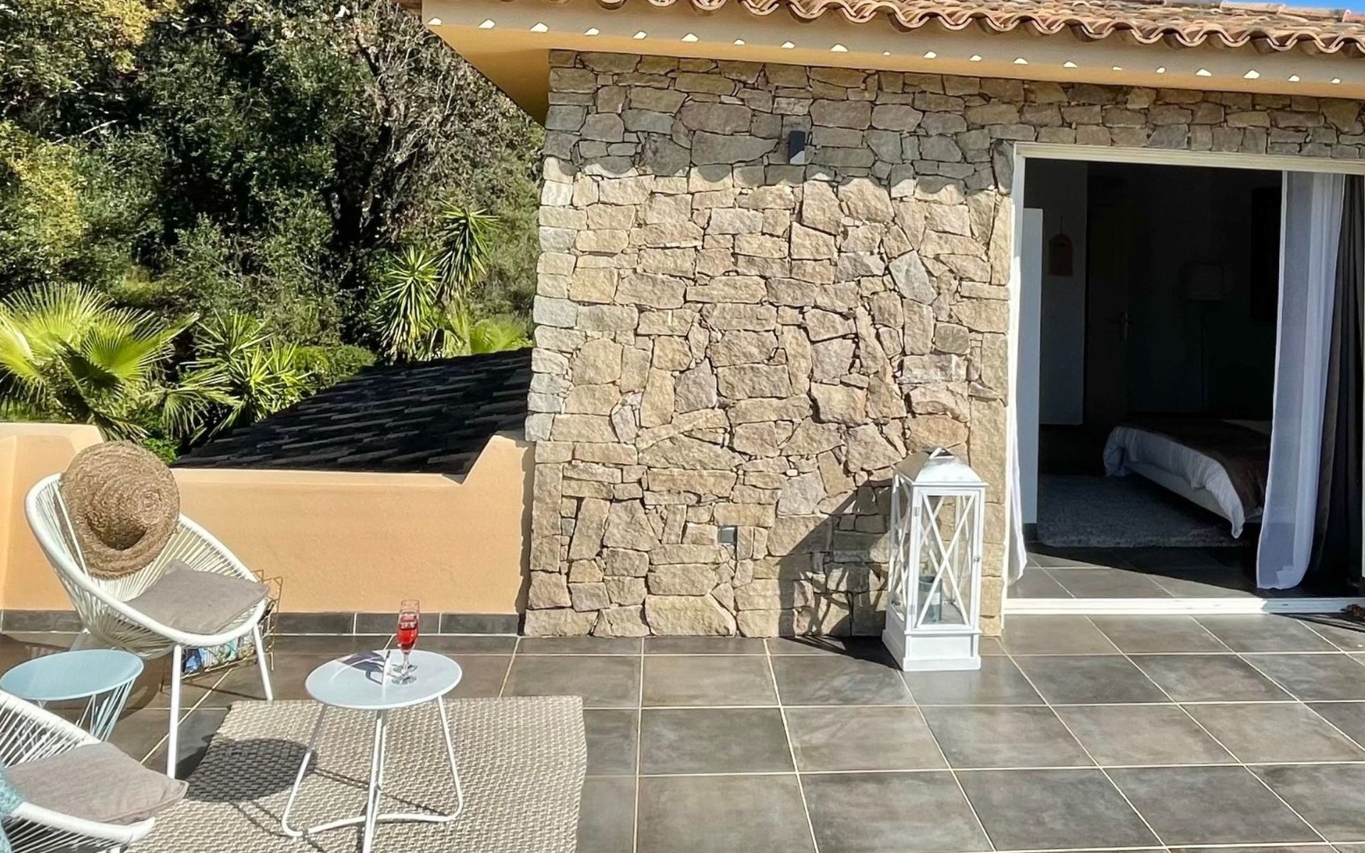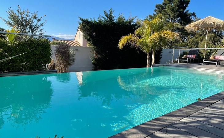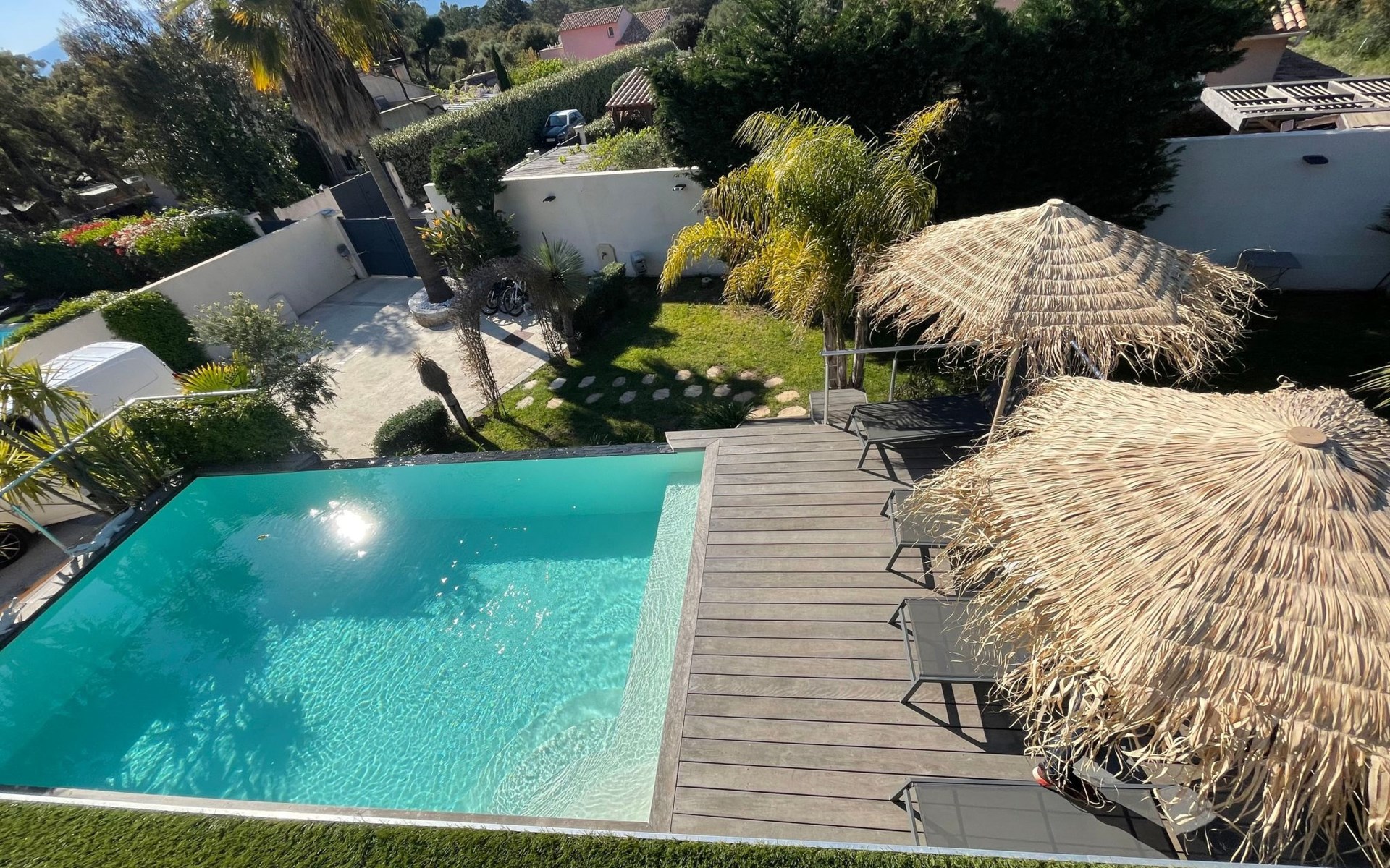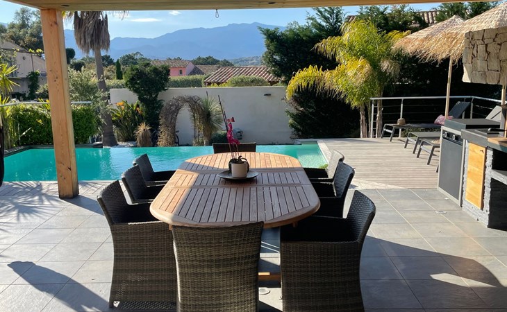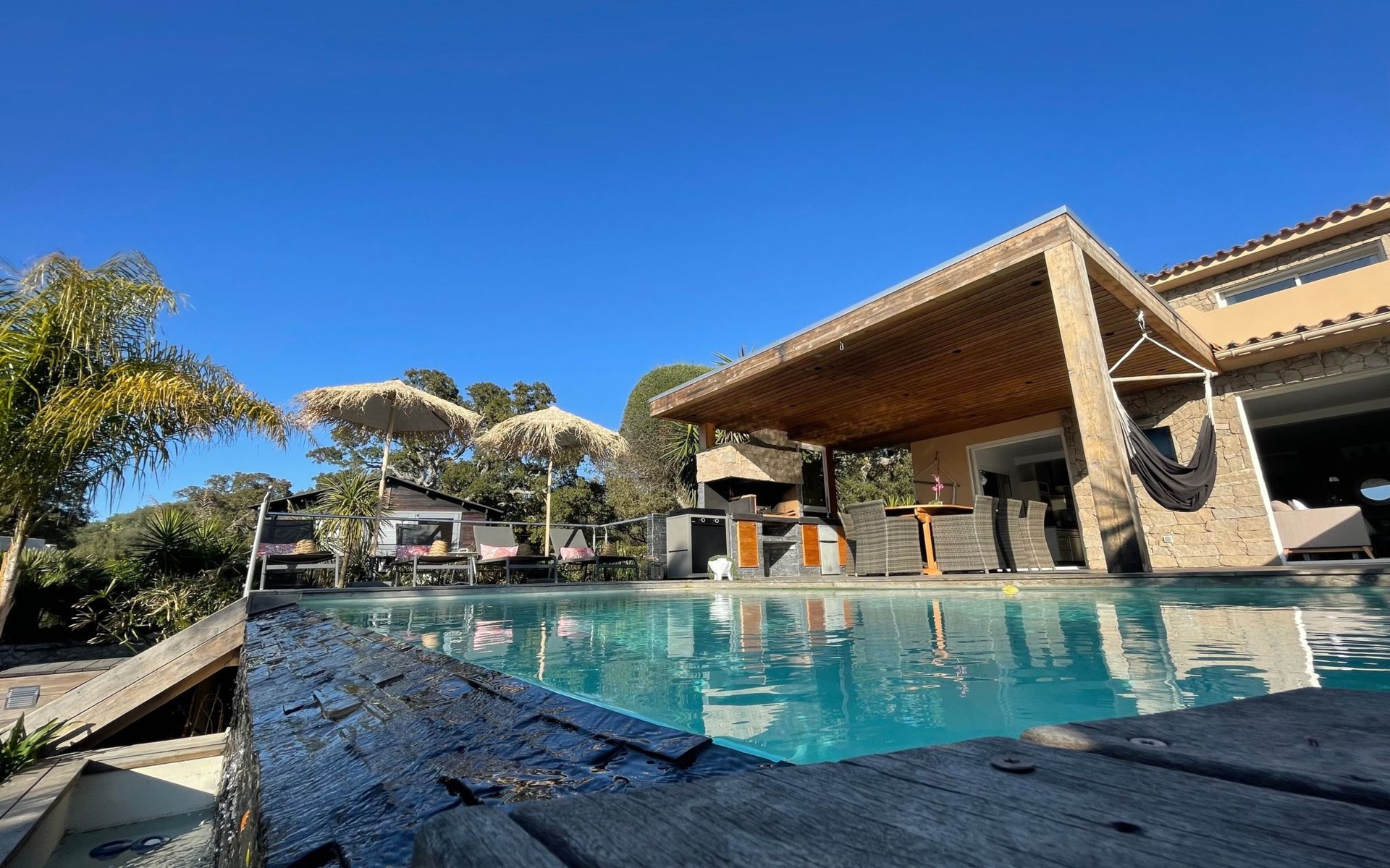 Located on the Palombaggia road, ideally situated at the crossroads of the region's most beautiful beaches: Santa Giulia, Palombaggia, Asciagiu, etc. Porto Vecchio town centre is less than 5 minutes away by car, as is the port.The villa is set in a calm, bucolic environment, surrounded by cork oak trees and scrubland. The villa is entirely landscaped with rare tropical species such as coconuts, palm trees and strelizias.Air-conditioned 4-bedroom villa with infinity pool and pool house, ideally located at the crossroads of the beaches. Gated parking and free wifi.Fully equipped kitchen with dishwasher, microwave, fridge with freezer compartment, induction hob, etc... and fully equipped outdoor kitchen with TV, BBQ, induction hob, sink, etc... Free high-speed Wi-Fi. Enclosed parking with digicode gate.Private grounds and terrace fully equipped with furniture: deckchairs, tables, chairs, outdoor lounge and pergola, as well as a fully equipped pool house with TV and outdoor kitchen.Ideally located close to beaches and all amenities: supermarkets, town centre, airport, port of embarkation, etc...Restaurants, pizzeria, Michelin-starred restaurant, bar, diving, yacht club, motorboat hire, mini-market, ... all within easy reach. 45687355