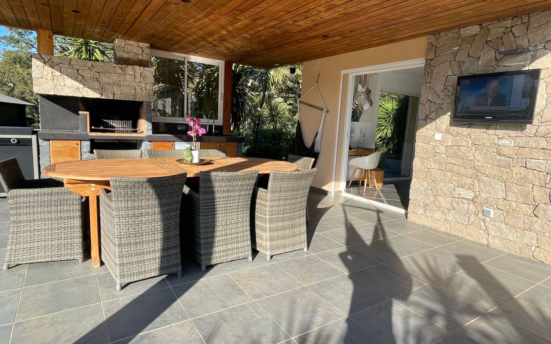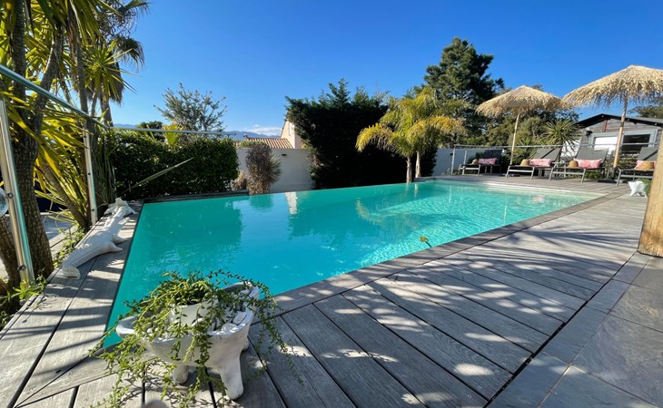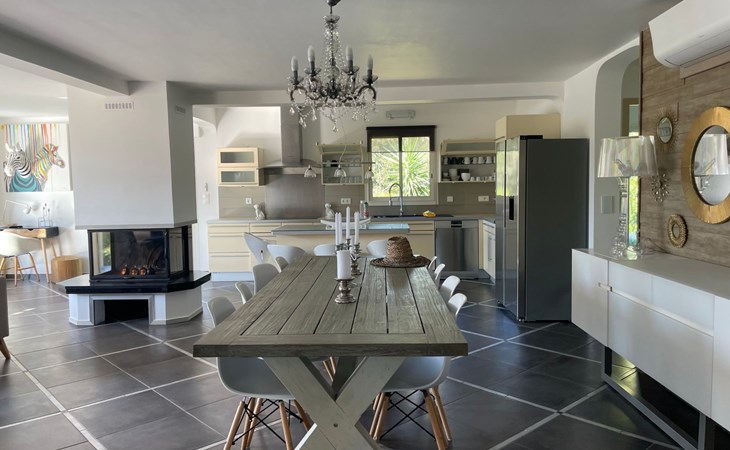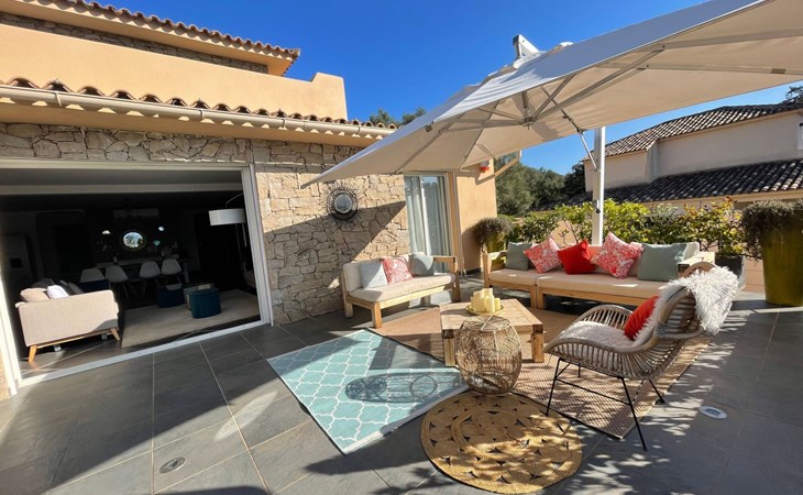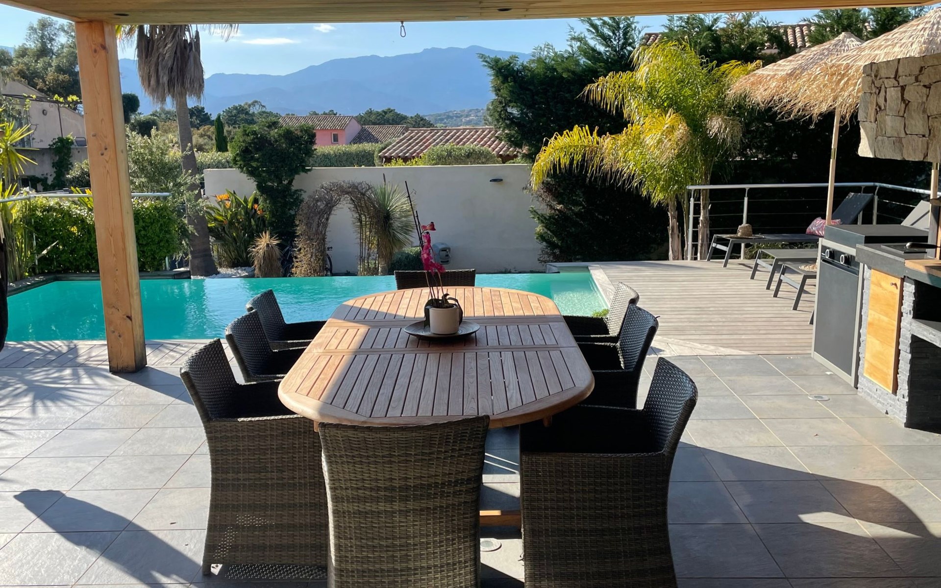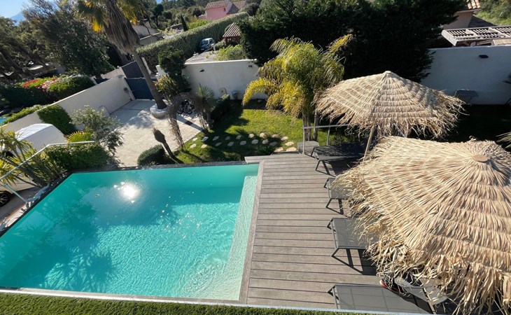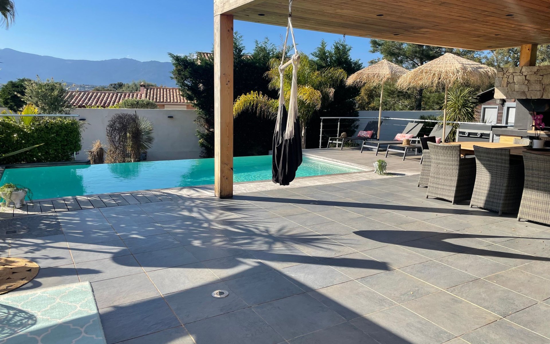 Located on the Palombaggia road, ideally situated at the crossroads of the region's most beautiful beaches: Santa Giulia, Palombaggia, Asciagiu, etc. Porto Vecchio town centre is less than 5 minutes away by car, as is the port.The villa is set in a calm, bucolic environment, surrounded by cork oak trees and scrubland. The villa is entirely landscaped with rare tropical species such as coconuts, palm trees and strelizias.Air-conditioned 4-bedroom villa with infinity pool and pool house, ideally located at the crossroads of the beaches. Gated parking and free wifi.Fully equipped kitchen with dishwasher, microwave, fridge with freezer compartment, induction hob, etc... and fully equipped outdoor kitchen with TV, BBQ, induction hob, sink, etc... Free high-speed Wi-Fi. Enclosed parking with digicode gate.Private grounds and terrace fully equipped with furniture: deckchairs, tables, chairs, outdoor lounge and pergola, as well as a fully equipped pool house with TV and outdoor kitchen.Ideally located close to beaches and all amenities: supermarkets, town centre, airport, port of embarkation, etc...Restaurants, pizzeria, Michelin-starred restaurant, bar, diving, yacht club, motorboat hire, mini-market, ... all within easy reach. 45687355