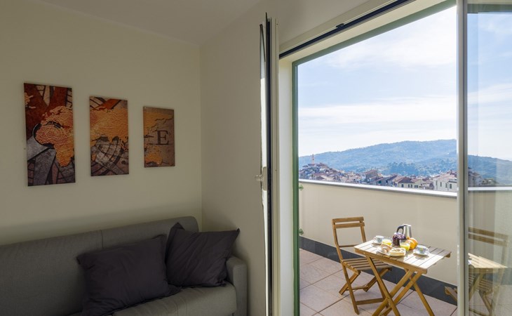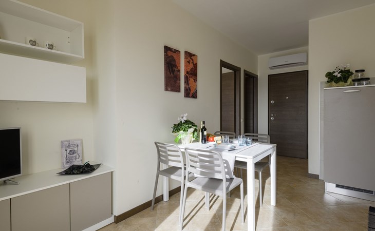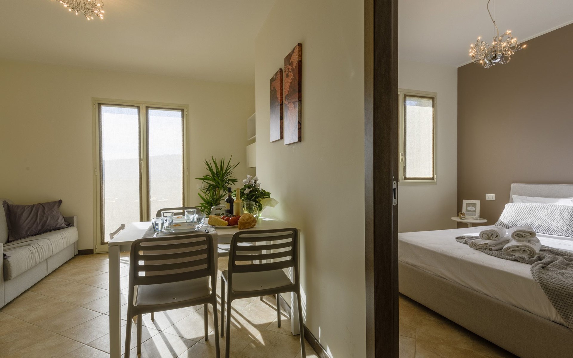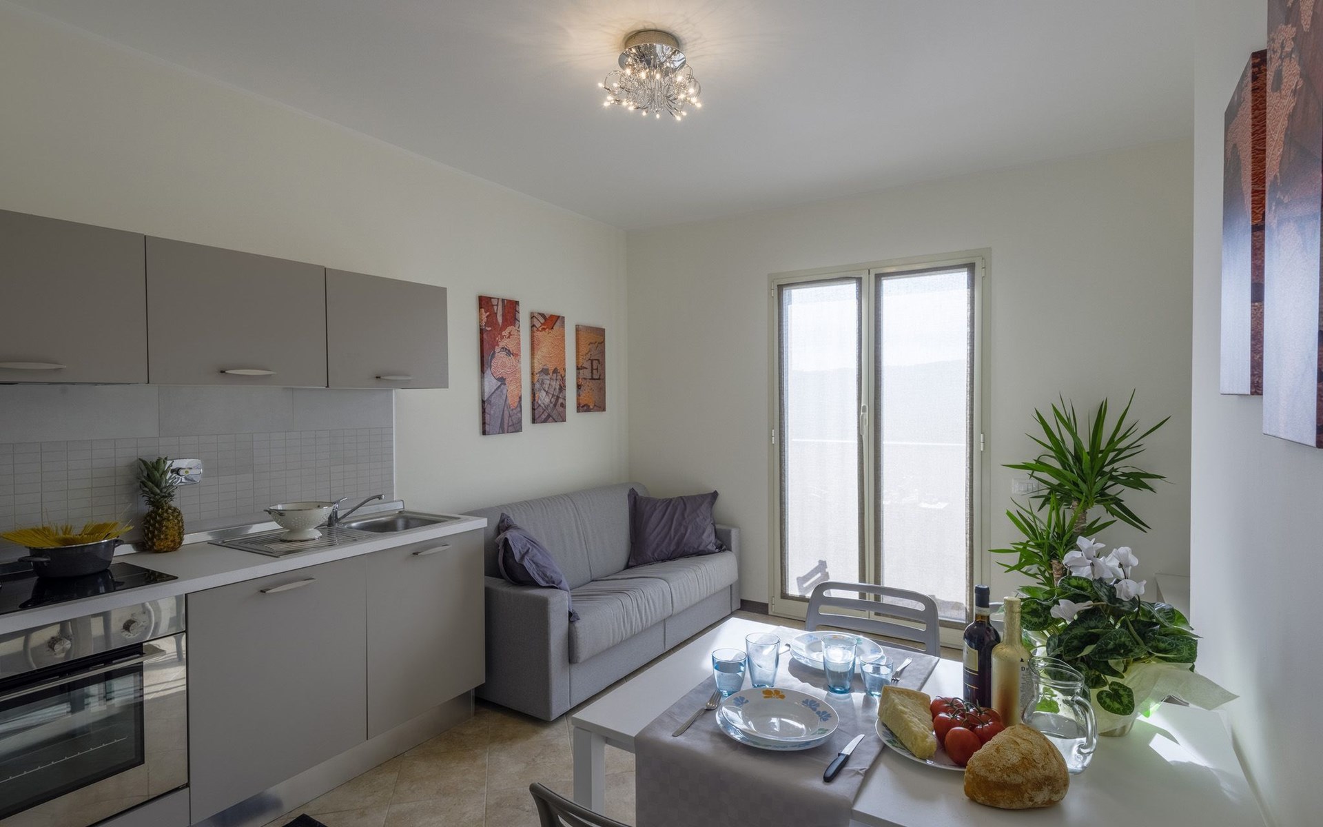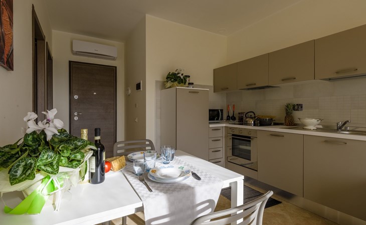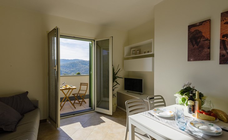 For your next unforgettable relaxing stay, choose Gloria del Mare and discover the intensity of a territory which, characterized by an always mild climate, suddenly reaches the sea from the hills and mountains, just a few minutes away. The beautiful 55 sqm 2-room apartment in villetta located on the first floor and furnished in a modern style enjoys a spectacular open view of the medieval village and a side sea view. Equipped with a living room with table, sofa bed, chest of drawers and flat screen TV, it is completed with a kitchen with oven, induction hobs, dishwasher, fridge and freezer, coffee maker, microwave. The tones of dove grey, white and walnut blend harmoniously in the first room and continue with equal effectiveness in the welcoming double bedroom; the bathroom is equipped with suspended sanitary ware. Hot/cold air conditioning, private parking space and unlimited WiFi are available. Reception, assistance, cleaning, bathroom and bed linen are included.The sea-view swimming pool measures approximately 15 meters and provides for the presence of umbrellas and sunbeds in the solarium area, in addition to a lifeguard. In the immediate vicinity, the 2-room apartment in villetta fits into a timeless context, embellished by an environment full of centuries-old olive trees and gardens; a few minutes away is San Lorenzo al Mare, a charming seaside resort which evokes the nearby French Riviera in its Provençal atmosphere and can be reached both from the Imperia Ovest motorway exit and by train. Typical restaurants, farmhouses, pharmacies, supermarkets, banks, craft shops, ice cream parlors and delicatessens can be reached in a few minutes.Amazing for a holiday dedicated to yourself and relaxation.Please inform about your arrival time.It is necessary to show a copy of your passport/identity card at check-inThe swimming pool is open from June 17th to September 10th from 10am to 1.30pm and from 3.30pm to 7.30pm. Until June 30th it will be open only in the afternoon during the week days.Being able to divide yourself between life in the pool and the relaxation of a day at the sea, between golden beaches and characteristic villages with strong Provençal influences, offers unparalleled benefits. In addition, for those who love sports, kite and windsurfing can be practiced nearby, with a short excursion on foot it is possible to exceed 1,000 meters of altitude and along the coast there is a suggestive cycle path, carved out of the old railway line. Olive trees as far as the eye can see cover the surrounding hills, medieval hamlets in the immediate surroundings such as Lingueglietta, Triora, Dolcedo and the ancient part of Imperia itself, Porto Maurizio, allow for fantastic discoveries within a new and surprising Liguria; Sanremo, the City of the Festival, the Casino and the Flowers, is only 30 minutes away. The international airports of Genoa and Nice are less than an hour and a half away. IT008022B4J4FVHICV