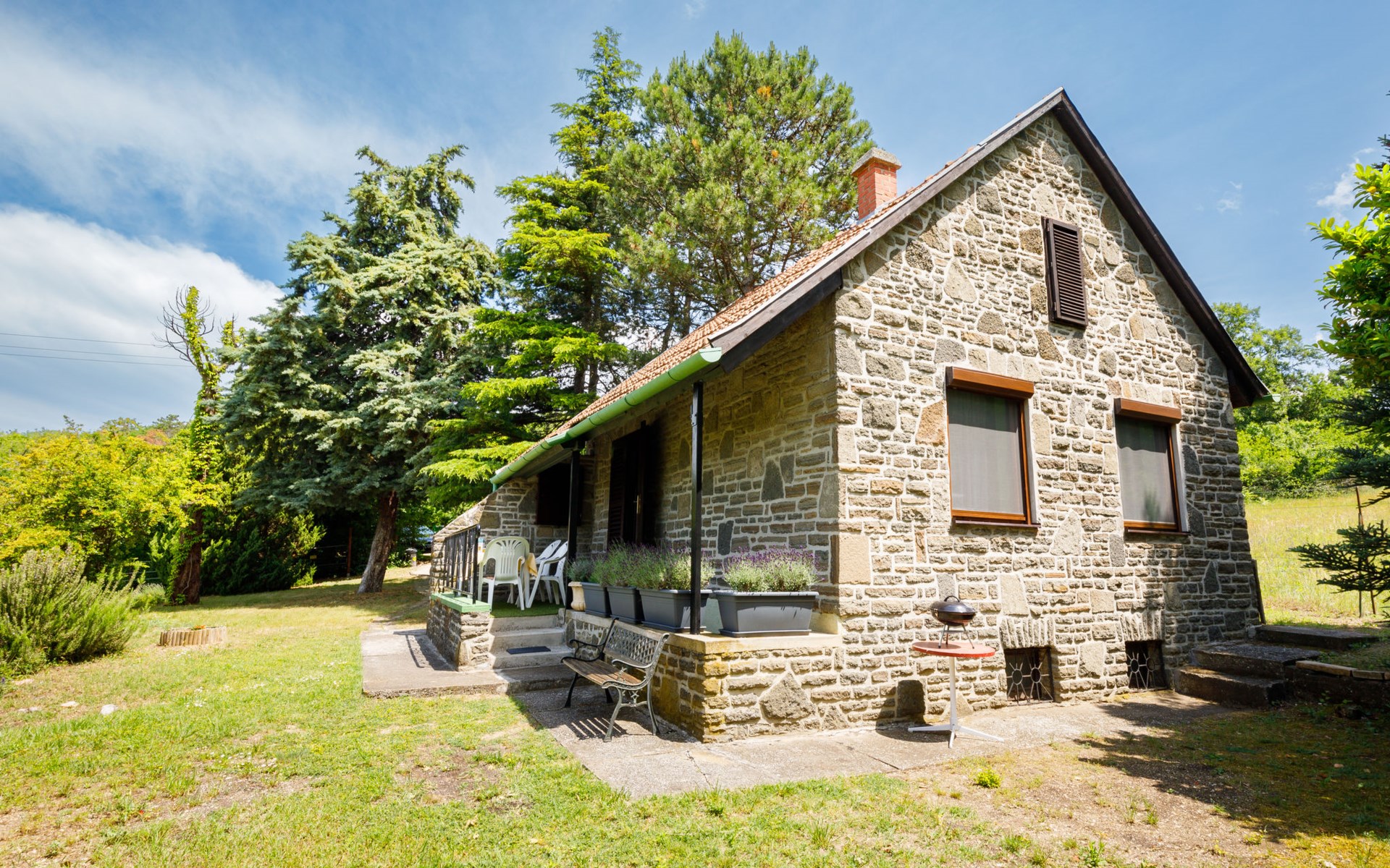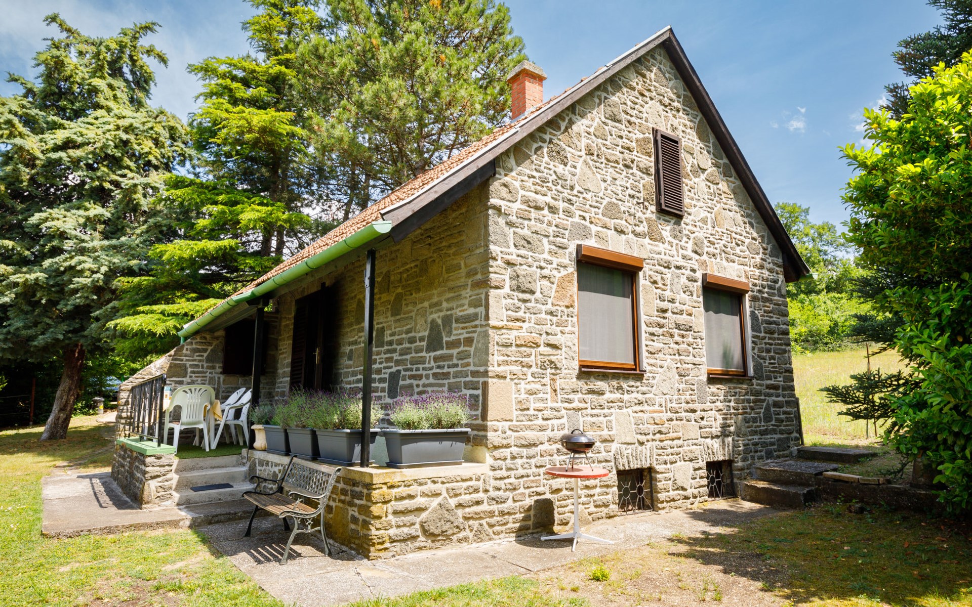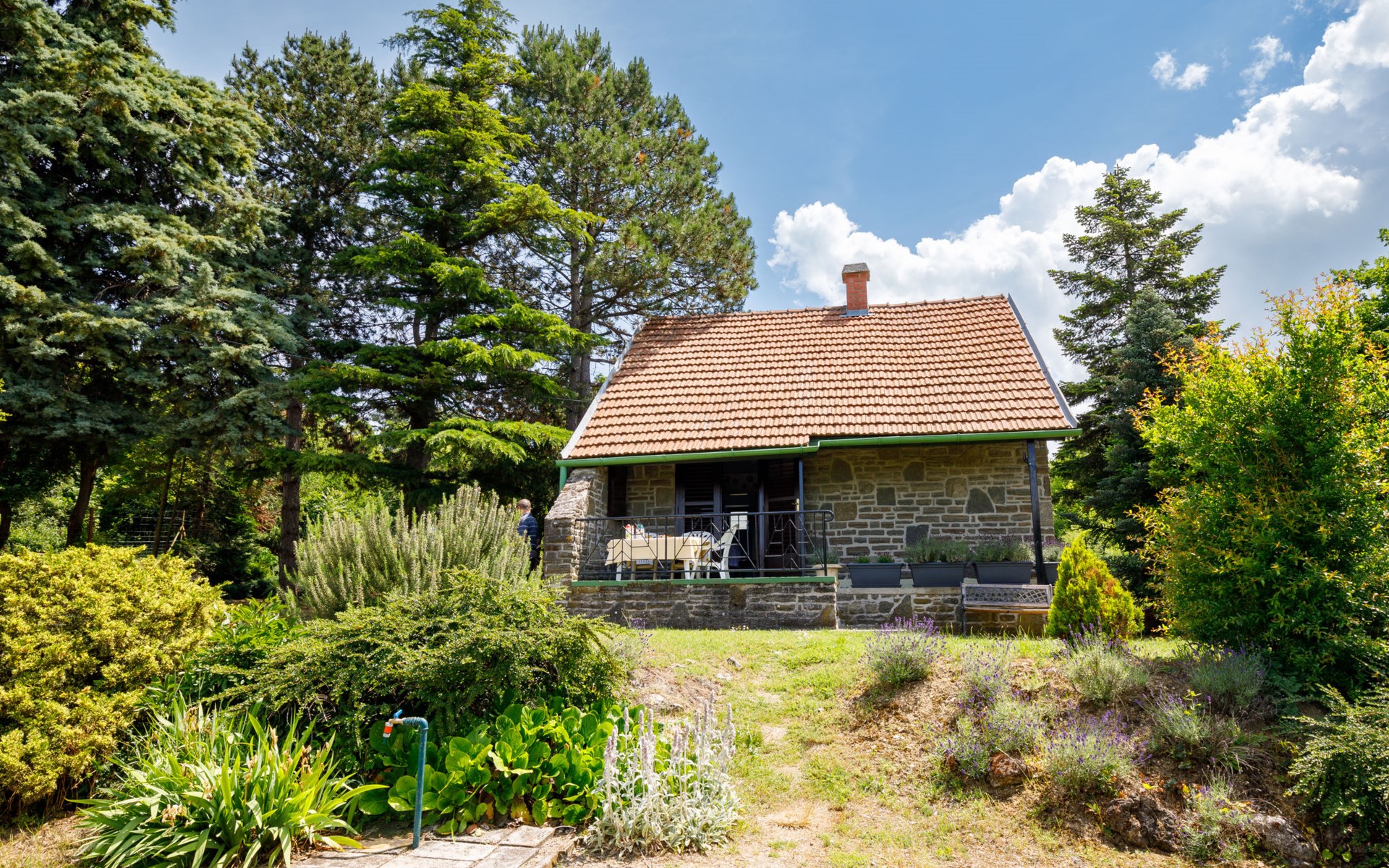 Tihany 8 km van Balatonfüred: Cottage "Romantica". Rustige ligging, 450 m van het meer, 800 m van het strand, aan een weg, te midden van groen. Voor alleengebruik: tuin planten en bomen, ligweide. In het huis: Internet (WiFi). Winkel 400 m, restaurant 300 m, café 600 m, fietsverhuur 1 km, bushalte "Aszófő, vasútállomás bejárati út" 7 km, treinstation "Aszófő" 7 km, veerboot 2 km, overdekt zwembad 8 km, thermaalbad "Hévíz" 66 km. Jachthaven 800 m, golfterrein (18 holes) 7 km, tennis 7 km, tennishal 7 km, manege 500 m, sportcentrum 7 km, fietspad 100 m, kinderspeelplaats 2 km. Attracties in de buurt: Balaton Golf Club 10 km, Veszprém Zoo 27 km, Balatonbob Theme Park 28 km, Annagora Aquapark 7 km, Keszthely 61 km, Tapolca Lake Cave Visitor Centre 41 km. De sleuteloverdracht vindt plaats bij het agentschap Interhome in Balatonfüred, 9 km.