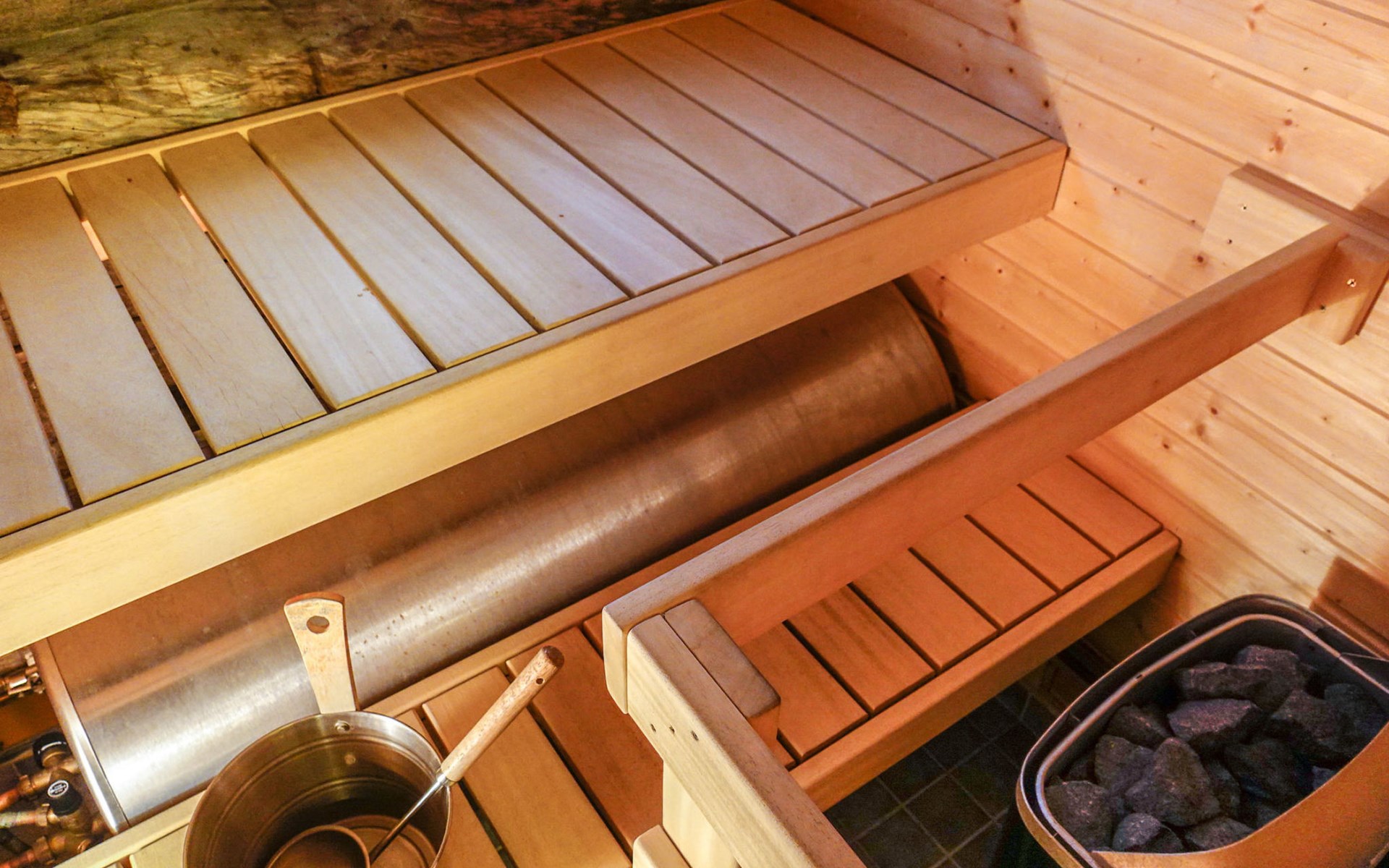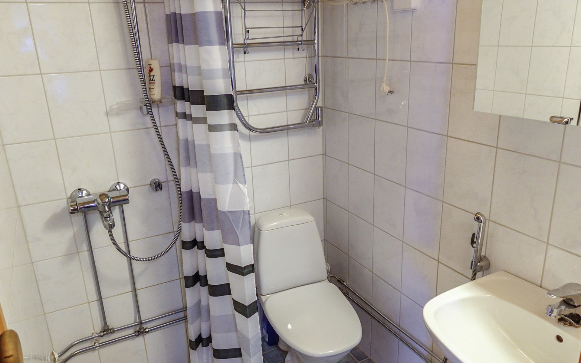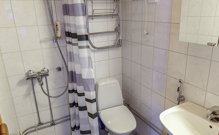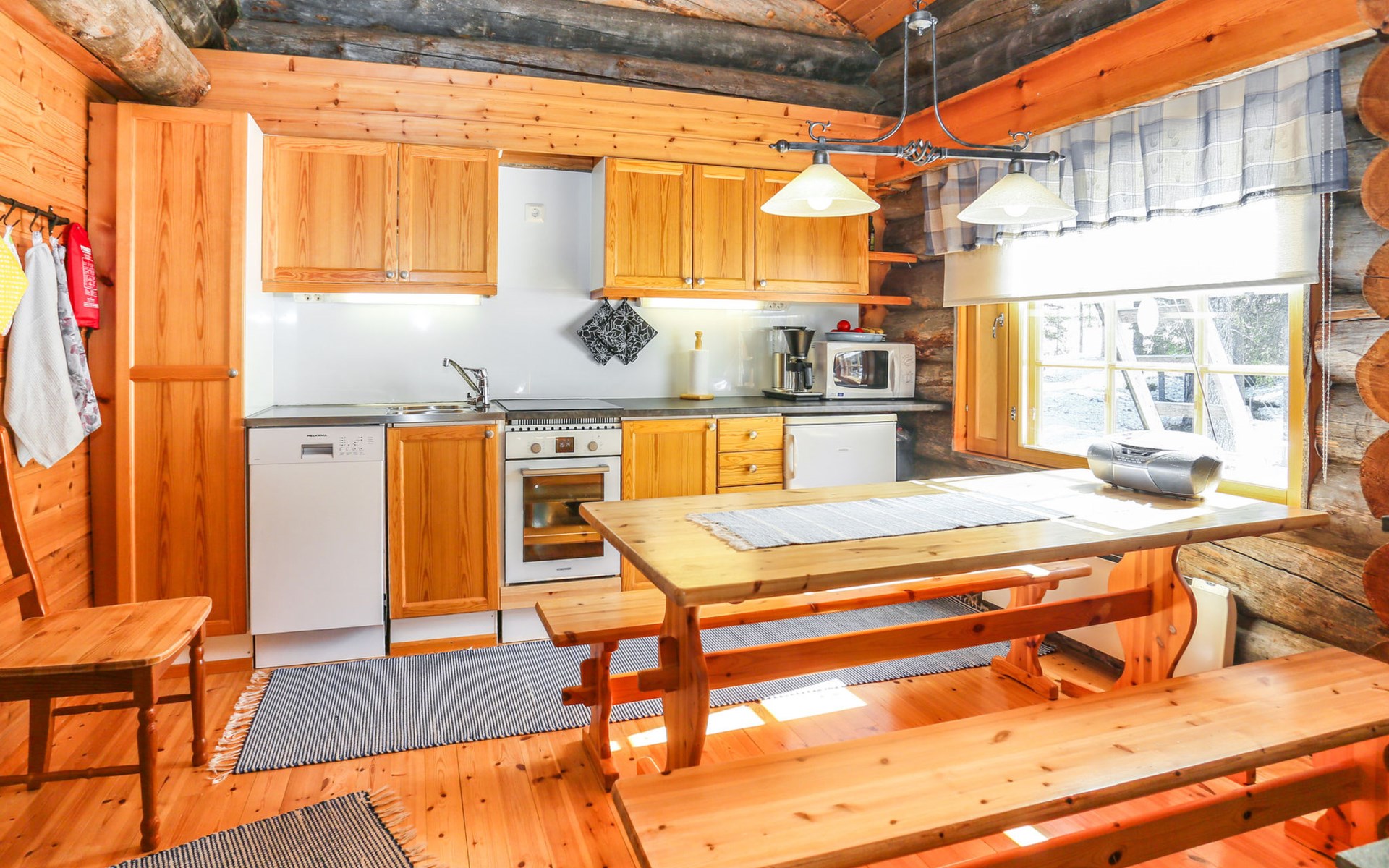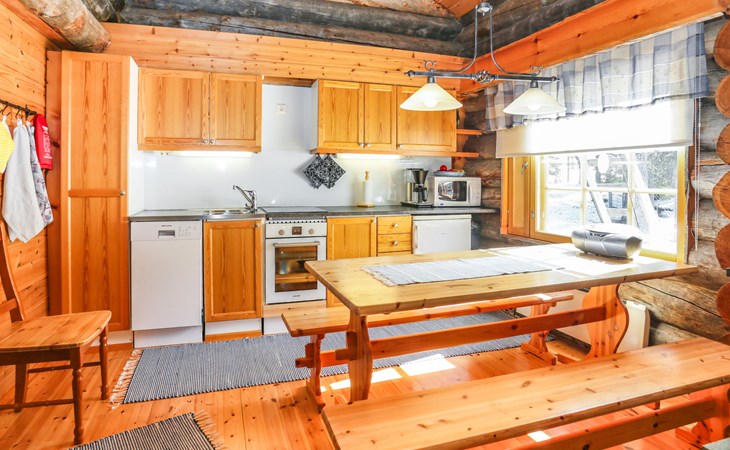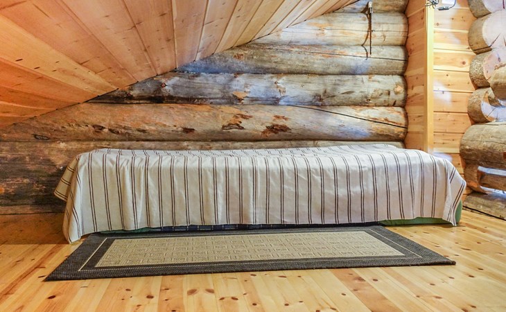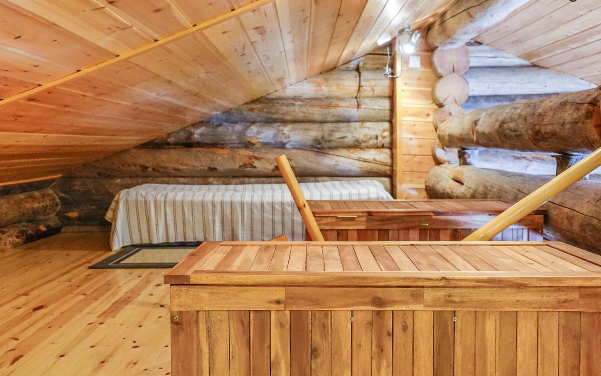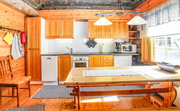 Living room/kitchen, double bed in the bedroom, four mattresses on the loft, steep stairs to the loft, sauna and washroom/WC. The kitchen also has a kettle and a toaster. Television IPTV (20 HD channels).
