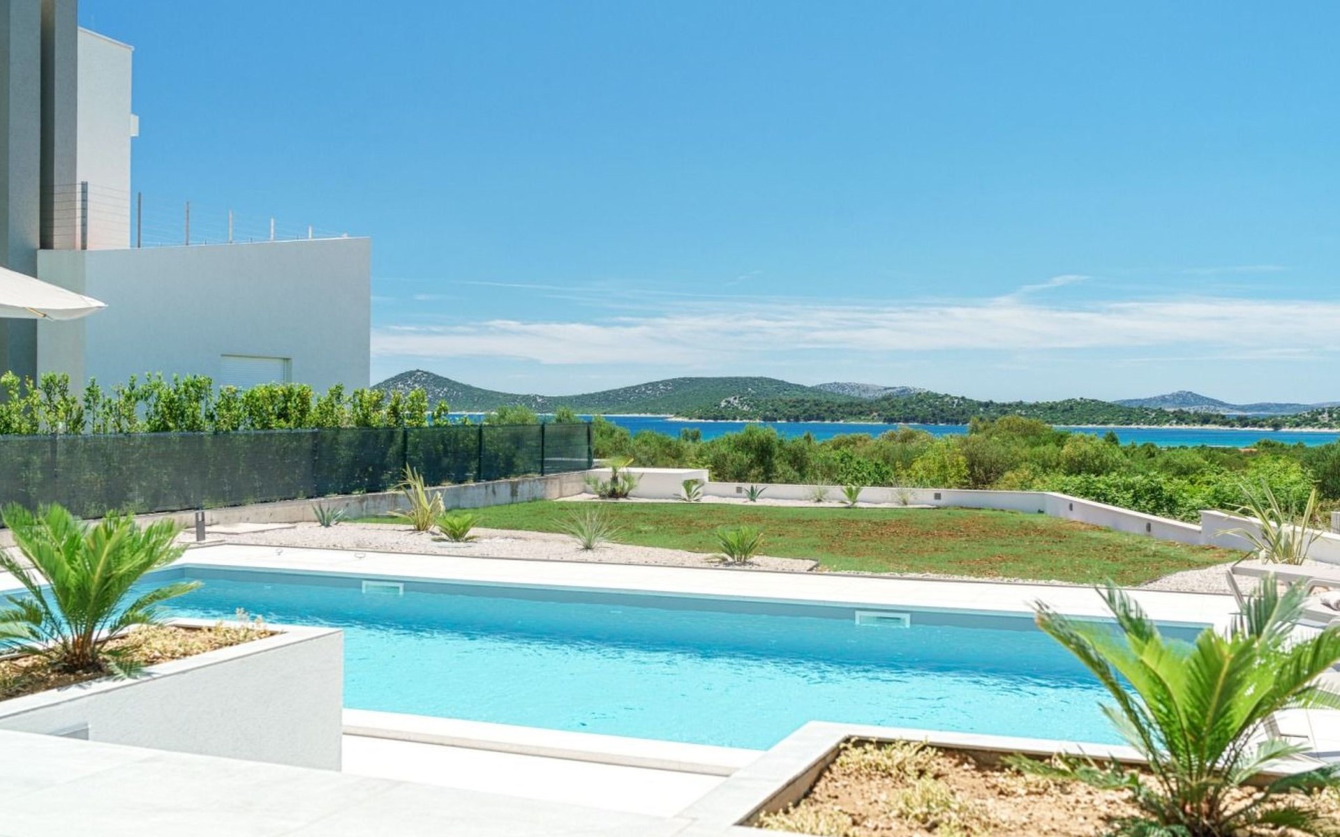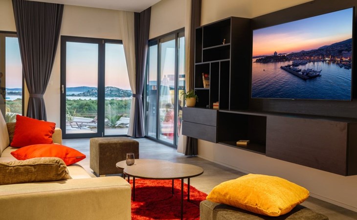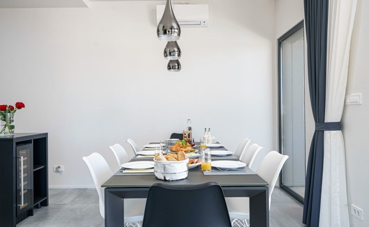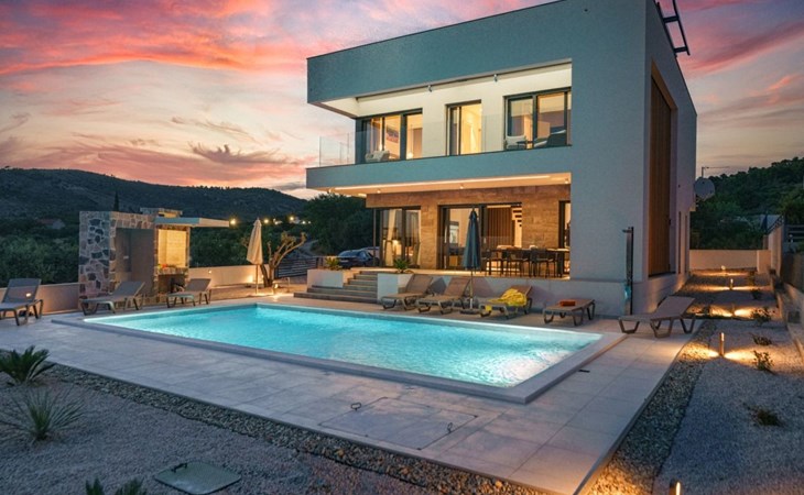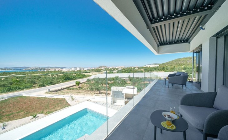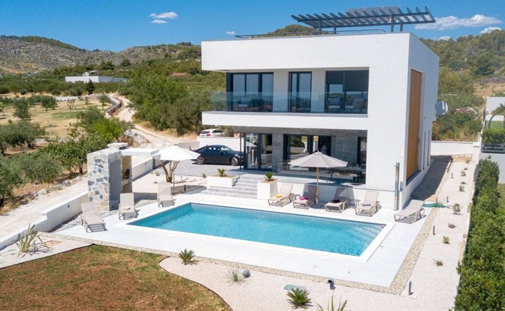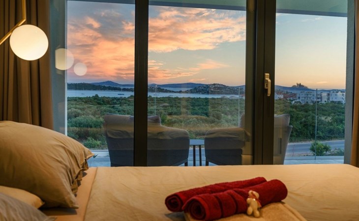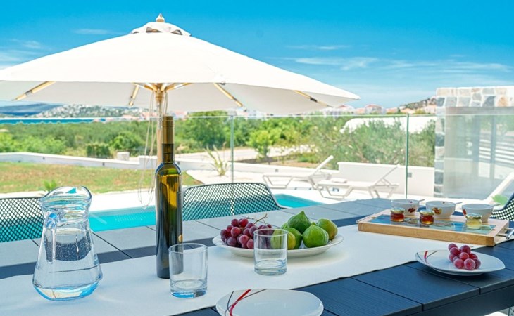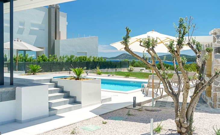 Discover the perfect getaway for your next vacation at our spacious and welcoming holiday house in Vodice, Dalmatien. Nestled between the charming tourist spots of Tribunj and Vodice and surrounded by the serene Mediterranean landscape, our villa, Sea of Dreams, promises a blend of comfort, privacy, and proximity to various attractions. With its stunning sea view, you're invited to experience the best that Dalmatian coast has to offer.Inside, the villa is equipped to ensure that every moment of your stay is comfortable and convenient. With air conditioning available throughout the premises, your comfort is guaranteed no matter the weather. The villa features four well-appointed bedrooms, each with its own double bed, en-suite bathroom, TV, and air conditioning, ensuring that up to 8 guests can enjoy their stay in utmost comfort. For those traveling with infants, a baby cot is readily available. Moving through the house, you'll appreciate the practical amenities like a washing machine and clothes dryer, exclusively for your use, simplifying the chores so you can focus on relaxation. The kitchen is fully equipped with a dishwasher and coffee machine, making meal preparation and morning routines a breeze.The outdoor area of this holiday house is designed to offer you a peaceful and private oasis. The highlight is undoubtedly the expansive 55m² pool, perfect for cooling off on warm summer days and nights. Surrounding the pool, the well-maintained garden, reserved solely for your use, provides a lush backdrop and additional space for relaxation. The villa boasts terraces on both floors and an additional one on the roof, all furnished with comfortable lounge furniture. These terraces are ideal for enjoying the fresh air, soaking in the panoramic sea and island views, or simply spending quality time with loved ones.This attractive holiday house is strategically located, offering not just stunning views but also accessibility to a range of activities and necessities. The beach and the sea are just a 750-meter stroll away, perfect for days spent by the water. For your daily needs, a grocery store can be found within a kilometer. The area is also a treasure trove of cultural and recreational opportunities, ensuring that there’s always something to explore or enjoy.In summary, the Sea of Dreams villa is a sanctuary where convenience meets tranquility. With its prime location, comprehensive amenities, and dedicated spaces for relaxation and enjoyment, it stands as an ideal choice for families or groups seeking a memorable Dalmatian coast experience. Whether you're lounging by the private pool, enjoying the serenity of the garden, or exploring the vibrant surroundings, this holiday house offers the perfect setting for a getaway filled with leisure and adventure.