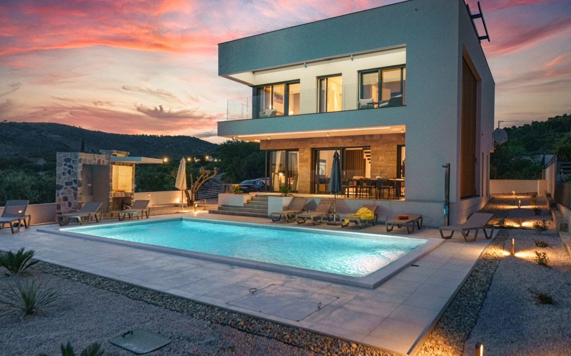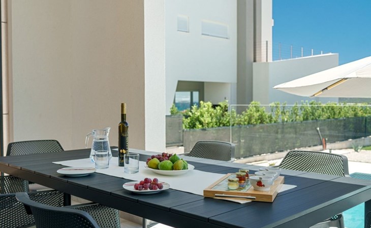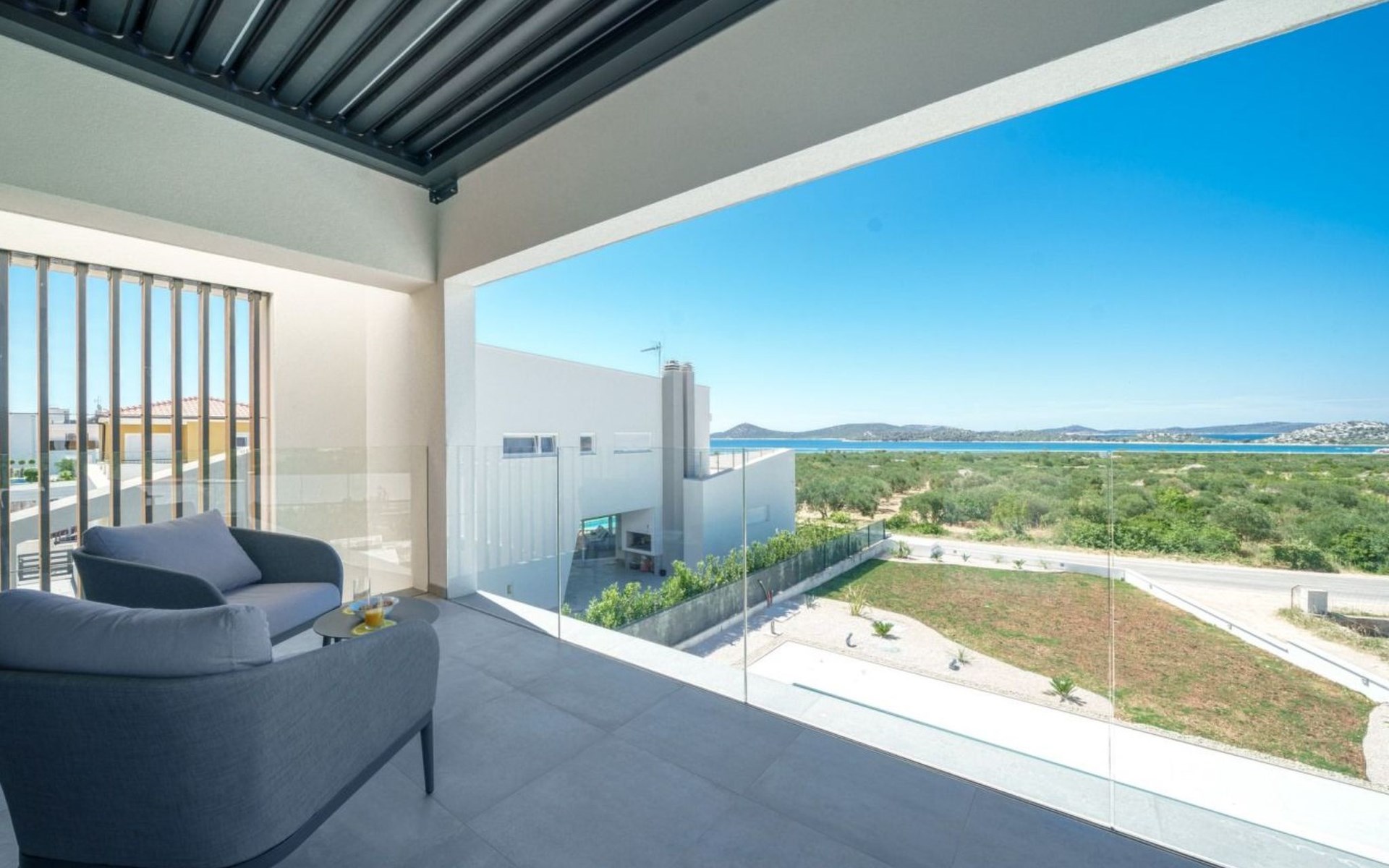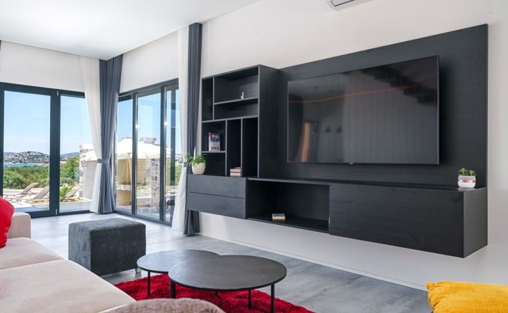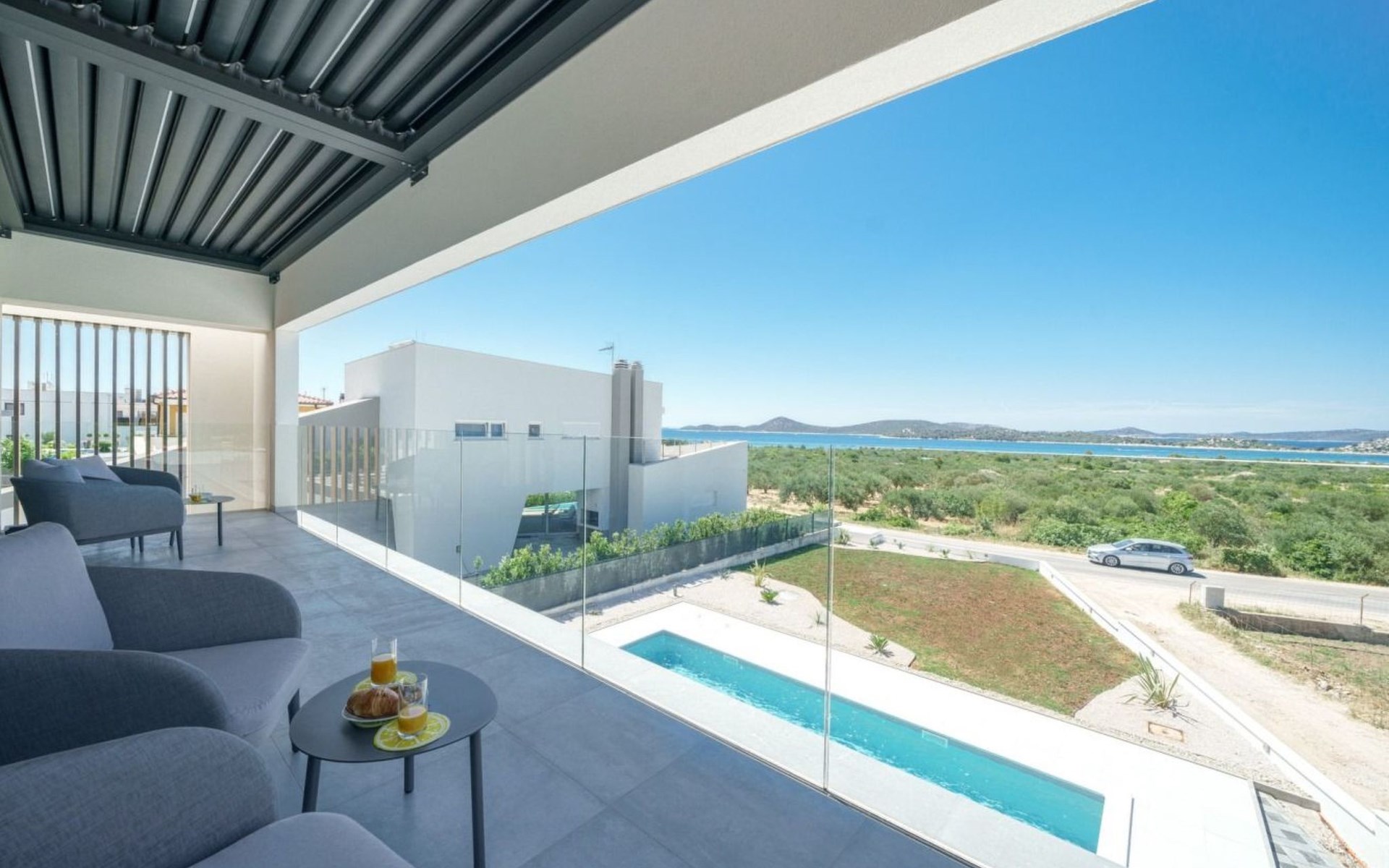 Discover the perfect getaway for your next vacation at our spacious and welcoming holiday house in Vodice, Dalmatien. Nestled between the charming tourist spots of Tribunj and Vodice and surrounded by the serene Mediterranean landscape, our villa, Sea of Dreams, promises a blend of comfort, privacy, and proximity to various attractions. With its stunning sea view, you're invited to experience the best that Dalmatian coast has to offer.Inside, the villa is equipped to ensure that every moment of your stay is comfortable and convenient. With air conditioning available throughout the premises, your comfort is guaranteed no matter the weather. The villa features four well-appointed bedrooms, each with its own double bed, en-suite bathroom, TV, and air conditioning, ensuring that up to 8 guests can enjoy their stay in utmost comfort. For those traveling with infants, a baby cot is readily available. Moving through the house, you'll appreciate the practical amenities like a washing machine and clothes dryer, exclusively for your use, simplifying the chores so you can focus on relaxation. The kitchen is fully equipped with a dishwasher and coffee machine, making meal preparation and morning routines a breeze.The outdoor area of this holiday house is designed to offer you a peaceful and private oasis. The highlight is undoubtedly the expansive 55m² pool, perfect for cooling off on warm summer days and nights. Surrounding the pool, the well-maintained garden, reserved solely for your use, provides a lush backdrop and additional space for relaxation. The villa boasts terraces on both floors and an additional one on the roof, all furnished with comfortable lounge furniture. These terraces are ideal for enjoying the fresh air, soaking in the panoramic sea and island views, or simply spending quality time with loved ones.This attractive holiday house is strategically located, offering not just stunning views but also accessibility to a range of activities and necessities. The beach and the sea are just a 750-meter stroll away, perfect for days spent by the water. For your daily needs, a grocery store can be found within a kilometer. The area is also a treasure trove of cultural and recreational opportunities, ensuring that there’s always something to explore or enjoy.In summary, the Sea of Dreams villa is a sanctuary where convenience meets tranquility. With its prime location, comprehensive amenities, and dedicated spaces for relaxation and enjoyment, it stands as an ideal choice for families or groups seeking a memorable Dalmatian coast experience. Whether you're lounging by the private pool, enjoying the serenity of the garden, or exploring the vibrant surroundings, this holiday house offers the perfect setting for a getaway filled with leisure and adventure.