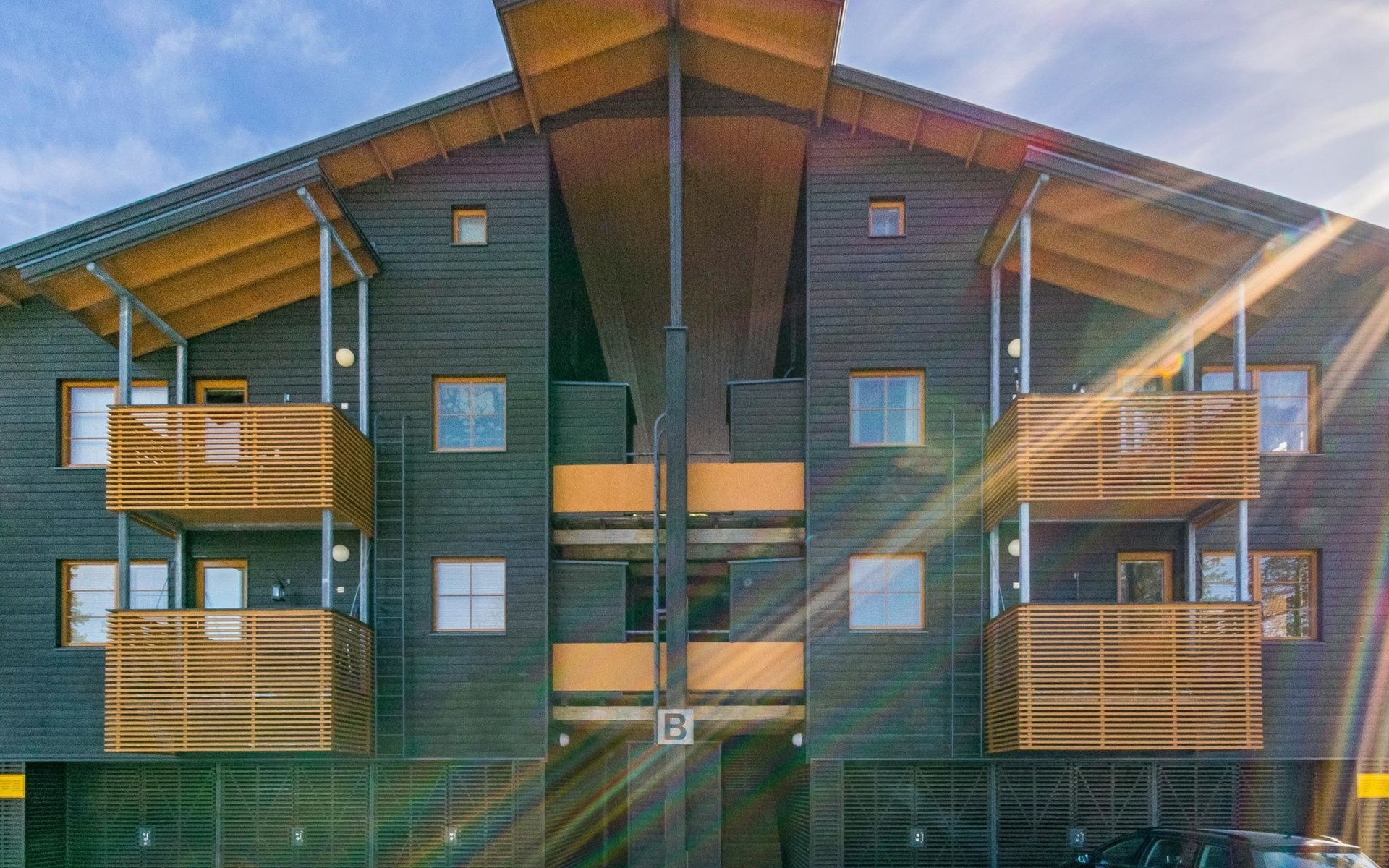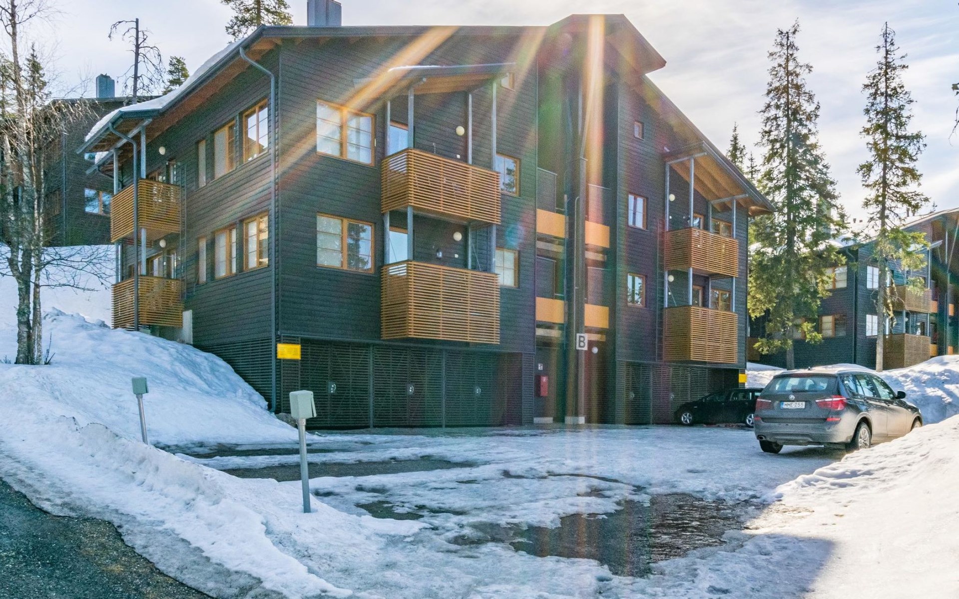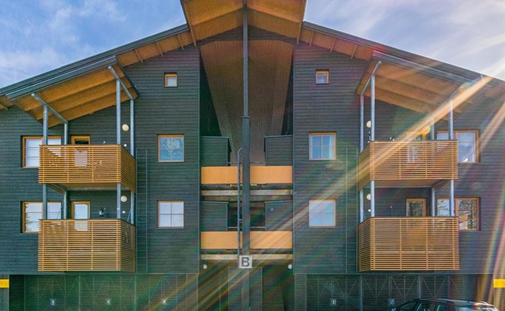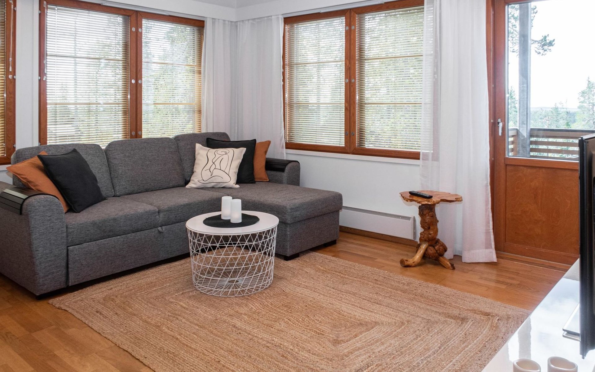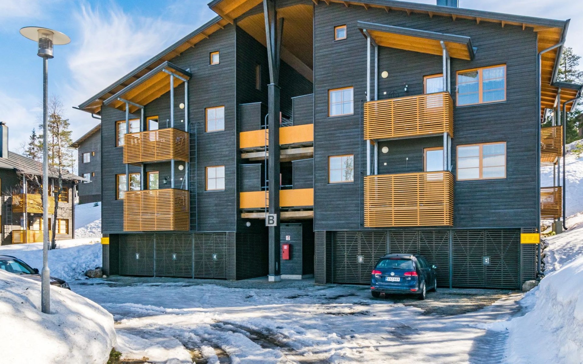 29 km north of Kuusamo, Ruka village 300 m. Holiday apartment built in 2004, bedroom downtairs with a double bed, bedroom upstairs with 2 beds, combined kitchen-livingroom with a convertible sofa bed, electric sauna. Total area of the apartment is 57 m² of which 47 m² downstairs and 10 m² upstairs.