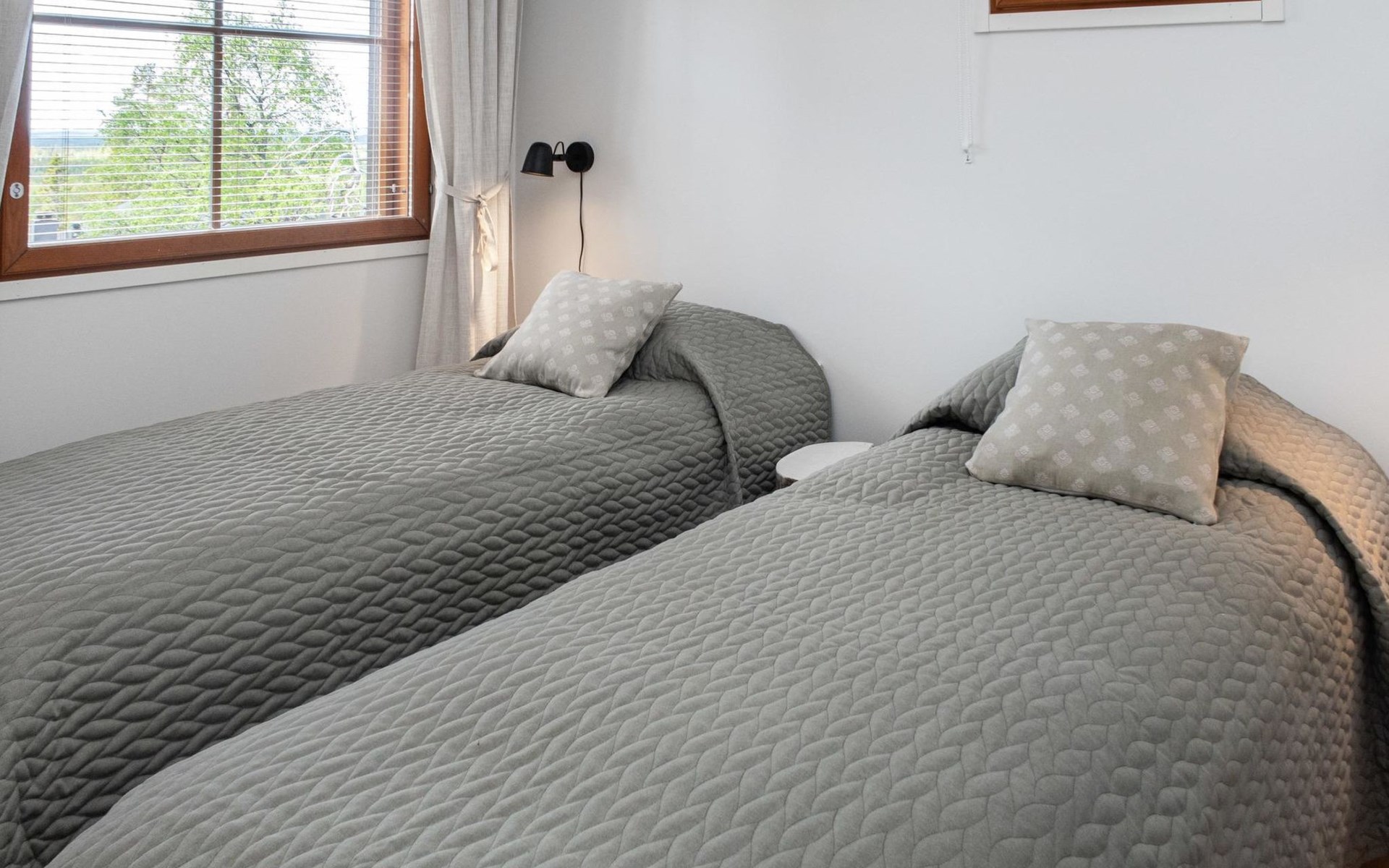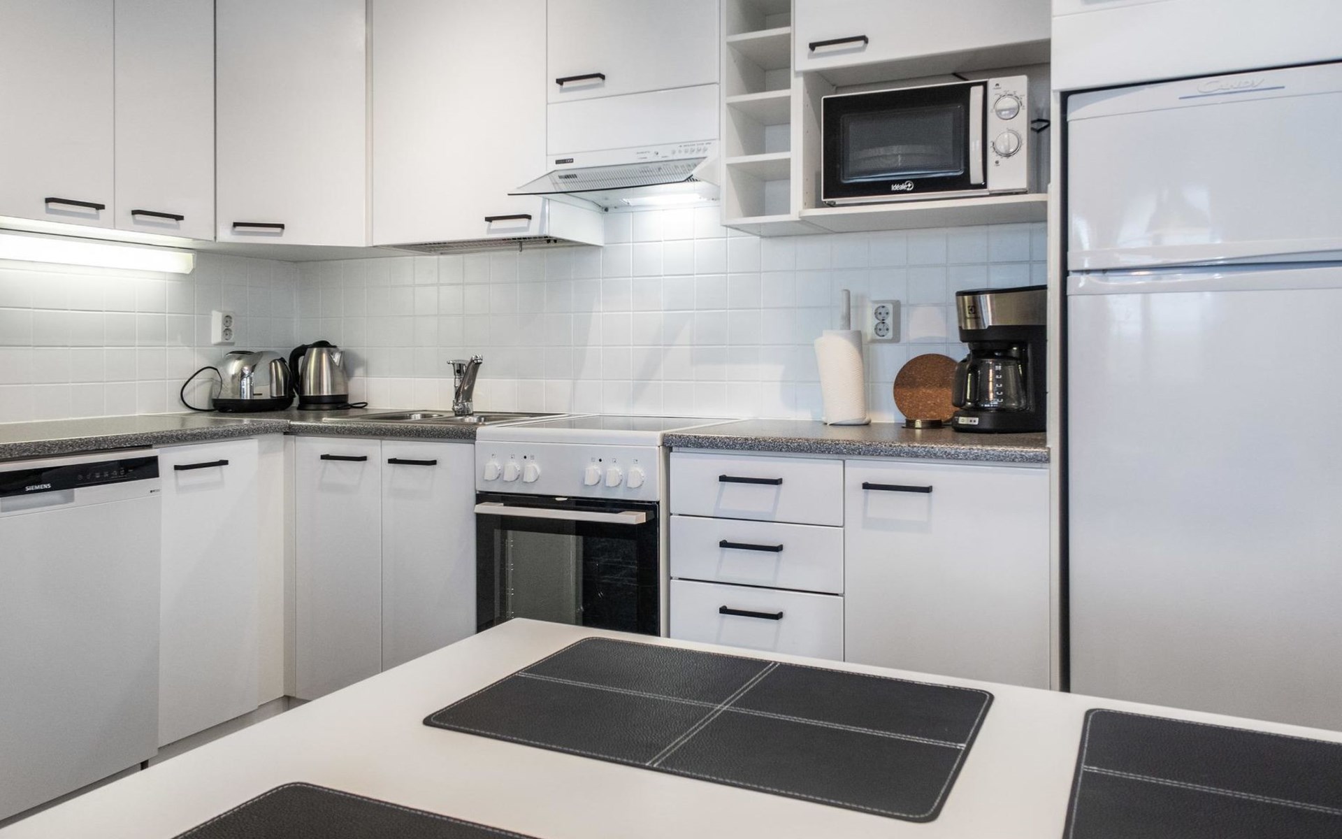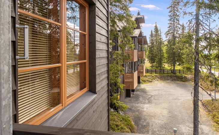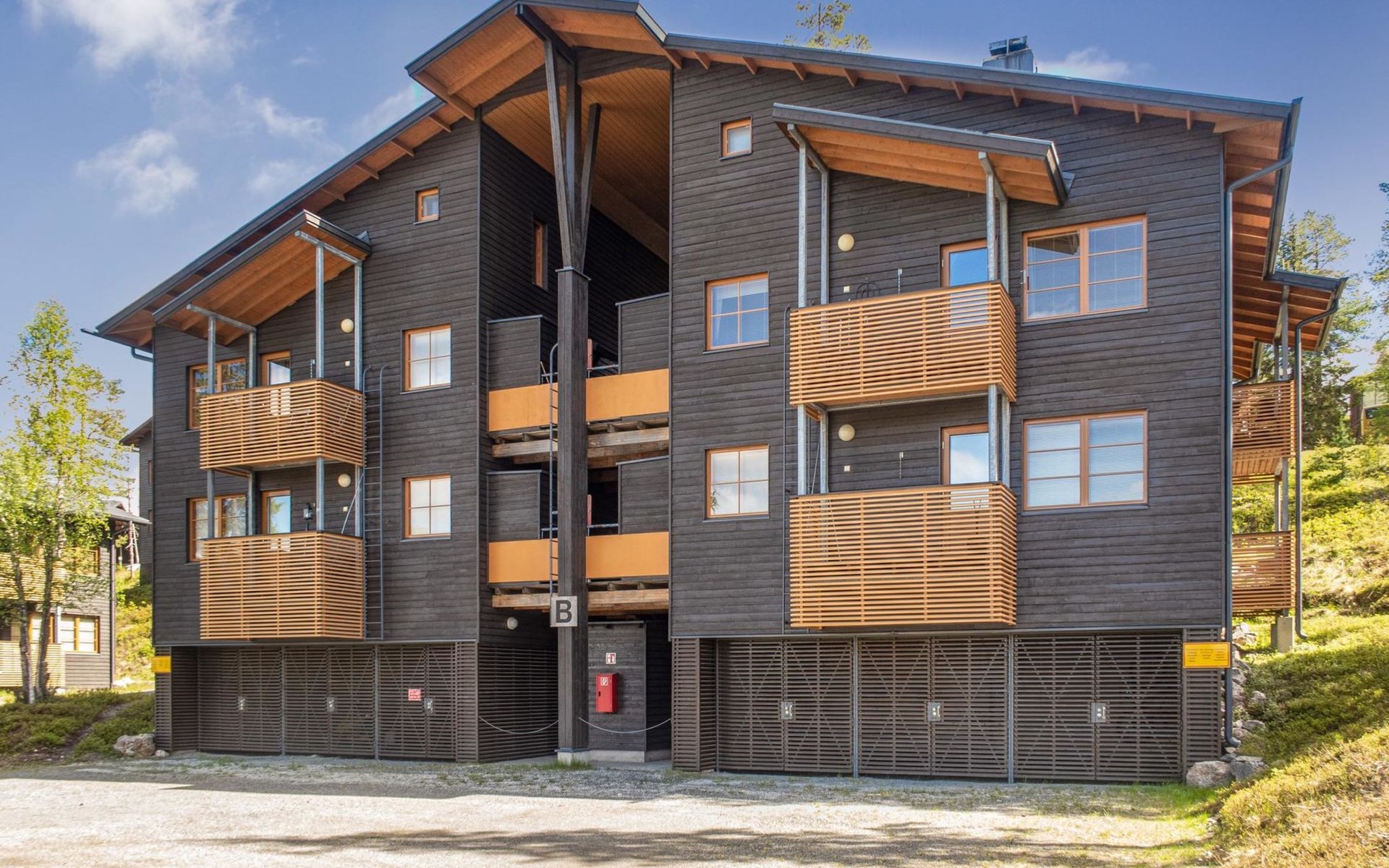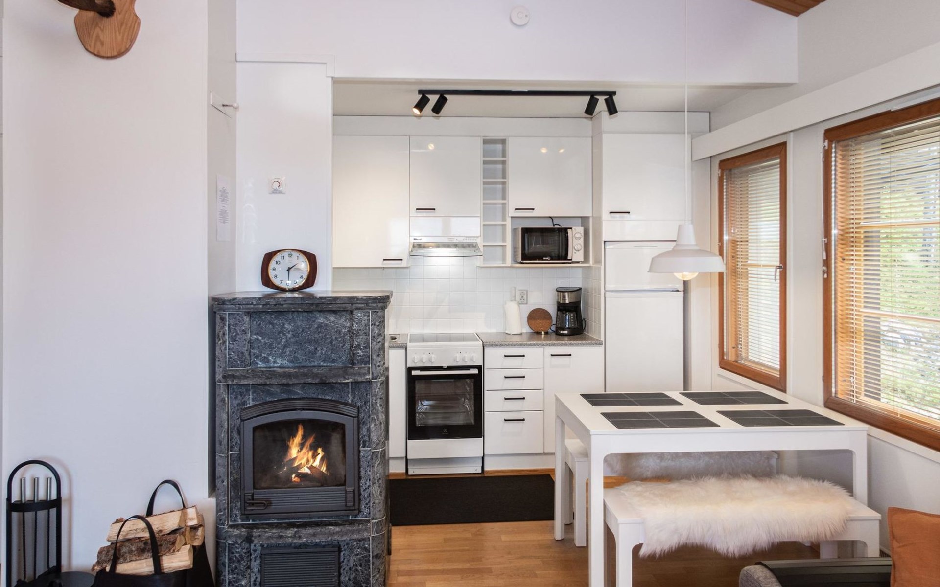 29 km north of Kuusamo, Ruka village 300 m. Holiday apartment built in 2004, bedroom downtairs with a double bed, bedroom upstairs with 2 beds, combined kitchen-livingroom with a convertible sofa bed, electric sauna. Total area of the apartment is 57 m² of which 47 m² downstairs and 10 m² upstairs.