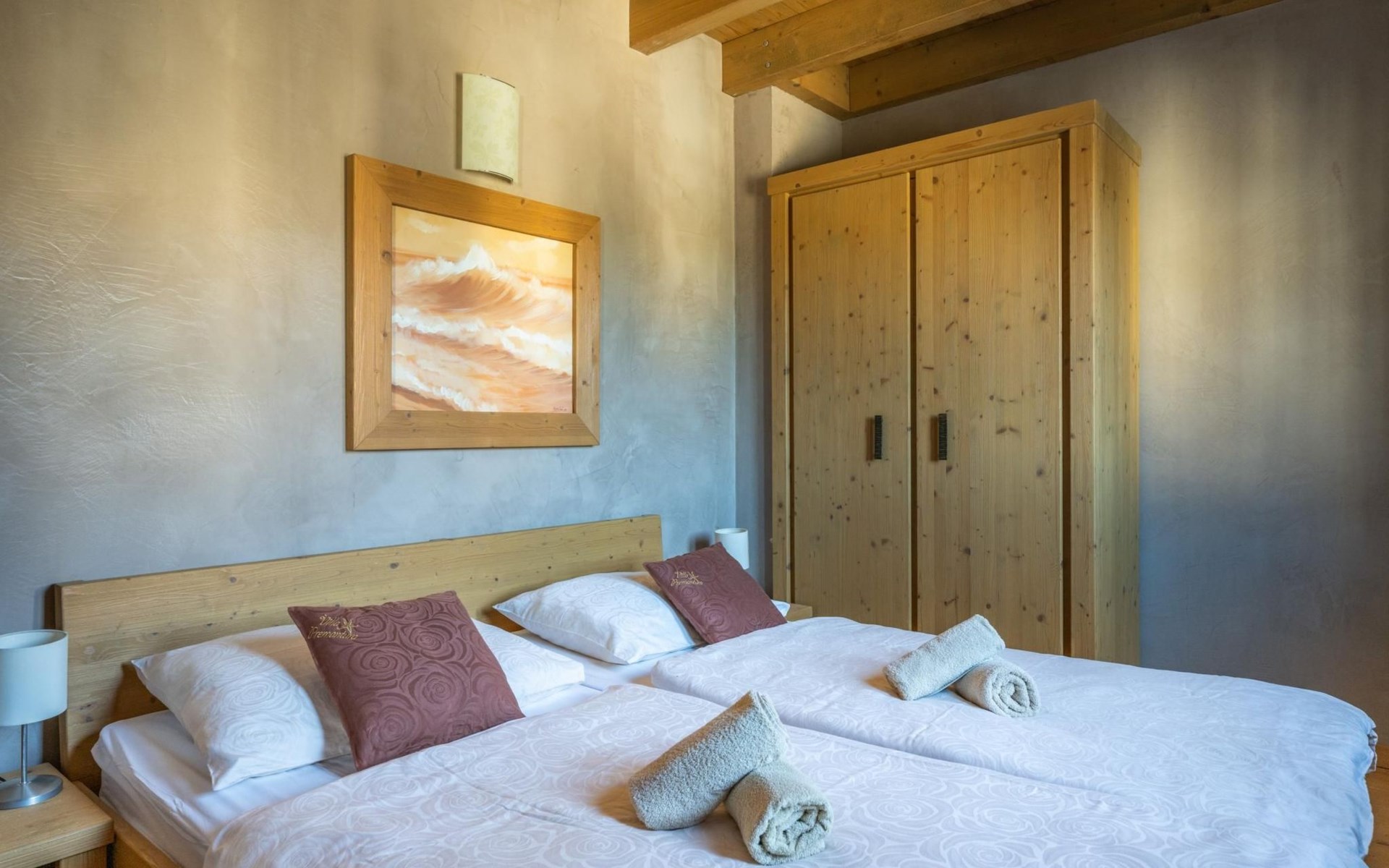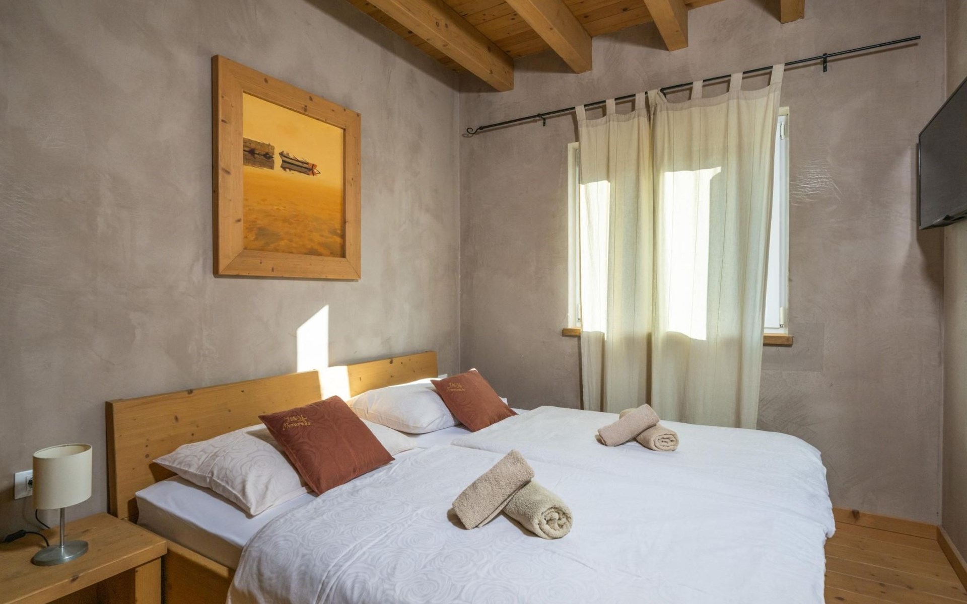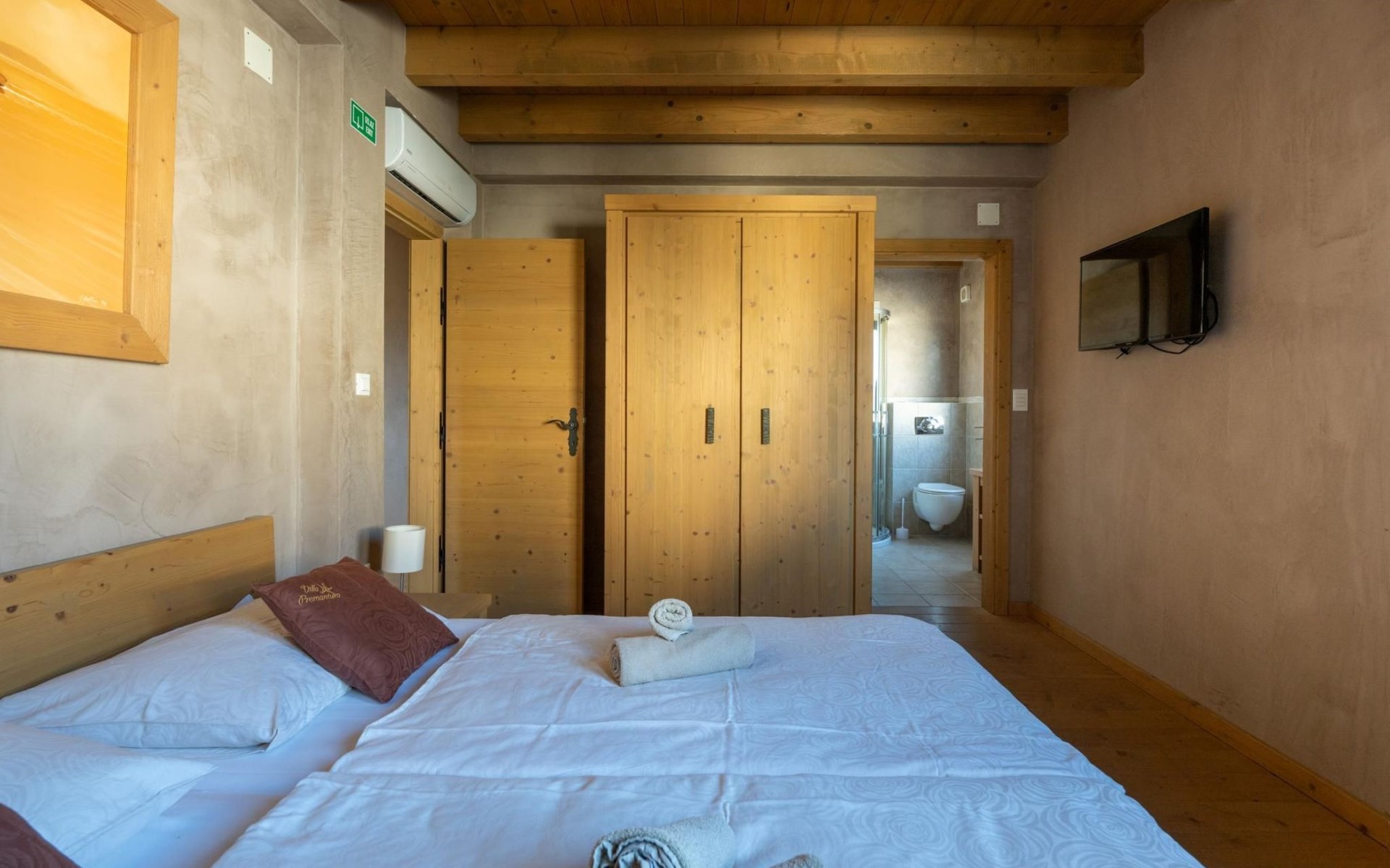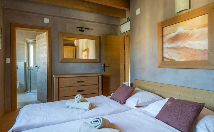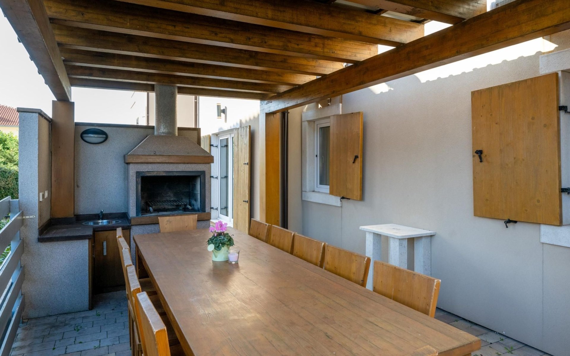 Maximaal 2 huisdieren/honden toegestaan. Villa Chiara is located in the charming village of Premantura, just 700 m from the sea. It can accommodate up to 12 guests and features 6 comfortable bedrooms.The villa is fully air-conditioned and includes modern amenities for a relaxing stay. You can unwind in the sauna, take a refreshing dip in the private pool, or enjoy meals outdoors in the covered dining area with a BBQ.The lively town of Pula is only 11 km away, with plenty of restaurants, shops, and cultural attractions.Villa Chiara can accommodate up to 12 guests and features 6 comfortable bedrooms. There are 4 bathrooms, 2 of which are en-suite, 2 separate toilets, and 1 shower next to the sauna.On the ground floor, you'll find a living room, a fully equipped kitchen, a sauna with a shower, and 2 separate toilets.The villa is split into two blocks, each with its own set of stairs leading to the upper floors. Both blocks have the same layout: the first floor features 1 bedroom with a balcony, 1 bedroom with a private bathroom, and 1 bathroom, while the second floor has 1 bedroom with a balcony.For guests traveling with pets, Villa Chiara is pet-friendly, allowing you to bring your furry friends along to enjoy the holiday. The property is fully fenced, providing both security and privacy.The villa is ideally situated, with the charming town of Medulin just 12 km away, the picturesque coastal village of Fažana 23 km, and the historic city of Rovinj 47 km. Pula Airport is also conveniently located only 18 km from the villa.