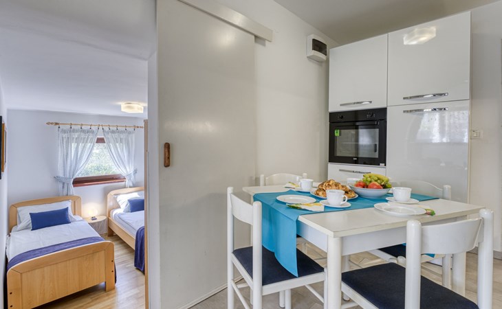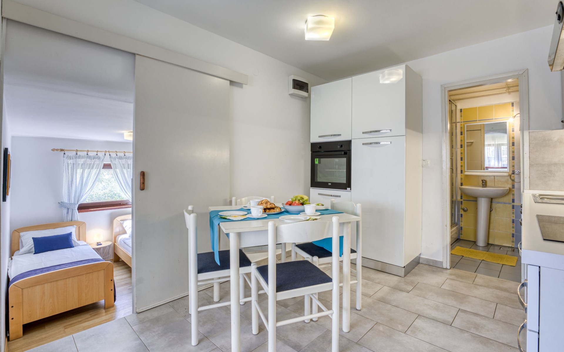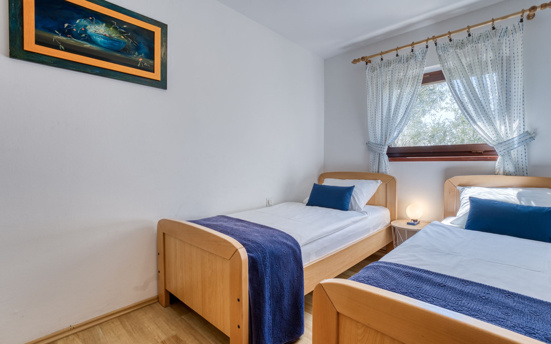 Huis met 3 woningen "Jurkovic". 2.5 km van het centrum van Njivice, 15 km van het centrum van Krk, 900 m van zee, 900 m van het strand. Voor medegebruik: terrein 600 m2 met gazon en bomen. Barbecue. In het huis: internetaansluiting. Parkeerplaats bij het huis op het terrein. Winkel 300 m, restaurant 2.5 km, bushalte 850 m, kiezelstrand 900 m. Vliegveld 11 km van het huis.