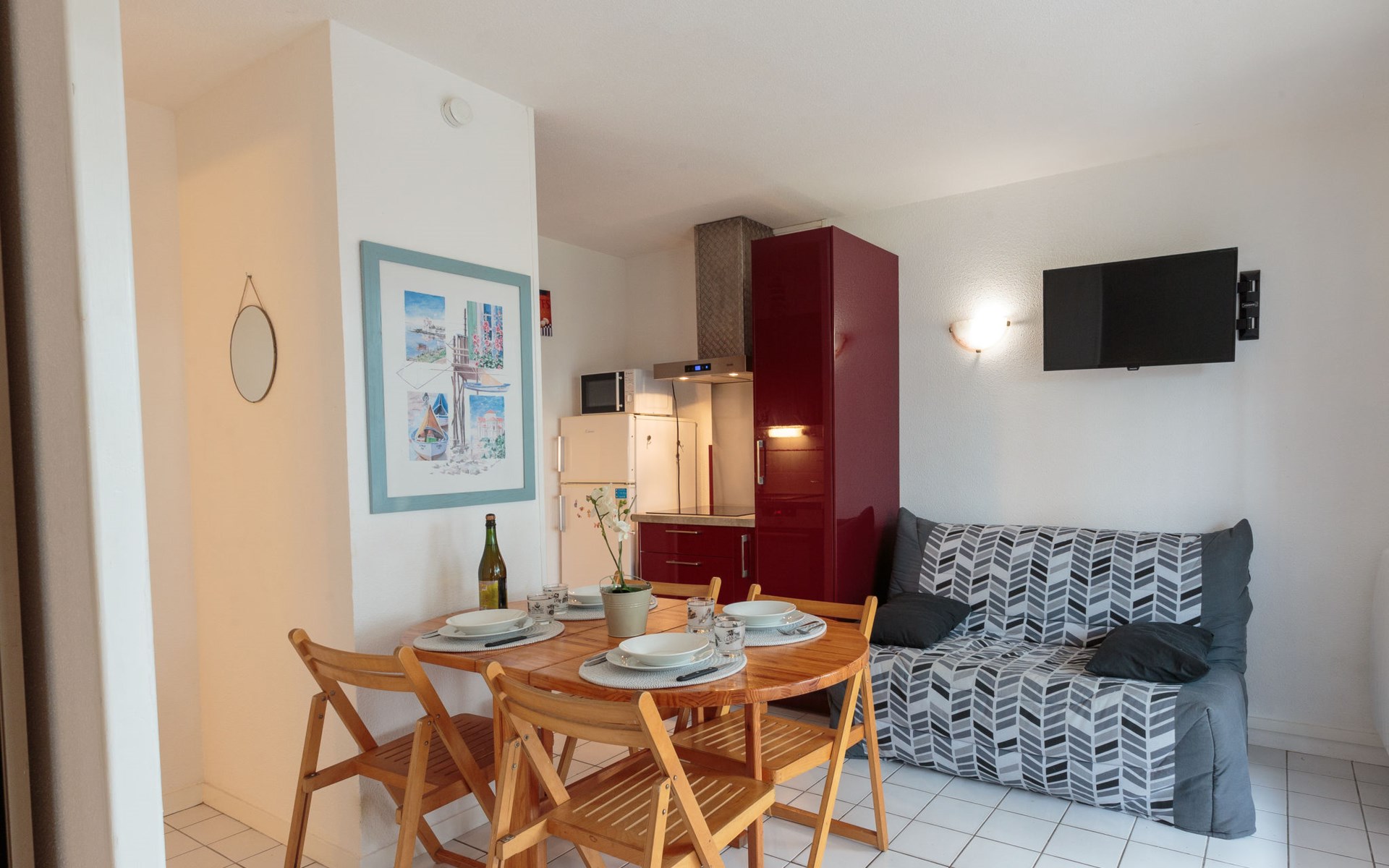 La Palmyre 15 km van Royan: Groot residentie "Hameau de Talaris". 120 huizen in de woning. 150 appartementen in de woning. Aan de rand van de plaats, 650 m van het centrum van La Palmyre, 1.3 km van zee, 1.3 km van het strand. Voor medegebruik: openluchtzwembad (15 x 7 m, 110 - 180 cm diepte, seizoensgebonden beschikbaarheid: 15.Jun. - 15.Sep.). Parkeerplaats. Winkel 650 m, levensmiddelenwinkel, restaurant 800 m, bakkerij 650 m, café, station "Royan" 19 km, zandstrand "La Palmyre" 1.3 km, park "Luna Park (Juillet - Août)" 5 km, overdekt zwembad 19 km, thermaalbad "Thalassothérapie Thalazur Royan" 19 km. Jachthaven 1.5 km, golfterrein (9 holes) 3 km, surfschool 1 km, zeilschool 2 km, midgetgolf 1.6 km, fietspad 100 m. Attracties in de buurt: Zoo de La Palmyre 1.5 km, Hippodrome - La Palmyre 900 m, Fort Boyard - Fouras 60 km, Centre aquatique Iléo - Ile d'Oleron 36 km, Aéroport La Rochelle - Ilde de Ré 82 km, Aéroport Bordeaux - Merignac 127 km. De sleuteloverdracht vindt plaats bij het agentschap Interhome in La Palmyre, 1 km. Vergelijkbare accommodaties kunnen worden geboekt.