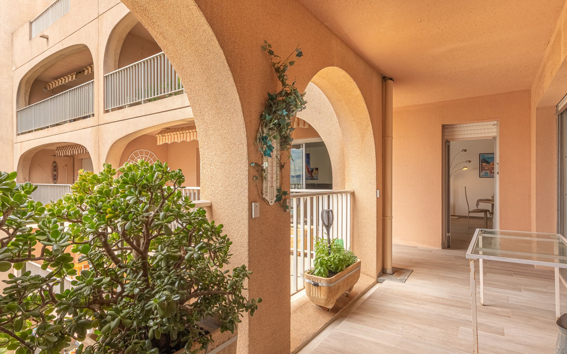 Residentie "Port de la Gavine I", van 4 verdiepingen. In de wijk Port de Hyères, drukke, zonnige ligging, 20 m van zee, 350 m van het strand. Voor medegebruik: kinderspeelplaats. In het complex: lift. Openbare parkeerplaatsen 160 m. Winkel, levensmiddelenwinkel 100 m, winkelcentrum 5.9 km, restaurant, bar, bakkerij 100 m, bushalte "Port la Gavine" 160 m, zandstrand "de la Potinière" 350 m. Jachthaven 20 m. Attracties in de buurt: Magic World 1.7 km, Kiddy Parc 1.5 km, Aquatica mini golf 2 km, Parc Olbius Riquier 4.7 km, Jardin zoologique Tropical 15 km. Wandelgebied Route du Sel 5.2 km, Sentiers du Littoral 9.6 km. De sleuteloverdracht vindt plaats bij het agentschap INTERHOME in Hyères sur le Port. Vliegveld in de buurt.