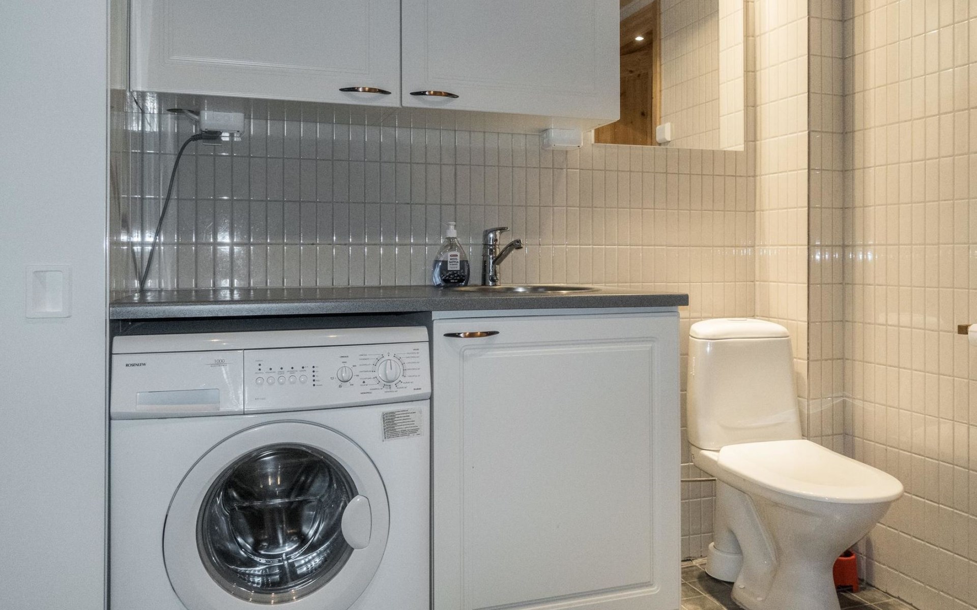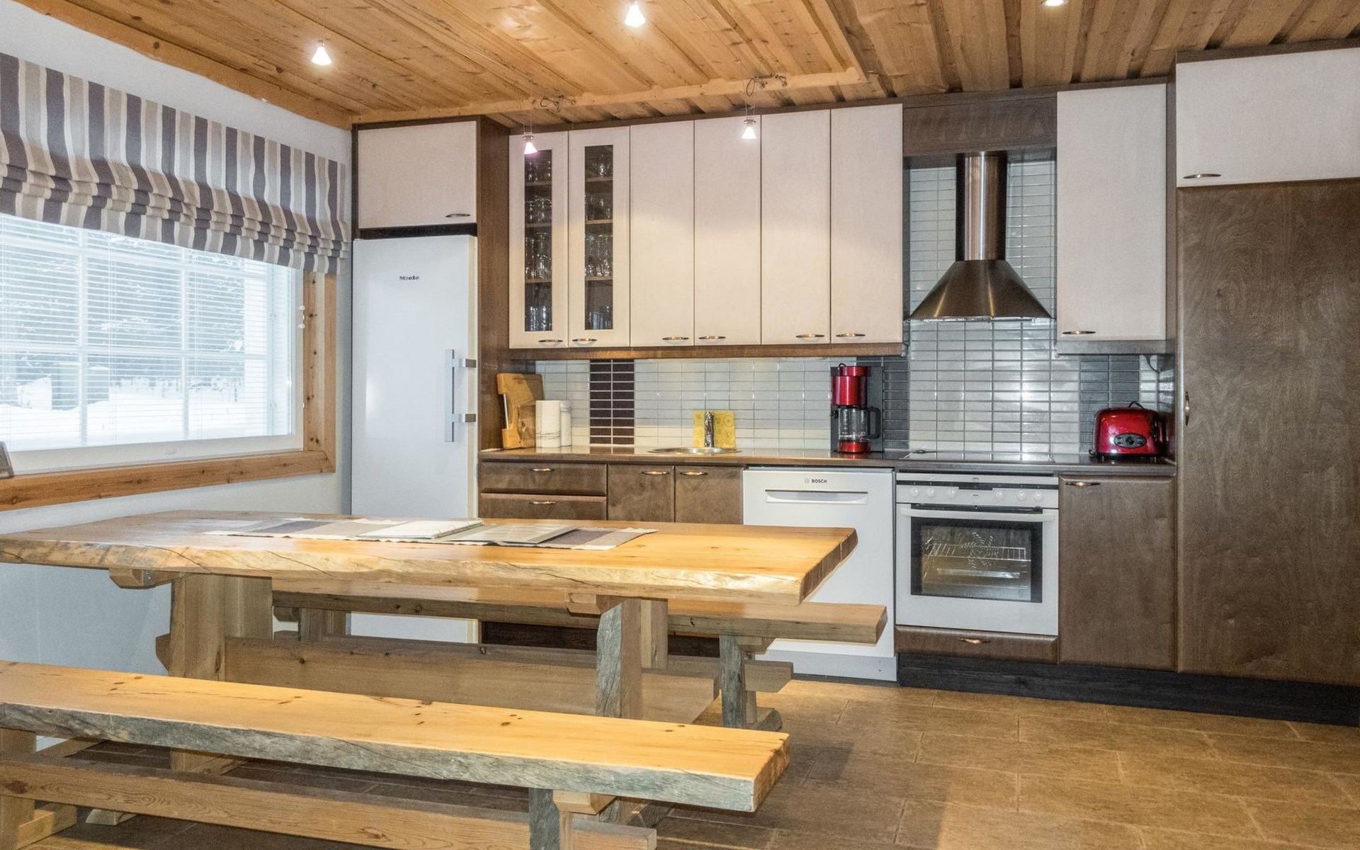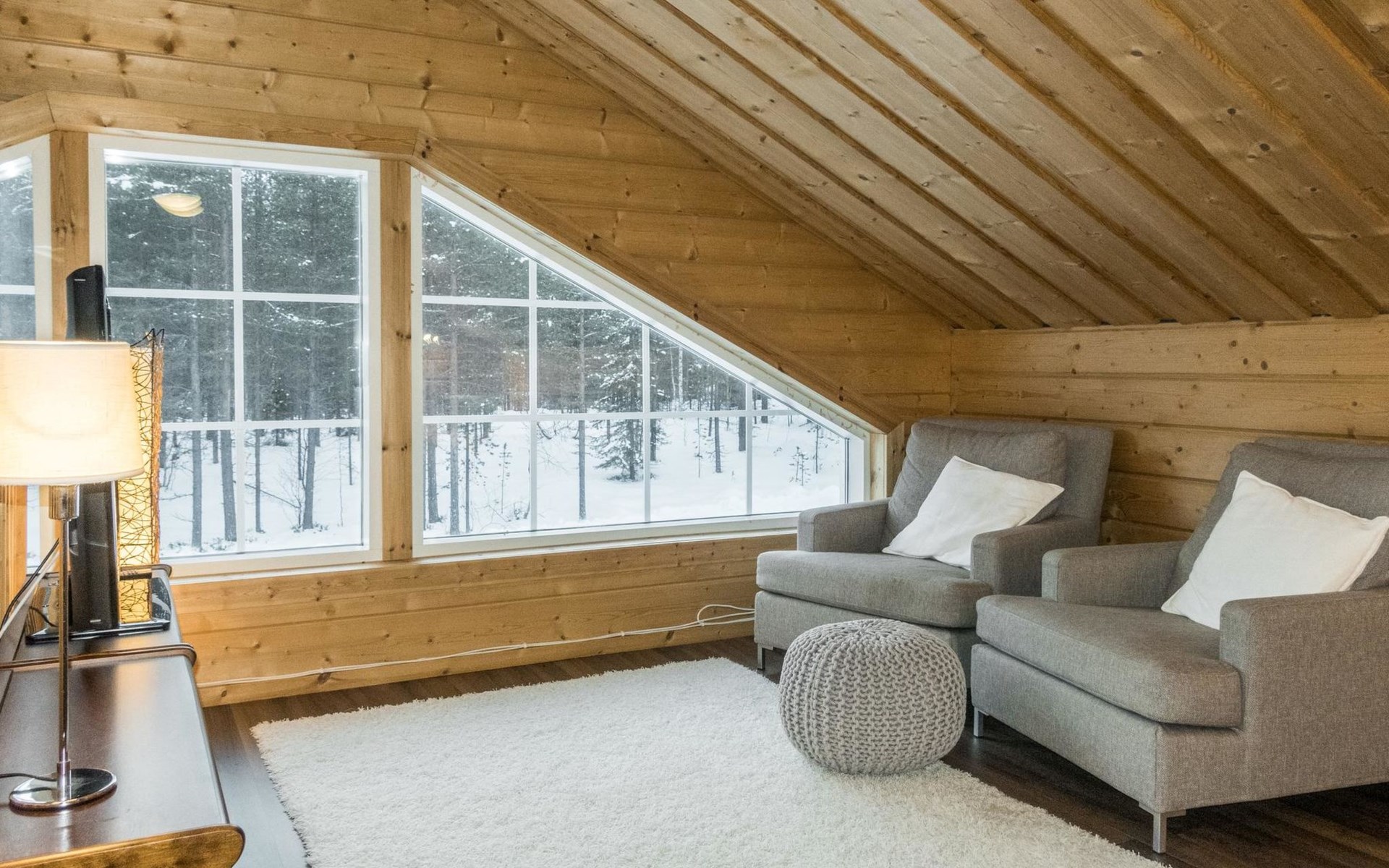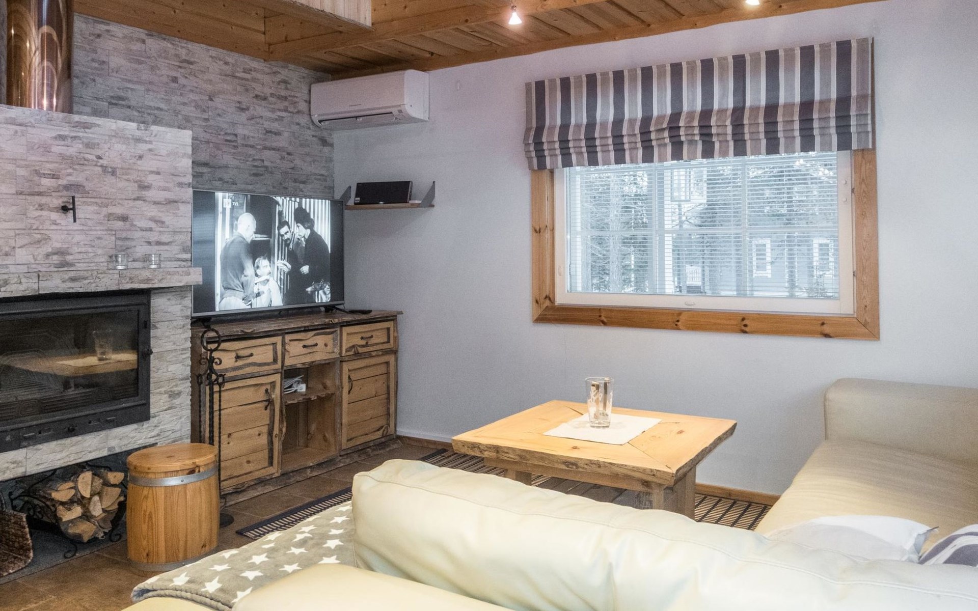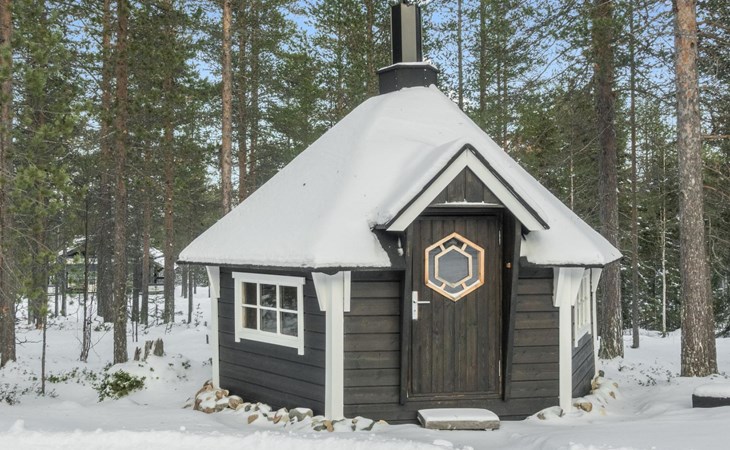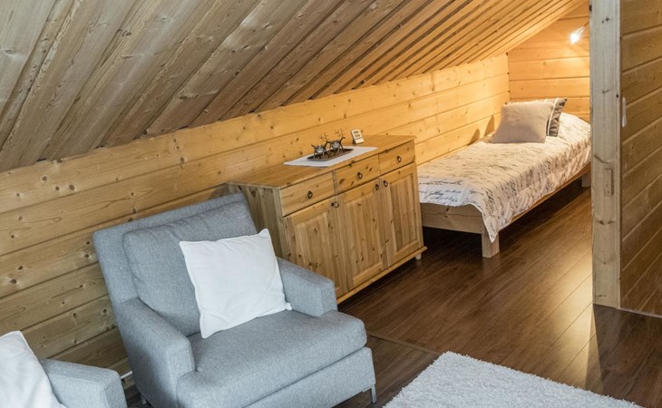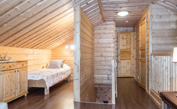 On the ground floor, living room / kitchen, bedroom with two beds, sauna with instant ready electric sauna stove, washroom/WC and large terrace on the fell side. There is no fence between the apartments on the terrace (uniform space).