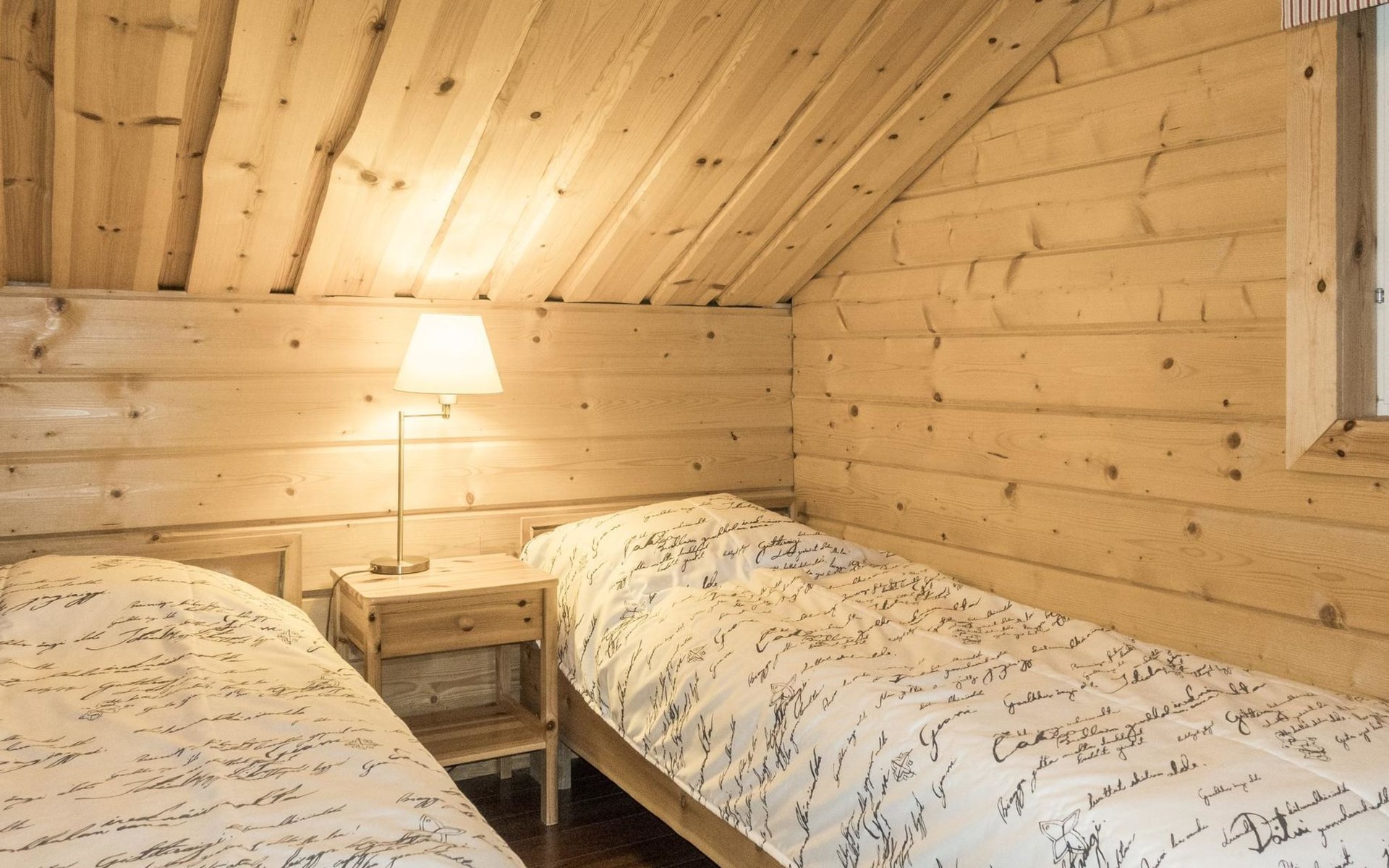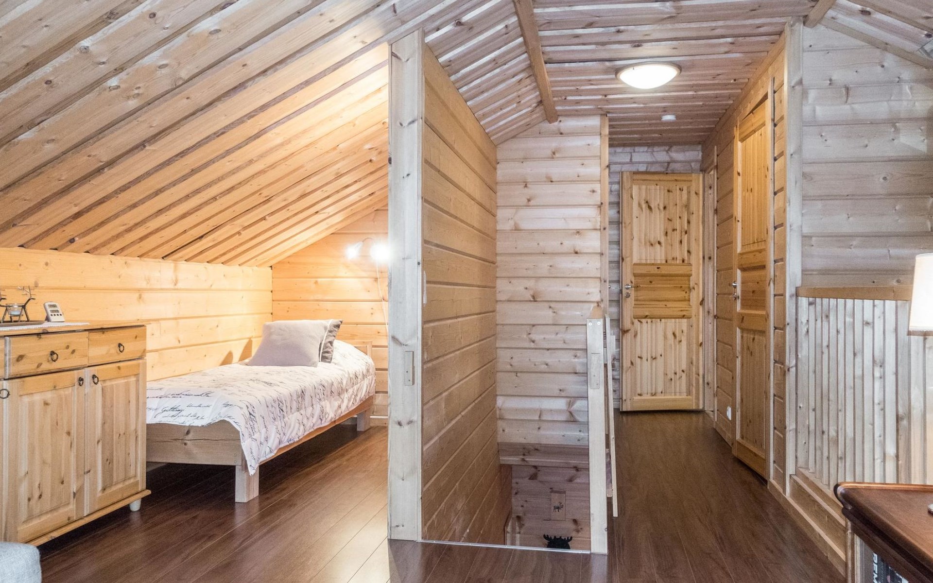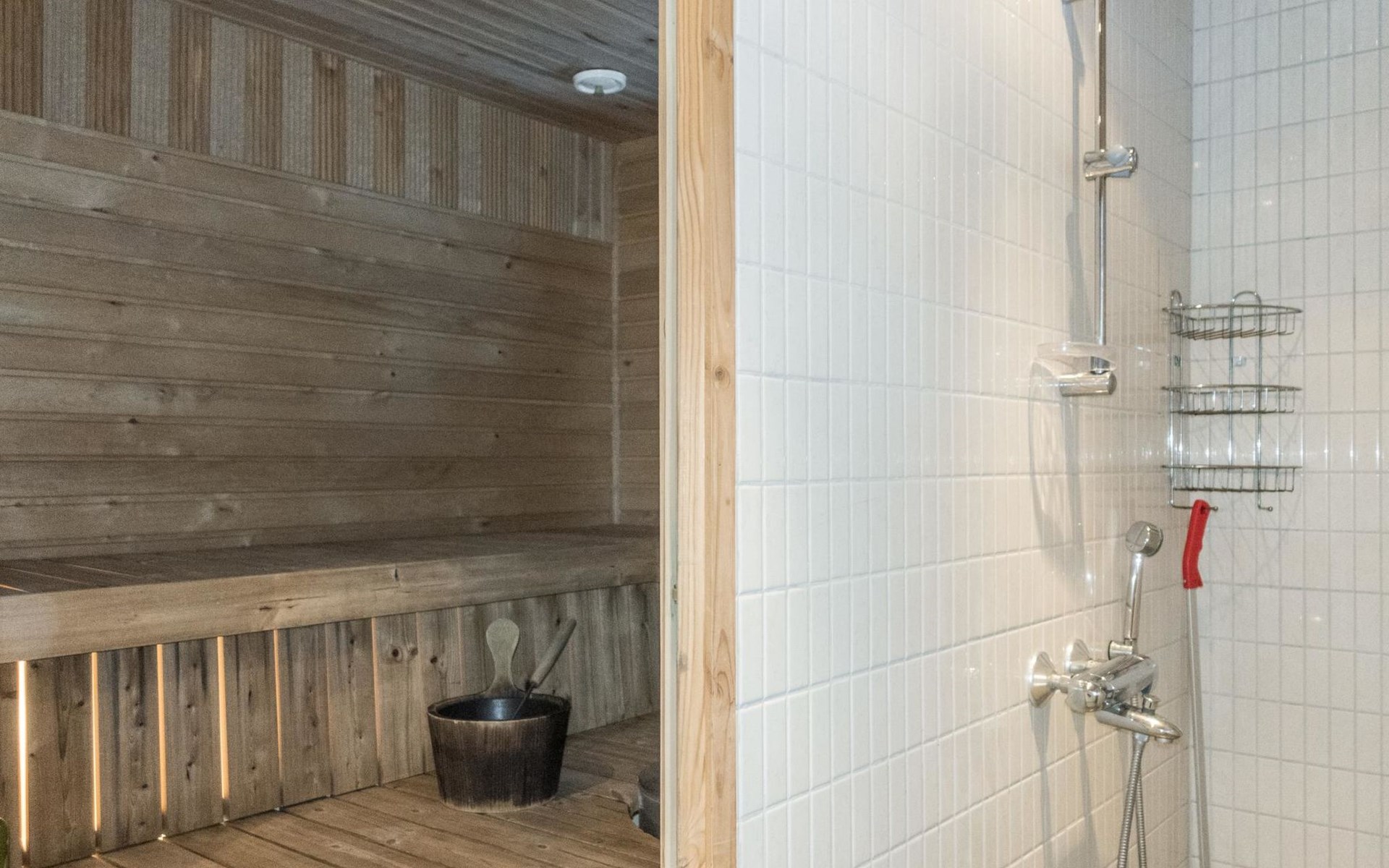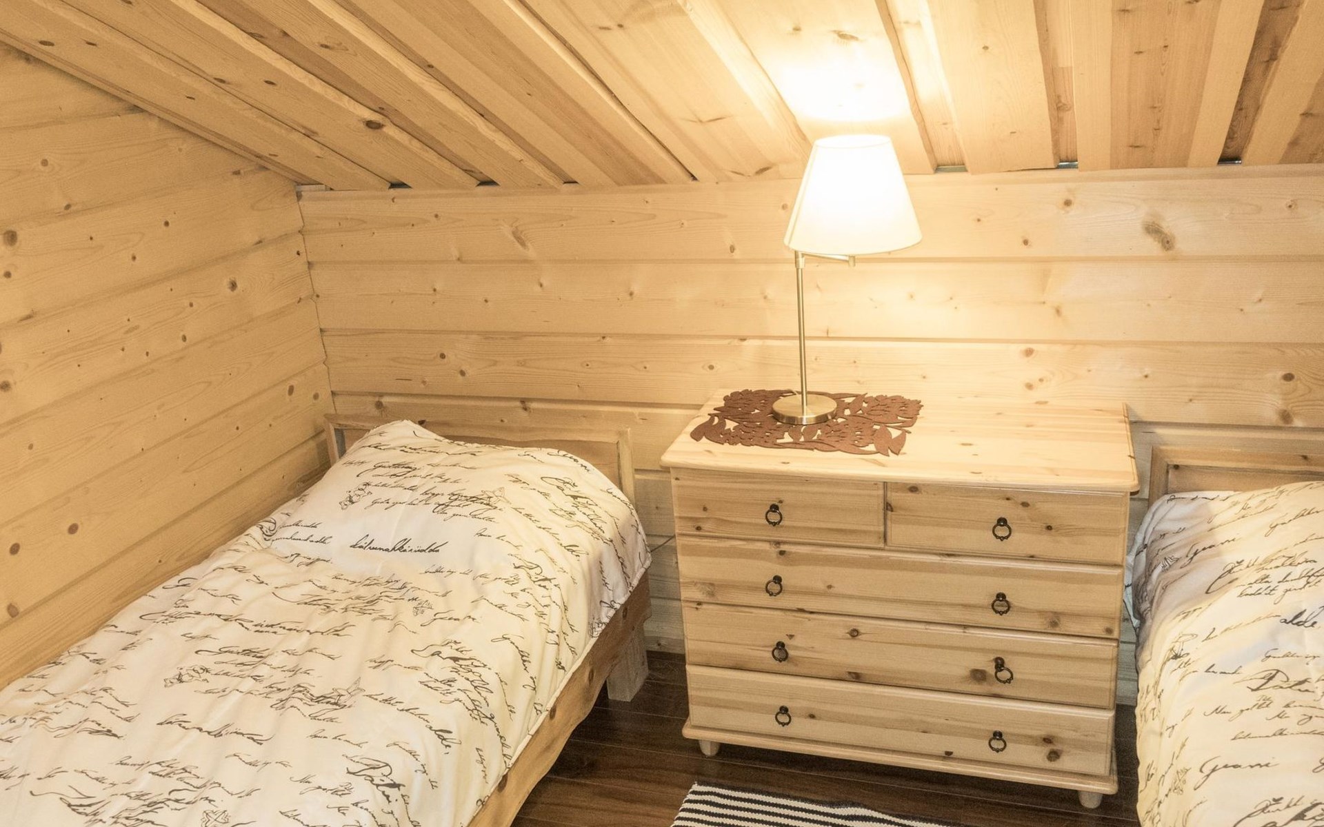 On the ground floor, living room / kitchen, bedroom with two beds, sauna with instant ready electric sauna stove, washroom/WC and large terrace on the fell side. There is no fence between the apartments on the terrace (uniform space).