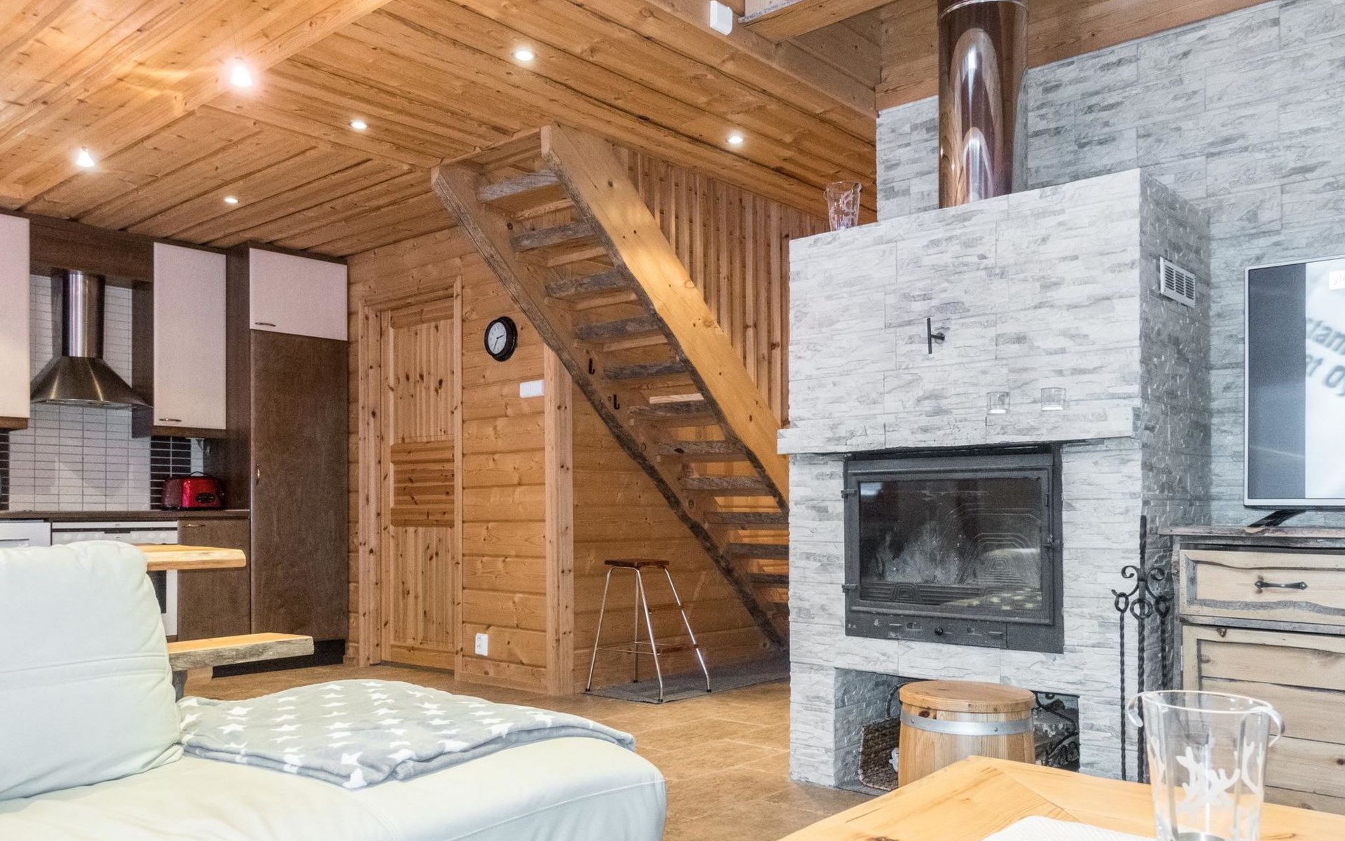 170 km to the north from Rovaniemi, in the Levi tourist center in Niesta district. Log and stone-built apartment in a semi-detached house, built in 2007, storage between the apartments.