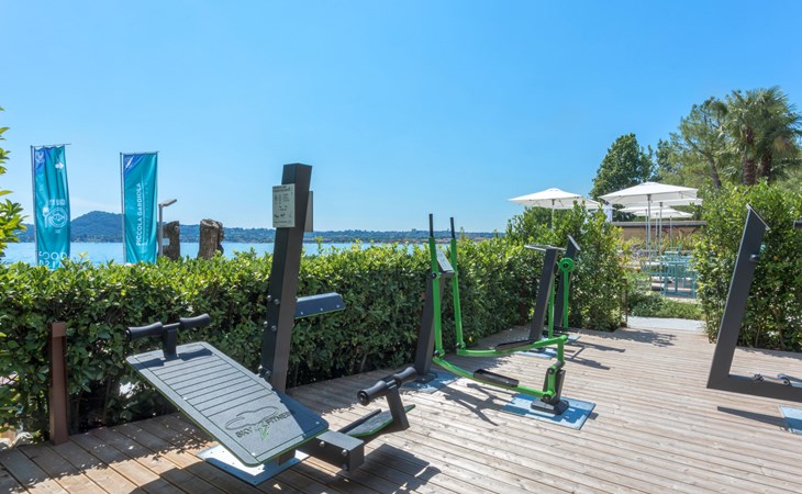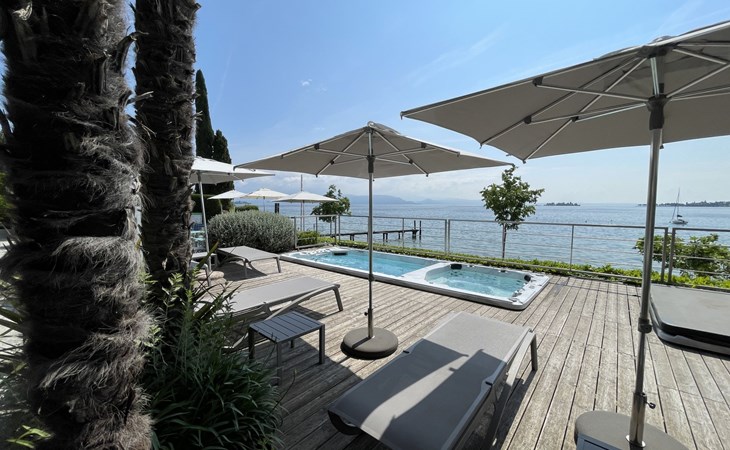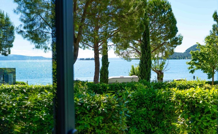 Klein vakantiecomplex "Concept Village Piccola Gardiola". 14 huizen in de plaats. 2 km van het centrum van San Felice del Benaco, 9 km van het centrum van Moniga del Garda, 20 m van het meer, 20 m van het strand, aan een doodlopende weg. Voor medegebruik: terrein 3.700 m2 (omheind), mooie tuin met bomen. Hot tub, tafeltennis, terras, tuinmeubelen, kinderspeelplaats. In het complex: bar, Internet (WiFi) (extra). Ontbijt op verzoek (extra). Levensmiddelenwinkel 2 km, bushalte 950 m, kiezelstrand 20 m. Bubbelbad open ca. 23.05.-30.09.