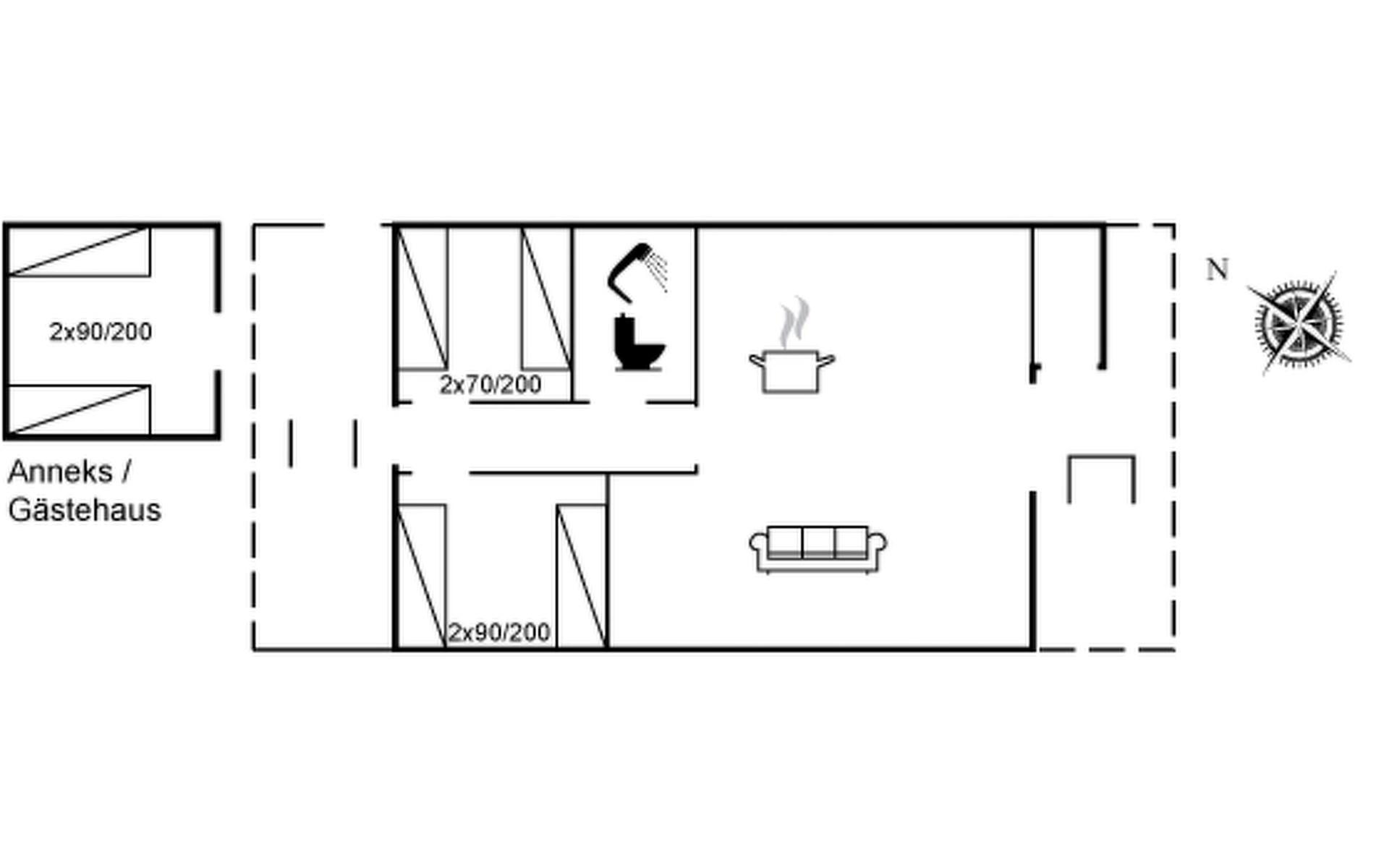 Eengezinswoning, bouwjaar 1978. 600 m van zee. Voor alleengebruik: wild terrein 2.600 m2. Barbecue (schommel), parkeerplaats bij het huis. Oplaadstation. Levensmiddelenwinkel 4 km. Golfterrein 8 km. De eigenaar accepteert geen jeugdgroepen.