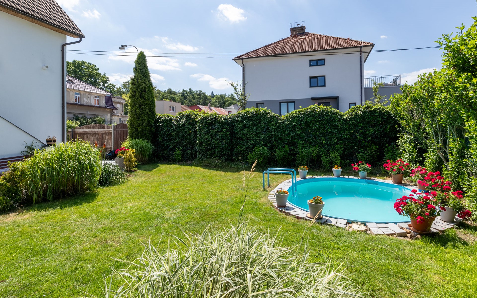 Řevnice 20 km van Praha: Comfortabel Huis met 2 woningen "Řevnice", van 2 verdiepingen. Rustige, zonnige ligging, 800 m van de rivier. Voor alleengebruik: tuin 100 m2 met gazon, openluchtzwembad (4 x 3 m, 150 cm diepte, seizoensgebonden beschikbaarheid: 01.Jun. - 30.Sep.). Patio, tuinmeubelen, barbecue. In het huis: centrale verwarming. Parkeerplaats op het terrein. Levensmiddelenwinkel 500 m, supermarkt 500 m, restaurant 50 m, café 500 m, biertuin 700 m, bushalte "Řevnice - nádraží" 1 km, station "Řevnice" 1 km, overdekt zwembad 4 km. Golfterrein (27 holes) 8 km, tennis 1 km, wandelroutes 100 m vanaf het huis, fietspad 700 m. Attracties in de buurt: Pivovar Řevnice 700 m, Wellness Dobřichovice 4 km, zámek Mníšek pod Brdy 7 km, Karlštejn, vápencové lomy Amerika 10 km, Koněpruské jeskyně 14 km, Beroun 16 km. Wandelgebied Český kras 3 km, Křivoklátsko 25 m. Geschikt voor families, geschikt voor senioren. Regelmatige treinverbinding naar Praag, ieder uur.