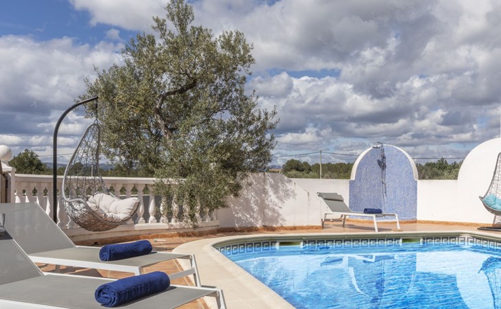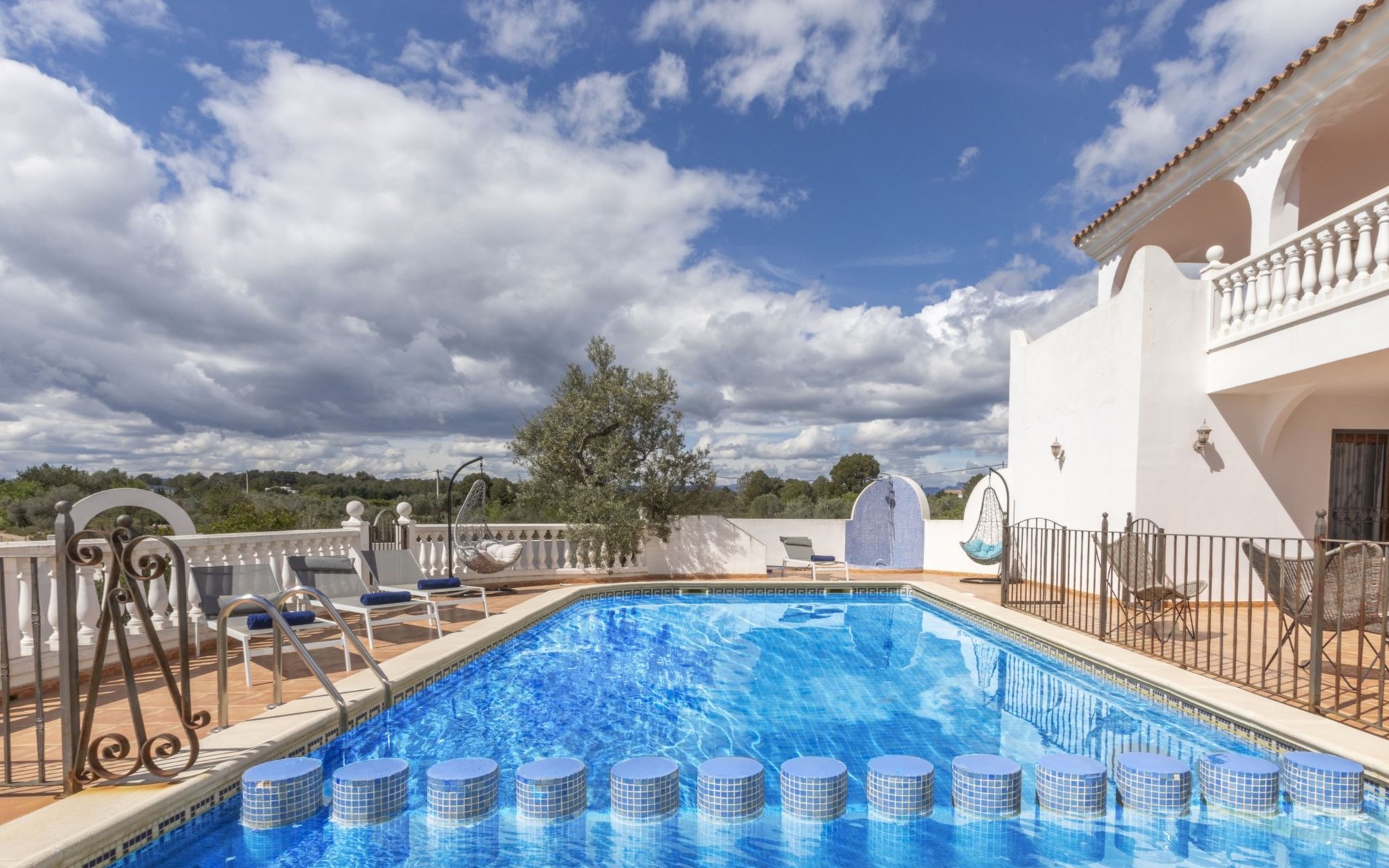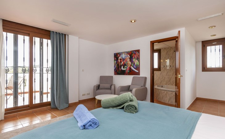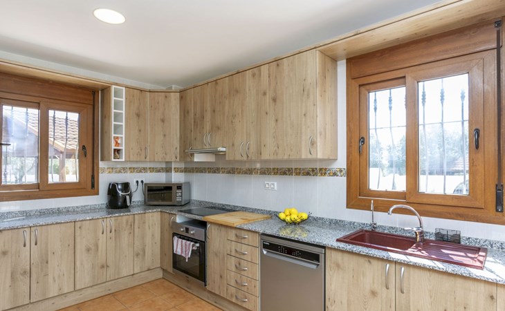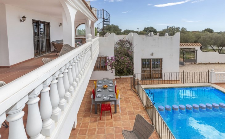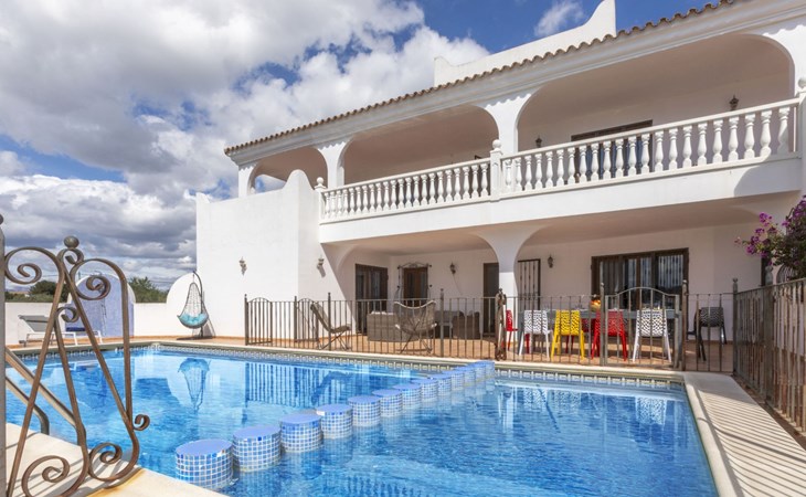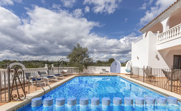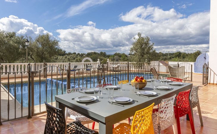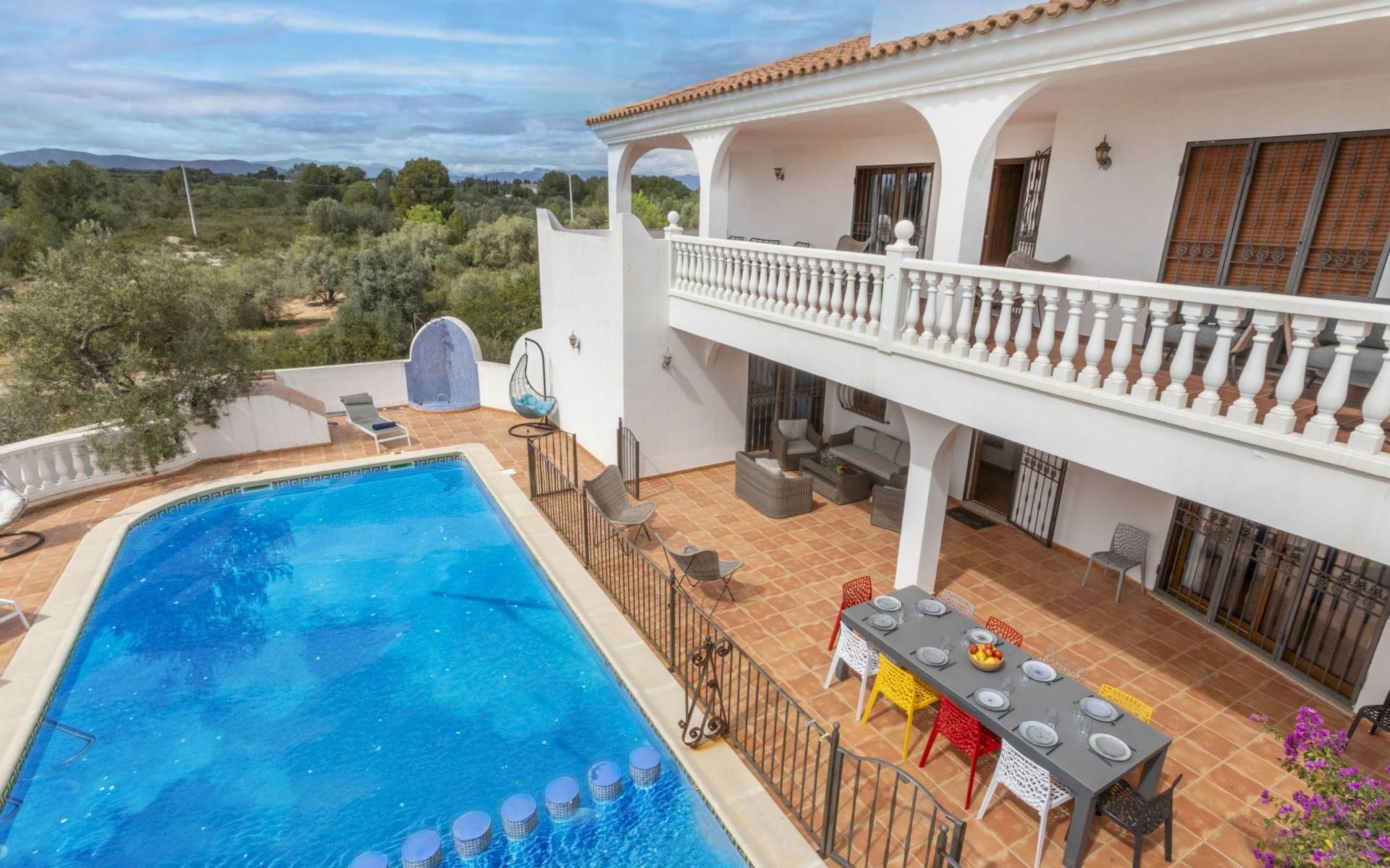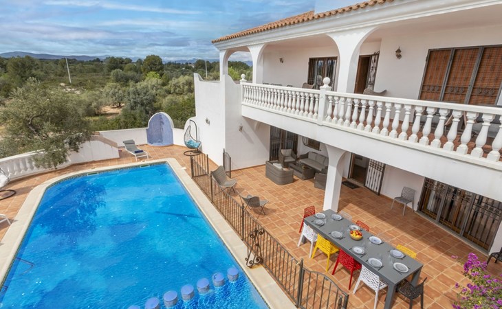 Sant Jordi: Groot villa "Hacienda Azahar", van 2 verdiepingen. Geïsoleerde, rustige, zonnige ligging, 10 km van zee, 10 km van het strand. Voor alleengebruik: wild terrein (omheind), openluchtzwembad hoekig (58 m2, seizoensgebonden beschikbaarheid: 01.Mei. - 30.Sep.). Kinderzwembad, buitendouche, prieel, barbecue. In het huis: air-conditioning. Parkeerplaats. Bushalte "Vinaròs - Calle 29 Septiembre" 13 km, treinstation "Vinaròs" 14 km, zandstrand "Playa Vinaròs" 15 km. Golfterrein (18 holes) 6 km. Attracties in de buurt: Peñiscola 30 km, Ciutat de les Arts i les Ciències 160 km, Sant Mateu 24 km, Delta del Ebro 42 km, Port Aventura 105 km, Morella 53 km. Wandelgebied Parque Natural Sierra de Irta 35 km, Foradada del Montsià 30 km. Auto noodzakelijk, geen lift. Groepen jongeren uitsluitend op aanvraag. Autobaan in de buurt 15 km van het huis.