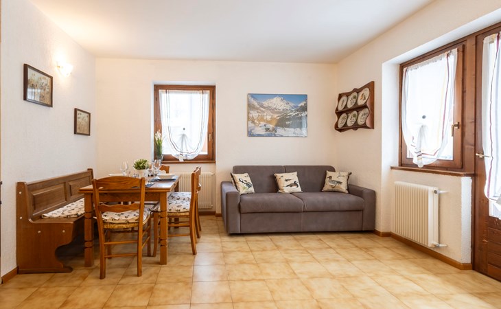 Klein, comfortabel appartementencomplex "The Silent Sylva", 1.320 m boven zeeniveau, van 2 verdiepingen. 15 appartementen in de woning. In het gehucht Pradelle, 7 km van het centrum van Bormio, 30 km van het centrum van Livigno, rustige, zonnige ligging in een woonwijk, 1.2 km van het skigebied, op het zuidoosten. Voor alleengebruik: verzorgde tuin (omheind) met bomen, ligweide. Tuinmeubelen. In het huis: bergruimte voor fietsen, berging voor ski's, centrale verwarming. Parkeerplaats bij het huis, eigen garage. Afmetingen: hoogte 218 cm breedte 277 cm. Supermarkt 500 m, restaurant, bar 300 m, bushalte 250 m, thermaalbad "Terme di Bormio" 5 km. Golfterrein (18 holes) 6 km, stoeltjeslift 1.2 km, skischool 1.2 km, kinderskischool 1.2 km, langlaufloipe 700 m. Attracties in de buurt: Parco Nazionale dello Stelvio. Bekende skigebieden kunnen gemakkelijk worden bereikt: Bormio 2000 17 km, Santa Caterina Valfurva 20 km, Livigno 30 km. Wandelgebied Croce della Reit, Val Zebrù, Sentiero Glaciologico Alto, Malga di San Colombano, Val Viola.