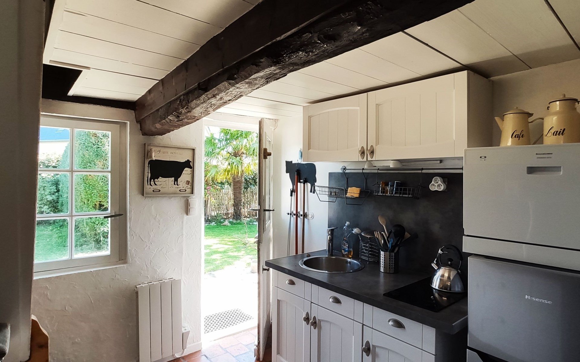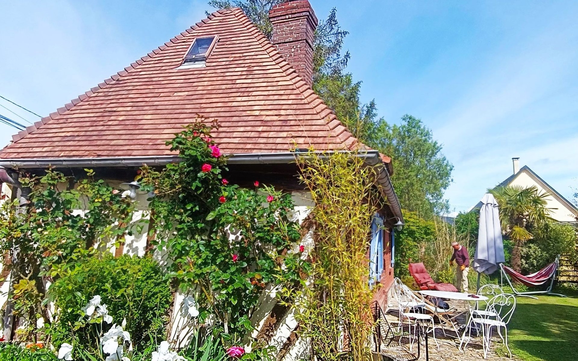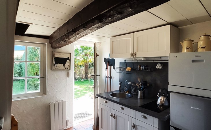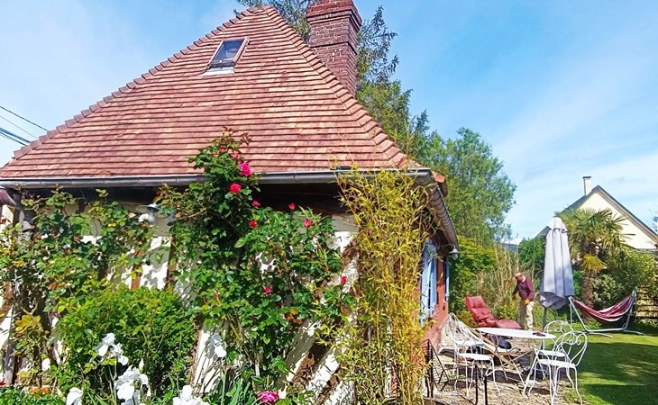 Discover the authentic charm of a Normandy farmhouse just 2 km from the beaches of Villers-sur-Mer or Houlgate. This detached house, ideal for those looking to get away from it all, guarantees a unique experience with its distinctive style and atmosphere. Perfect for a quiet retreat, it promises unforgettable holidays close to the sea.The interior of this haven of peace has been designed with your comfort and well-being in mind. On the ground floor you will find a living room with a 160cm double sofa bed, a dining room, a separate fully equipped kitchen with a small 6 place dishwasher, a 2 burner electric hob, an oven plus microwave, a mini oven and a coffee maker. There is also a small shower room with shower, washbasin, WC and hairdryer. On the attic floor is the sleeping area with a 140 cm bed and a study area, perfect for relaxing.The charm of this property continues outside with a magnificent 200m2 private wooded garden, where you can enjoy al fresco meals on the terrace, relax and breathe in the fresh Normandy air. A wood-burning stove is a welcome addition for cooler evenings or simply for a cosy atmosphere.The house benefits from an ideal location: it is quiet without being isolated, guaranteeing a peaceful stay while still being close to amenities. Another house, separated by vegetation, is nearby, but with a private garden for each dwelling, ensuring privacy and tranquillity. You are just 2 km from the beach, the nearest town centre, food shops and water sports activities, making this the ideal base from which to explore the area.This Norman farmhouse is a rare gem that perfectly combines old-world charm with modern comforts, all in an exceptionally peaceful setting close to the sea. Whether you're looking for a romantic getaway, a relaxing break or an active holiday close to the beach, this house is the perfect choice for a memorable holiday in Normandy. 14640267943CA