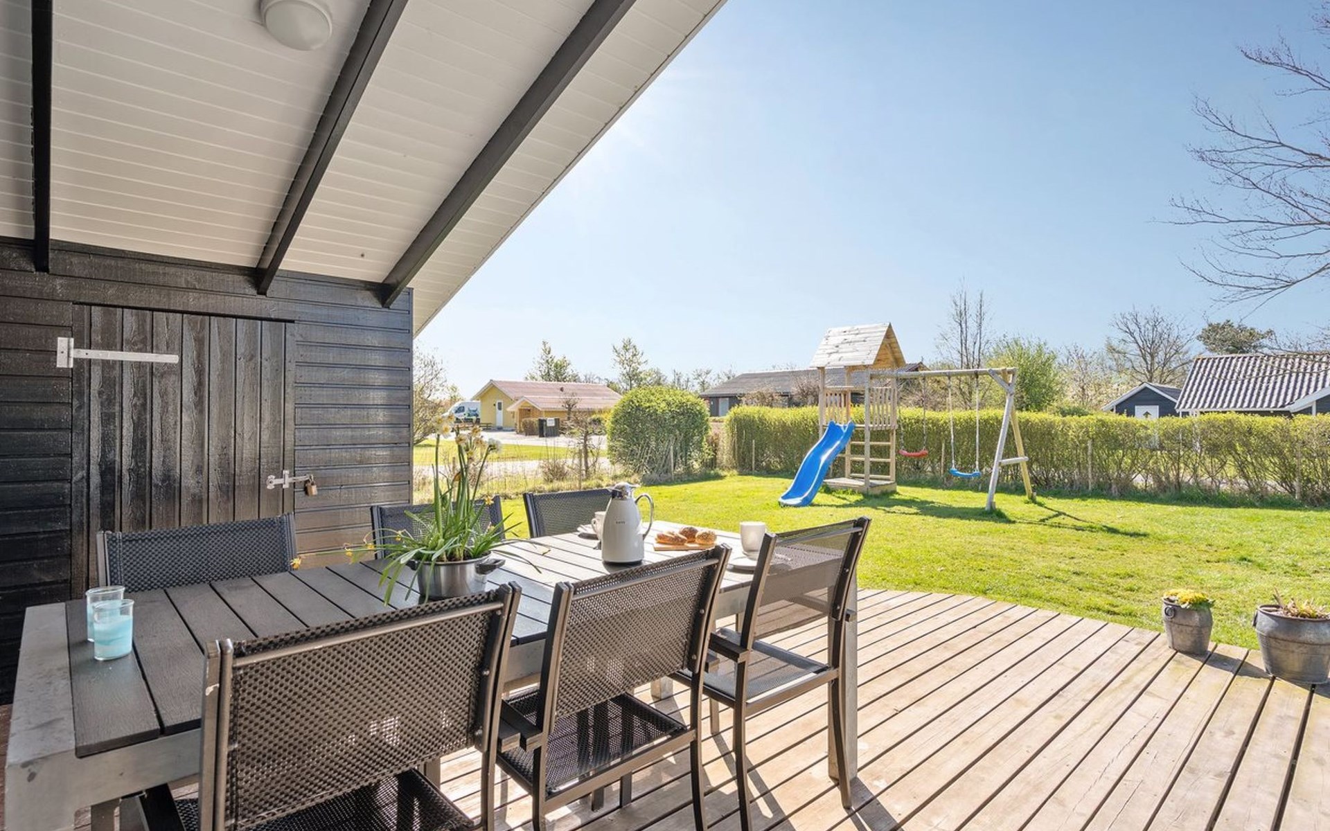 Eengezinswoning, bouwjaar 1977. 7.2 km van zee. Voor medegebruik: tuin. Voor alleengebruik: terrein 1.000 m2, verzorgde tuin (omheind). Terras (25 m2), kinderspeelplaats (glijbaan, schommel). In het huis: wasmachine. Parkeerplaats bij het huis. Oplaadstation. Levensmiddelenwinkel 800 m. De eigenaar accepteert geen jeugdgroepen.