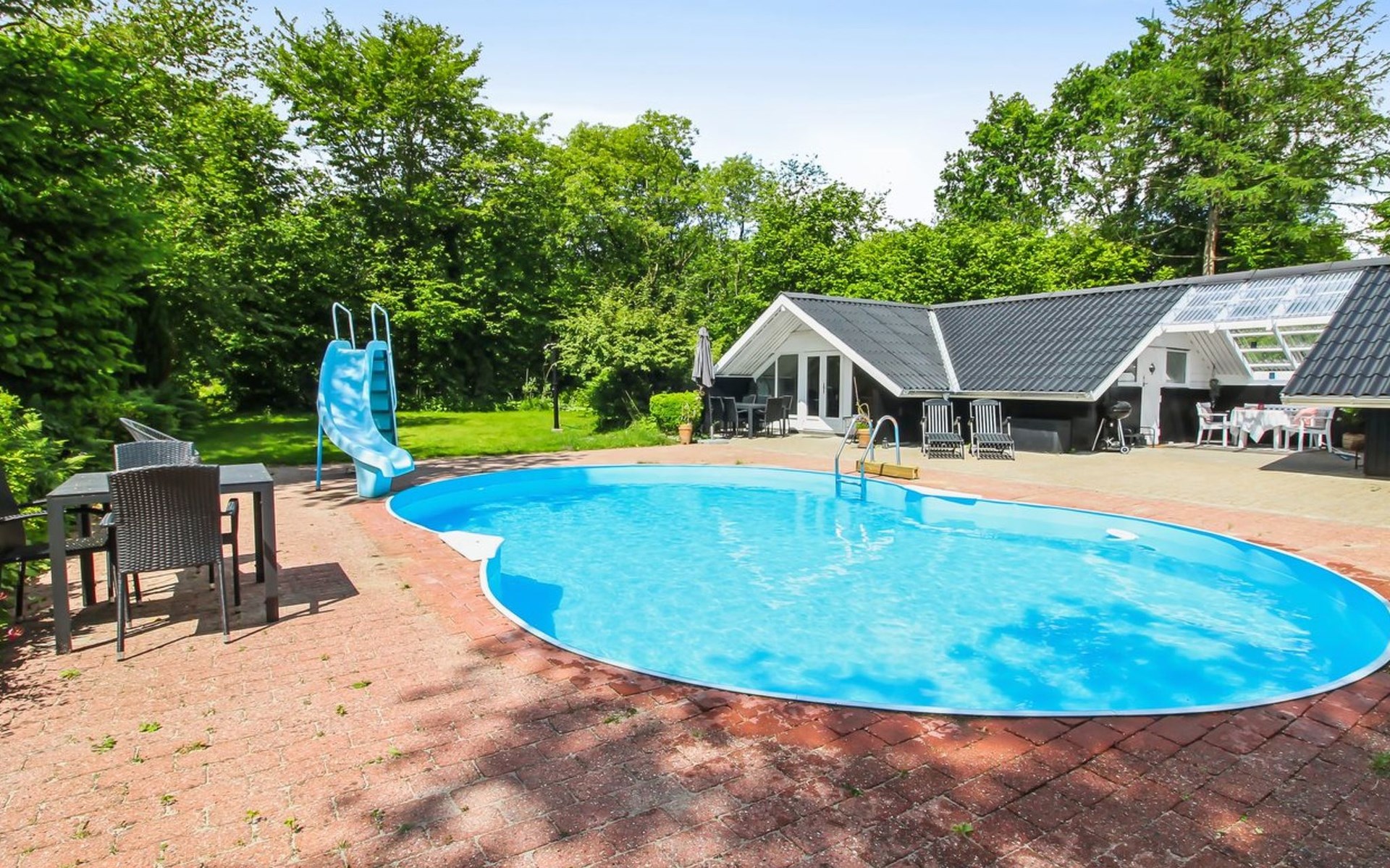 Eengezinswoning, bouwjaar 1976. 30 km van zee. Voor alleengebruik: wild terrein 876 m2, openluchtzwembad (6 x 8 m, 48 m2, 135 - 135 cm diepte, seizoensgebonden beschikbaarheid: 01.Mei. - 30.Sep.). Buitendouche, barbecue. In het huis: wasmachine. Parkeerplaats bij het huis. Oplaadstation. Levensmiddelenwinkel 700 m. De eigenaar accepteert geen jeugdgroepen.