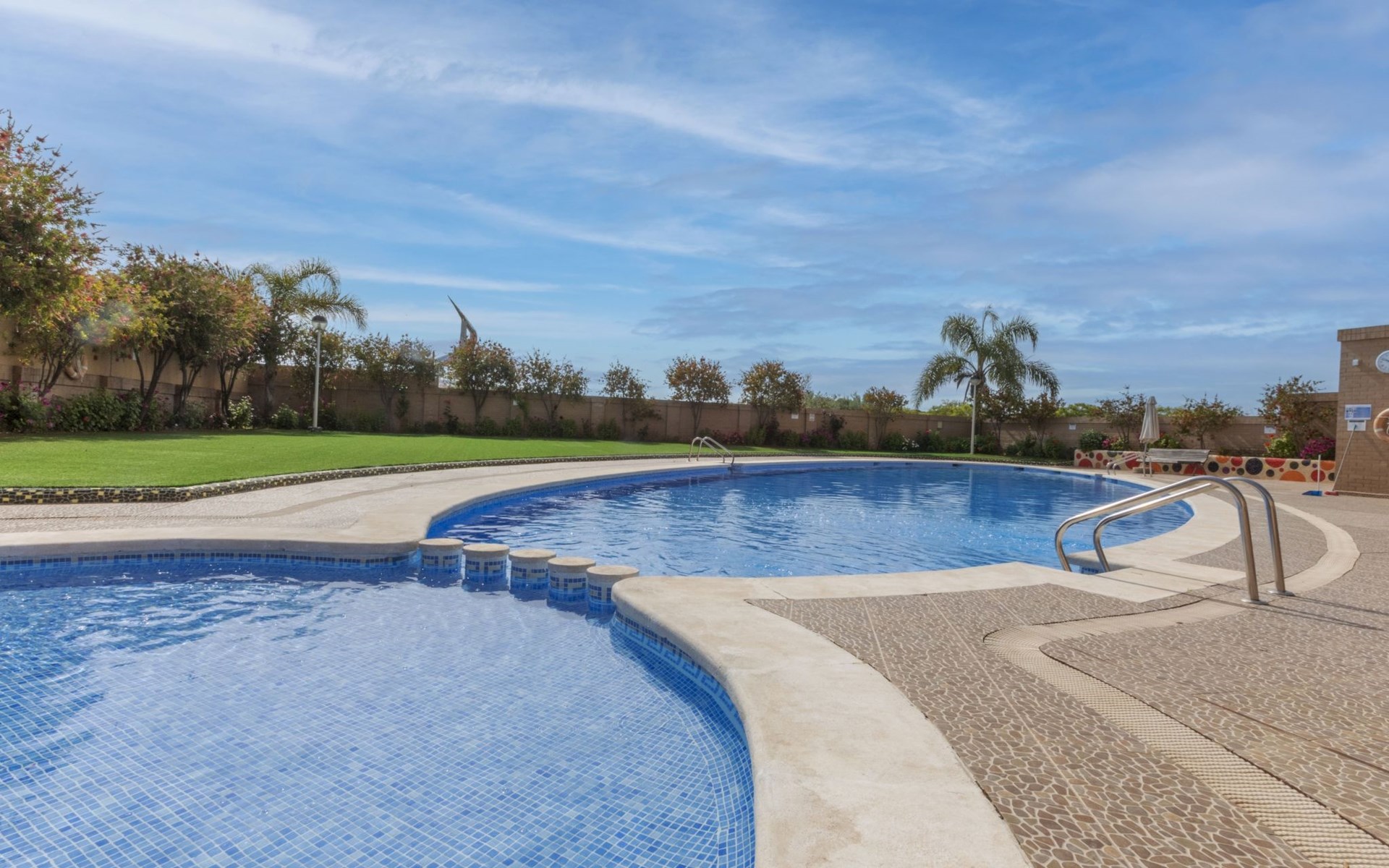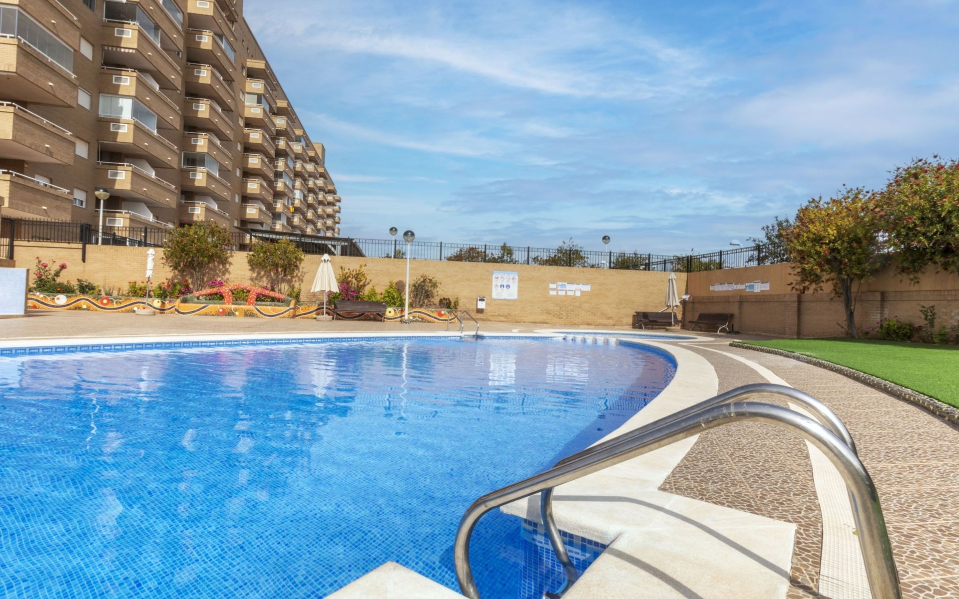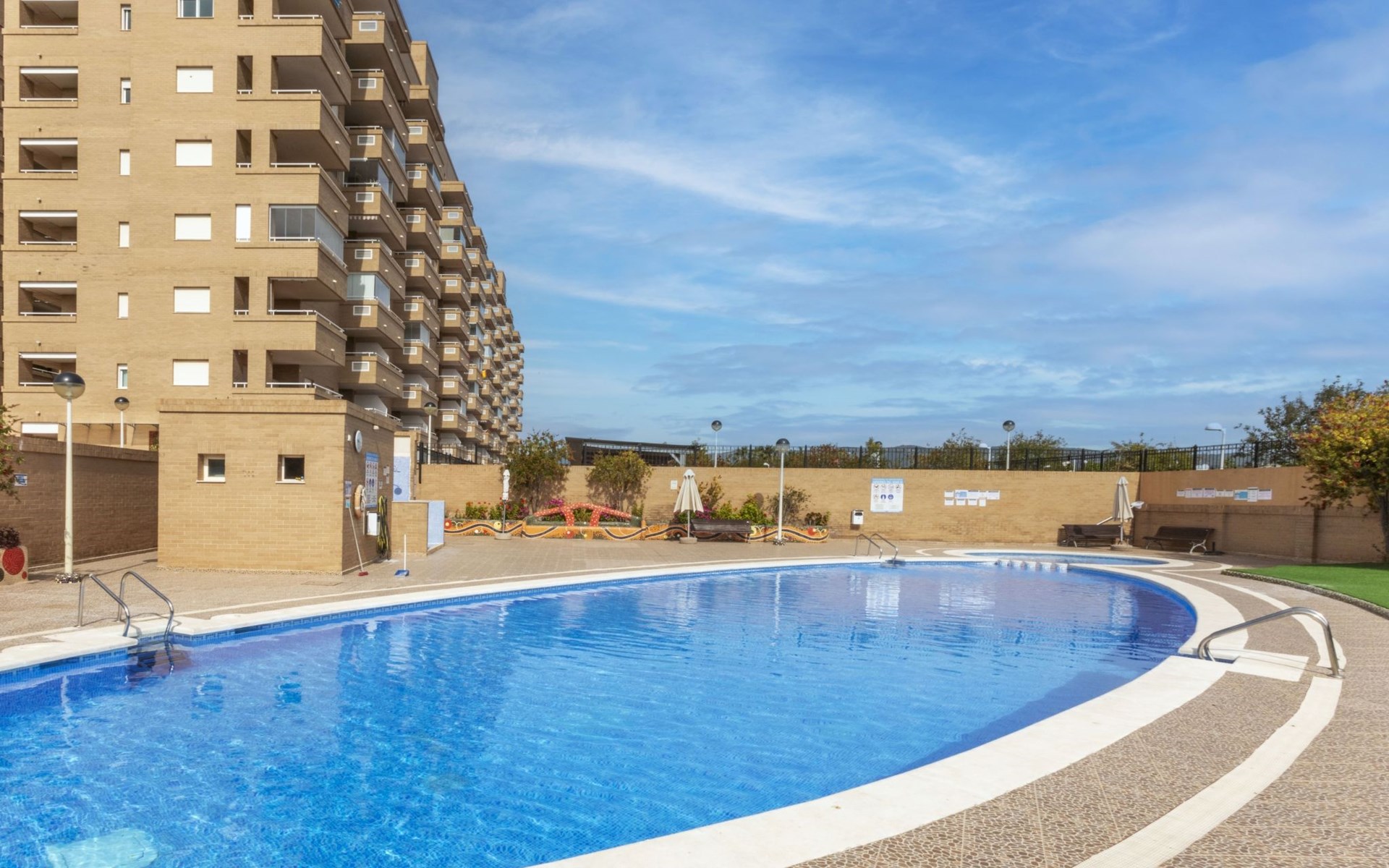 Residentie "Jardines del Mar III". Aan de rand van de plaats, 3.5 km van het centrum van Oropesa del Mar, in het district Marina D´or, drukke, zonnige ligging, 300 m van zee, 300 m van het strand, aan een hoofdweg. Voor medegebruik: openluchtzwembad rond (20 x 10 m, 70 - 270 cm diepte, seizoensgebonden beschikbaarheid: 01.Jun. - 15.Sep.). Kinderzwembad, buitendouche, kinderspeelplaats. Voor alleengebruik: 2 zwembaden rond (20 x 10 m, 70 - 270 cm diepte, seizoensgebonden beschikbaarheid: 01.Jun. en 15.Sep.). WC bij het zwembad, kinderzwembad, kinderspeelplaats. In het huis: lift. Parkeerplaats bij het huis. Supermarkt 200 m, winkelcentrum 400 m, restaurant, bar, café 200 m, bushalte 1.2 km, treinstation "Oropesa de Mar" 3 km, zandstrand 300 m. Jachthaven 6 km, golfterrein 22 km. Attracties in de buurt: Parque Acuatico 1 km. Autobaan 900 m van het huis. Hoofdstraat 300 m van het huis. Spoorweg 300 m van het huis. Nachtclub/disco 300 m van het huis. De omgeving is gevoelig voor geluidsoverlast. Gelieve geen lawaai te maken en de rust te bewaren.