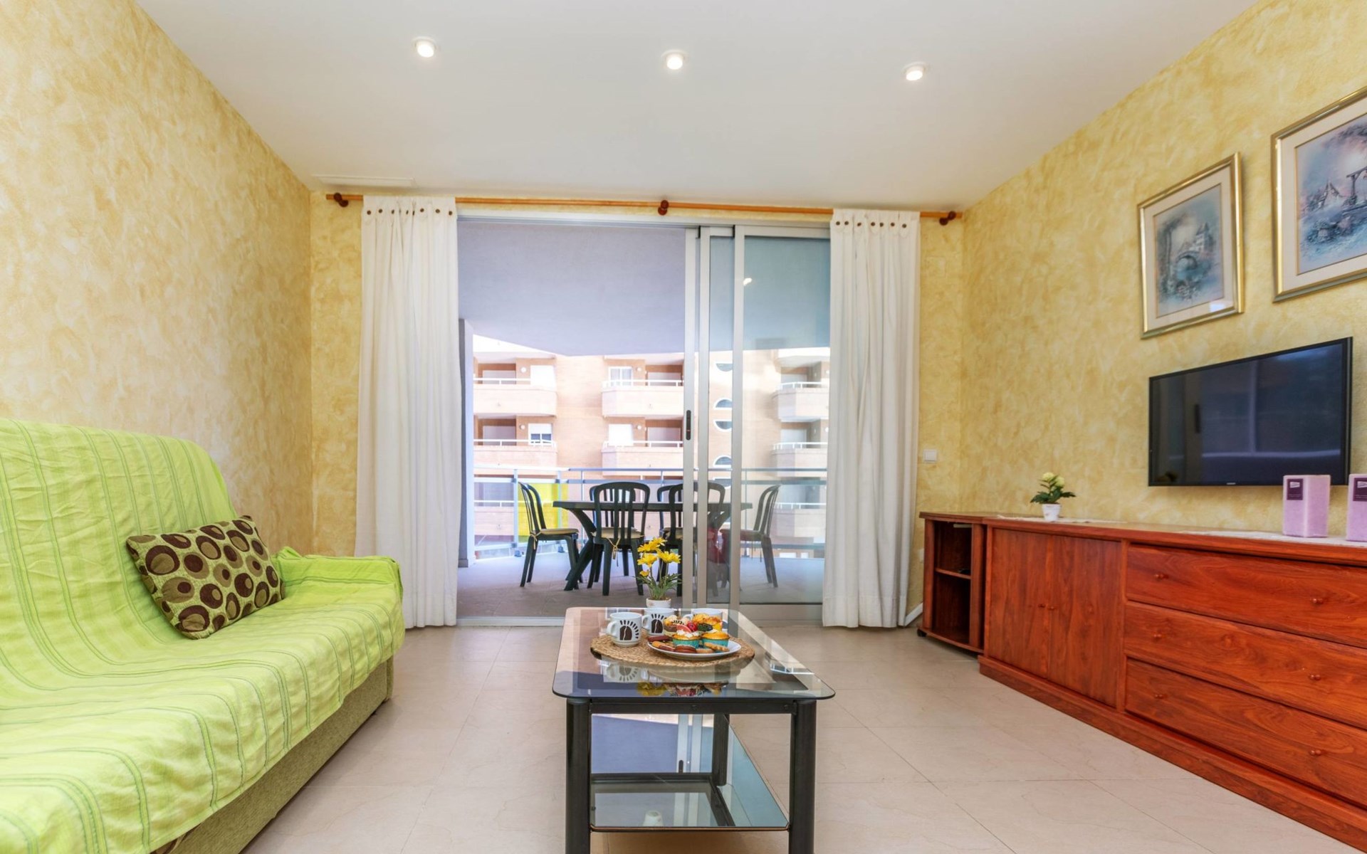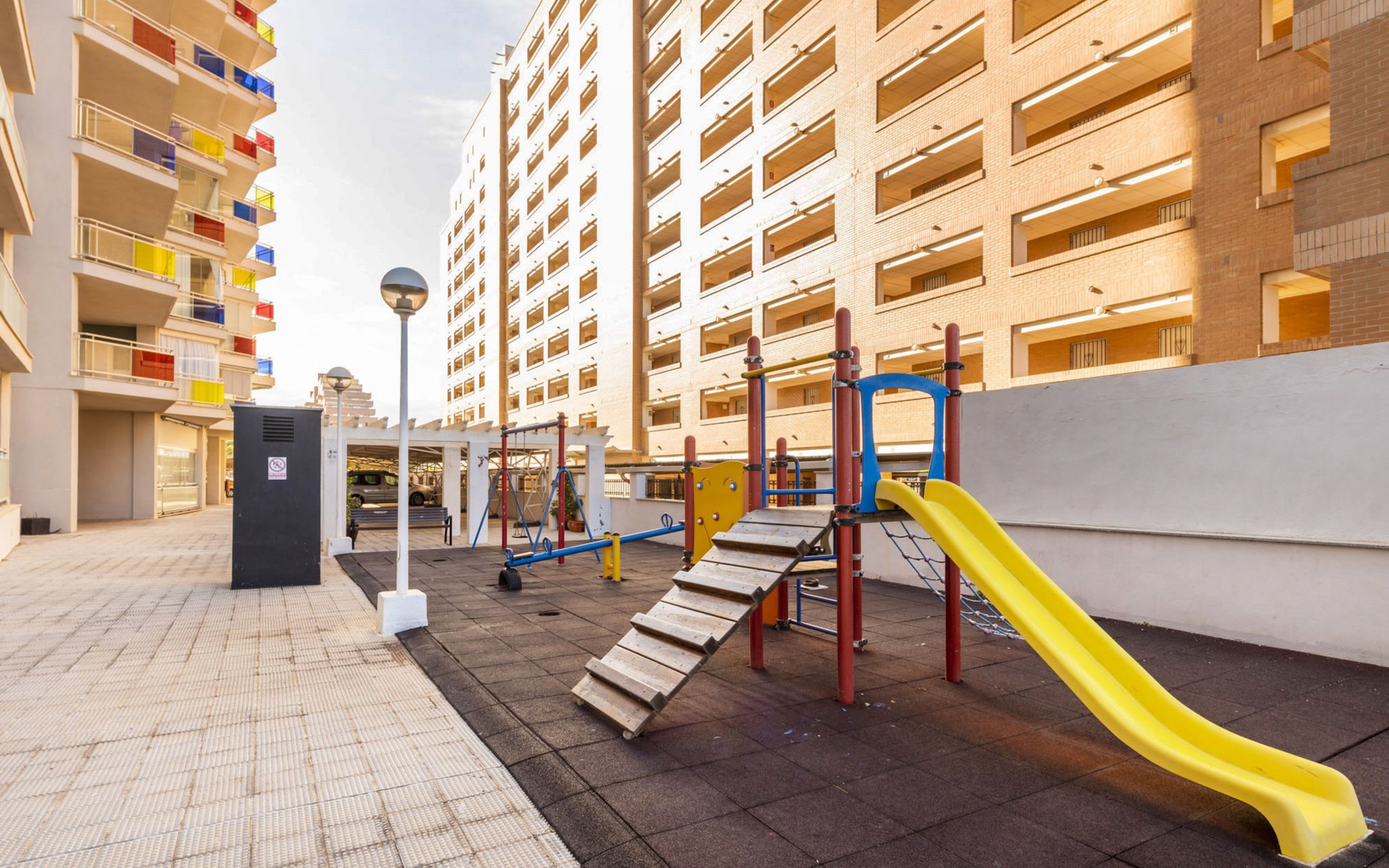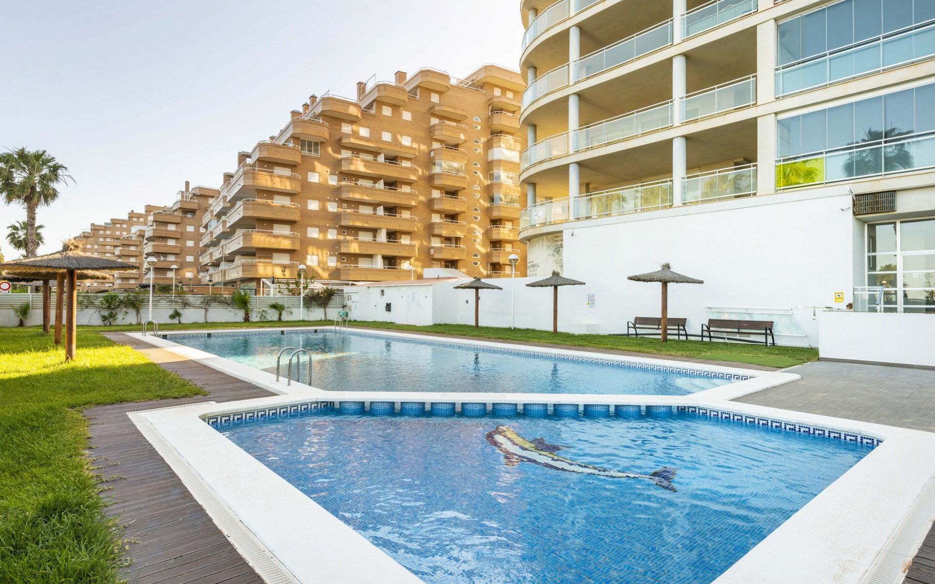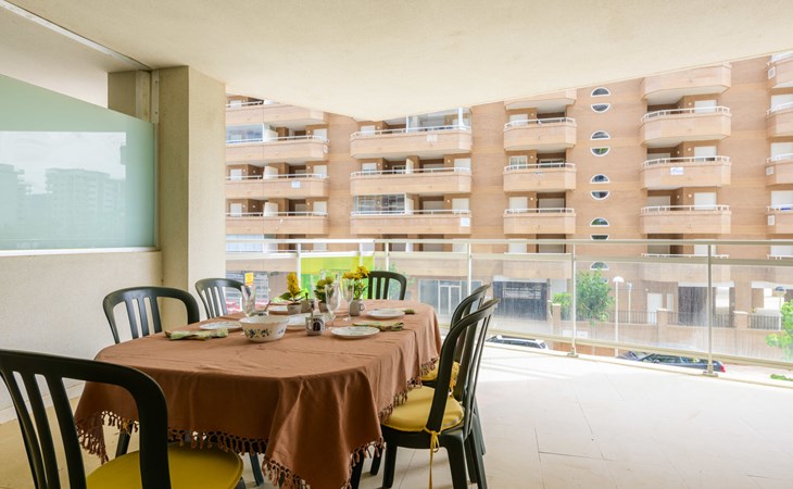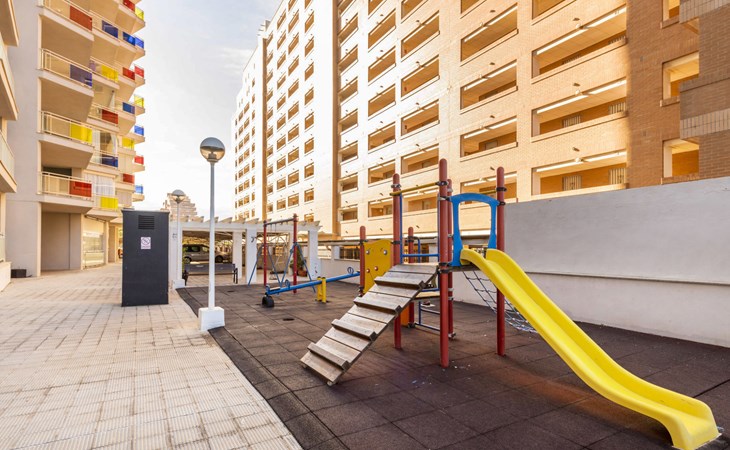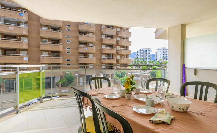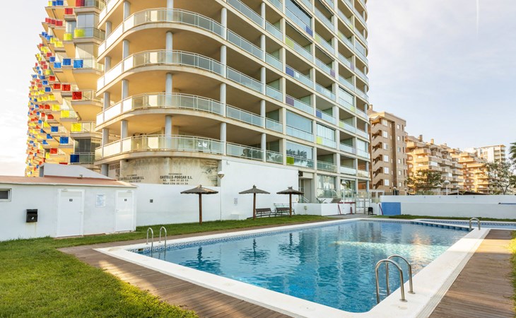 Marina d'Or: Comfortabele residentie "Mondrian". Zonnige ligging, 20 m van zee, 20 m van het strand, de straat oversteken. Voor medegebruik: tuin, openluchtzwembad hoekig (20 x 10 m, 70 - 270 cm diepte, seizoensgebonden beschikbaarheid: 15.Mei. - 15.Sep. openingstijden zwembad: 10:00-18:00 en 10:00-22:00). WC bij het zwembad, kinderspeelplaats. In het huis: lift. Overdekte parkeerplaats bij het huis. Parkeerplaats of garage alleen voor een kleine/middelgrote auto. Levensmiddelenwinkel 100 m, supermarkt 500 m, restaurant, bar, café, bushalte 100 m, treinstation 2.8 km. De omgeving is gevoelig voor geluidsoverlast. Gelieve geen lawaai te maken en de rust te bewaren.