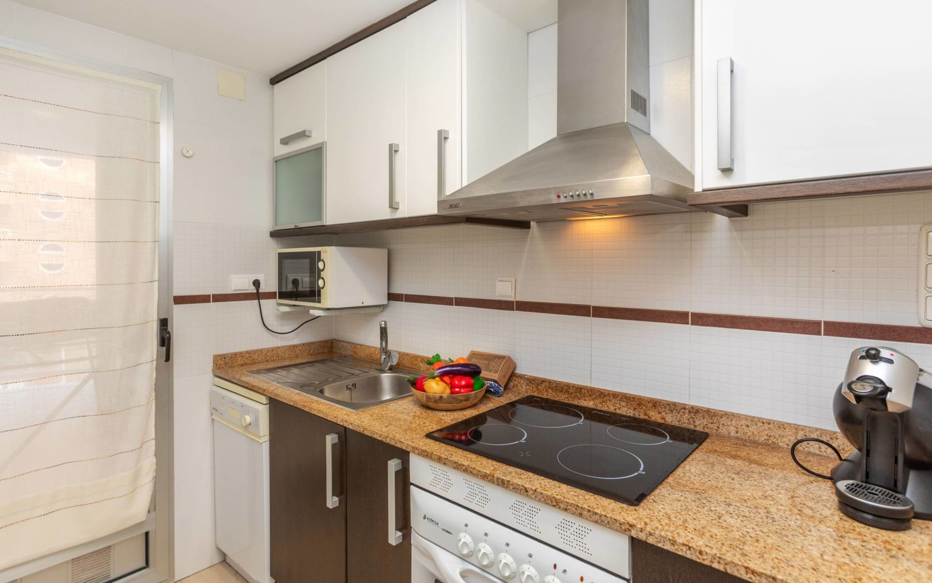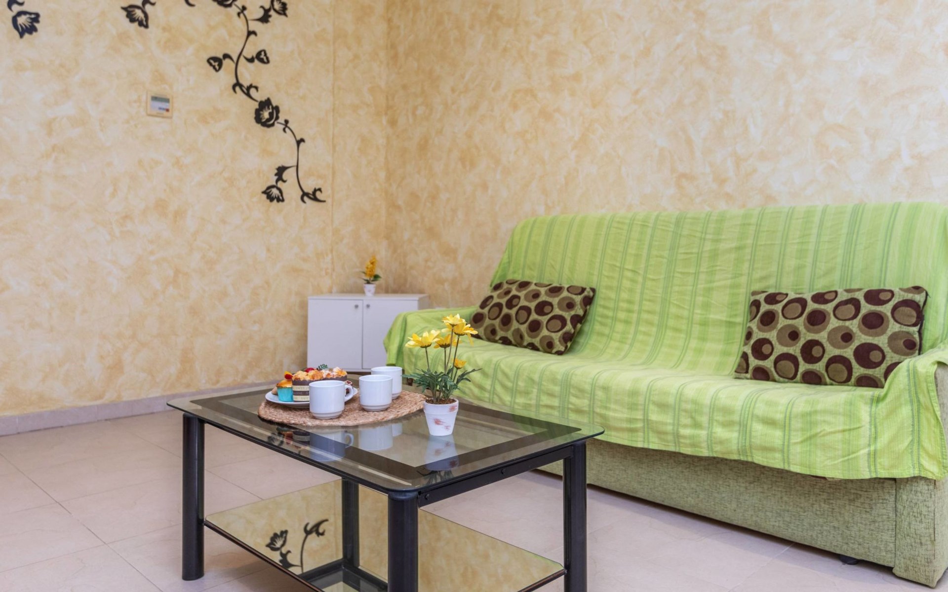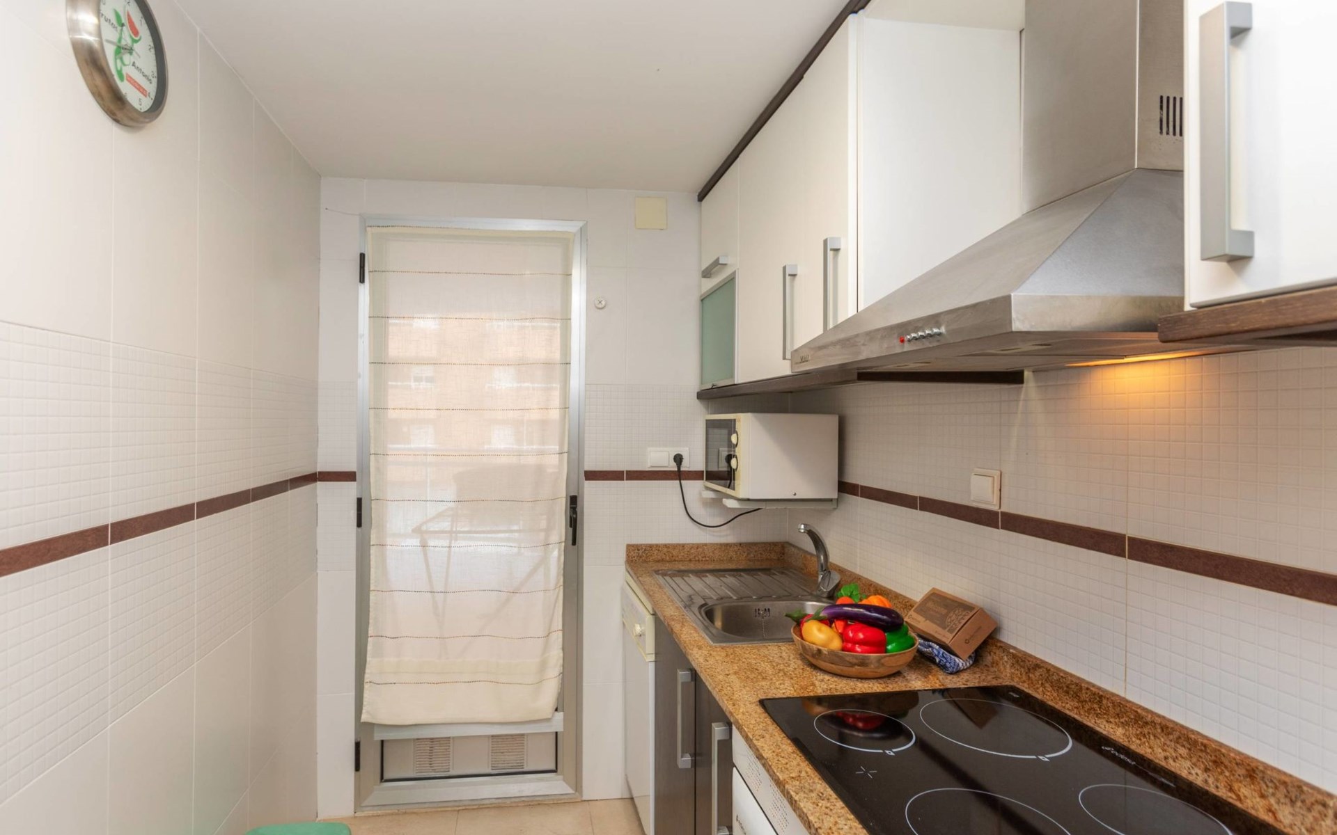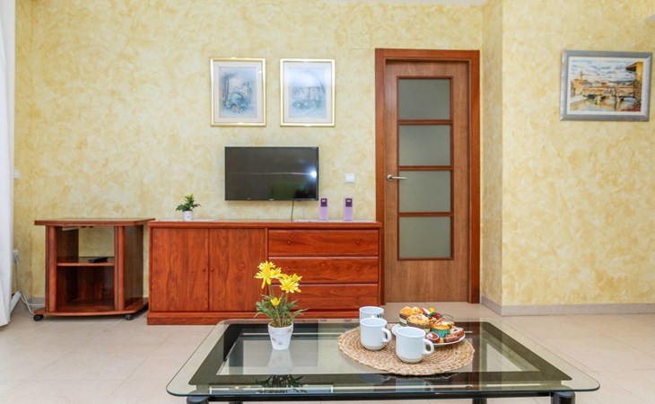 Marina d'Or: Comfortabele residentie "Mondrian". Zonnige ligging, 20 m van zee, 20 m van het strand, de straat oversteken. Voor medegebruik: tuin, openluchtzwembad hoekig (20 x 10 m, 70 - 270 cm diepte, seizoensgebonden beschikbaarheid: 15.Mei. - 15.Sep. openingstijden zwembad: 10:00-18:00 en 10:00-22:00). WC bij het zwembad, kinderspeelplaats. In het huis: lift. Overdekte parkeerplaats bij het huis. Parkeerplaats of garage alleen voor een kleine/middelgrote auto. Levensmiddelenwinkel 100 m, supermarkt 500 m, restaurant, bar, café, bushalte 100 m, treinstation 2.8 km. De omgeving is gevoelig voor geluidsoverlast. Gelieve geen lawaai te maken en de rust te bewaren.