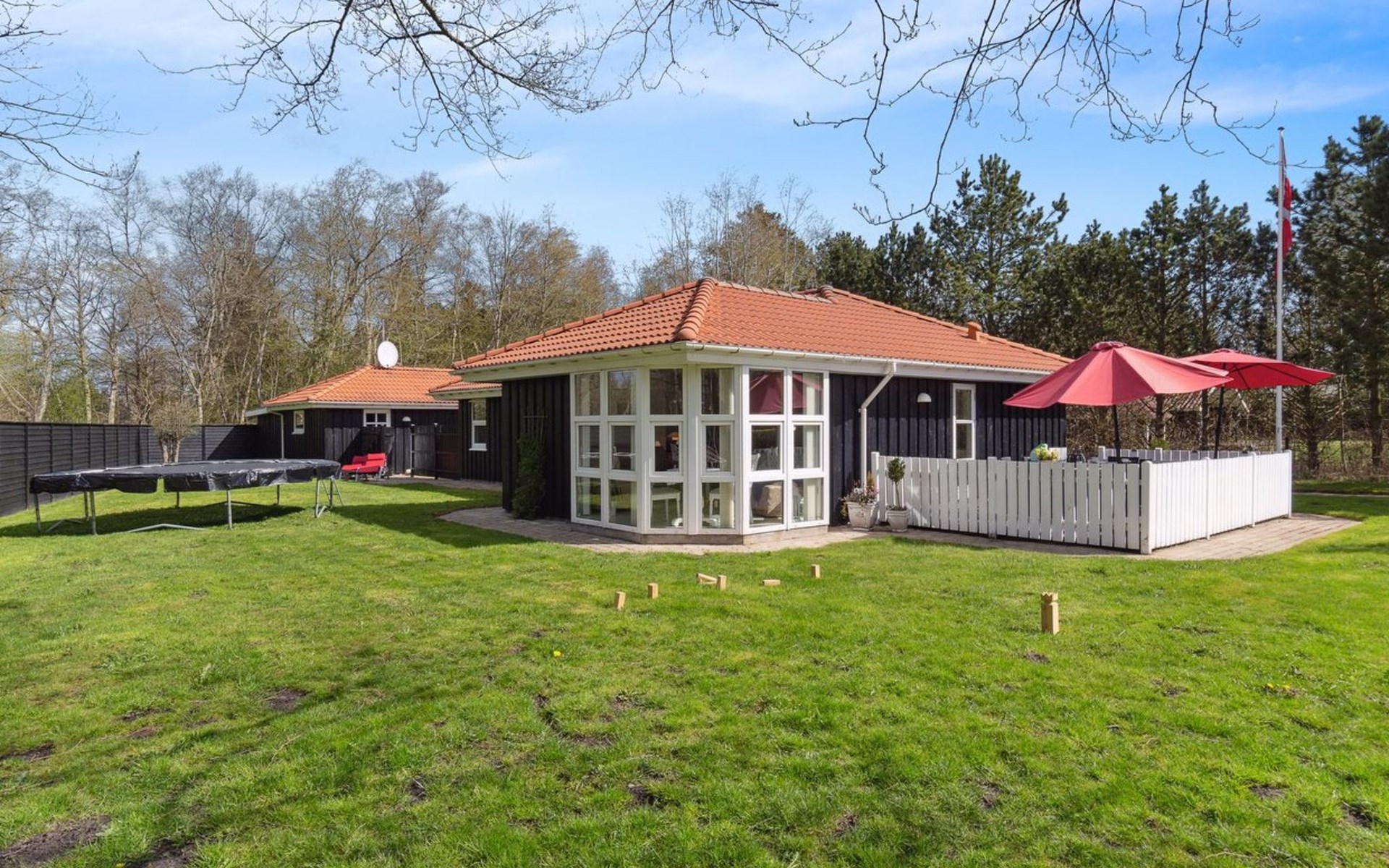 Eengezinswoning, bouwjaar 1999. 500 m van zee. Voor medegebruik: tuin. Voor alleengebruik: terrein 1.100 m2, verzorgde tuin (omheind). Terras (70 m2), barbecue, kinderspeelplaats (glijbaan, schommel). In het huis: wasmachine, droger. Parkeerplaats bij het huis. Oplaadstation. Levensmiddelenwinkel 200 m. De eigenaar accepteert geen jeugdgroepen.