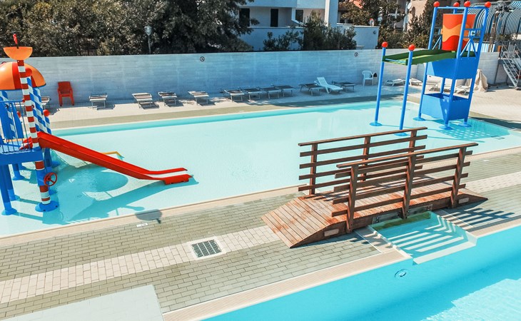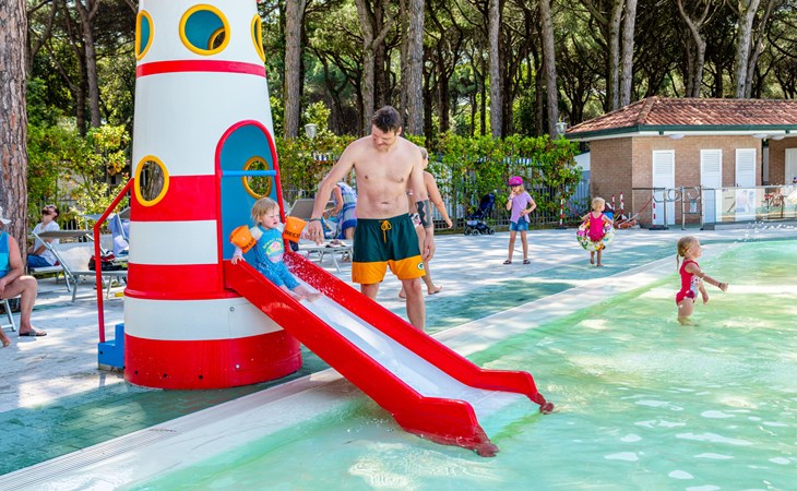 Lidi Ferraresi: Groot, kindvriendelijk vakantiecomplex "Mare e Pineta", omgeven door bomen. 500 m van het centrum van Lido di Spina, 1 km van het centrum van Lido degli Estensi, 500 m van zee, 500 m van het strand, te midden van groen. Voor medegebruik: wild terrein 16 ha met planten en bomen, openluchtzwembad (25 x 12 m, 140 cm diepte, seizoensgebonden beschikbaarheid: 16.Mei. - 20.Sep.). Kinderzwembad, glijbaan, buitendouche, hot tub, basketbal, jeu de boules, beachvolleybal. In het complex: receptie, restaurant, bar, Internet (WiFi), sauna (extra). Fitnessruimte (extra). Winkel, kiosk, wasmachine, droger (voor medegebruik, extra), fietsverhuur. Parkeerplaats (beperkt aantal). Oplaadstation. Bushalte 300 m, treinstation "Ravenna" 30 km, park "Parco del Delta del Po" 46 km. Attracties in de buurt: Comacchio 10 km, Abbazia di Pomposa 30 km, Ravenna 31 km, Mirabilandia 46 km, Ferrara 60 km. Animatie in het hoogseizoen. Geschikt voor families.