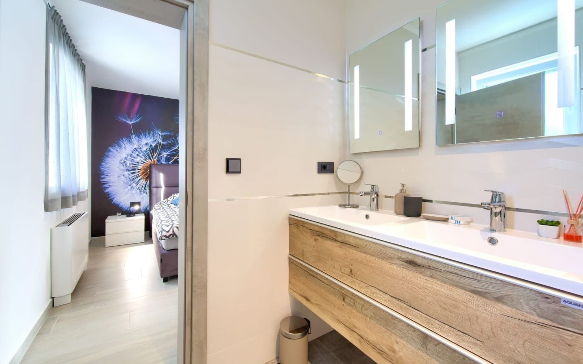 Discover the charm of Villa Valle, nestled in the picturesque town of Kremenići, just a short stroll from the crystal-clear waters of the Kvarner Bay. This inviting holiday house, perfectly suited for up to 10 guests, offers a serene escape combining the comfort of a home with the bliss of a seaside retreat. Whether you're looking to spend quality time with family or to create unforgettable memories with friends, Villa Valle promises a stay filled with relaxation and leisure.Inside, Villa Valle is equipped with all the amenities you could need for a comfortable stay. With 4 spacious bedrooms, each paired with its own bathroom, privacy and convenience are guaranteed for all guests. Whether it's a refreshing shower after a day at the beach or a leisurely soak in the bathtub, the choice is yours. The house's thoughtful amenities, including air conditioning throughout, a clothes dryer, coffee machine, dishwasher, and electric kettle, ensure a hassle-free vacation from start to finish.Step outside to discover the villa's enchanting outdoor space, designed for exclusive use by you and your guests. The garden, a tranquil haven for relaxation, leads to a private, heated pool that invites you to bask in the sun or enjoy invigorating swims. The terrace and balcony provide ideal spots for al fresco dining or simply savoring a moment of peace amidst the beauty of Kremenići. Here, every outdoor moment is a pleasure, whether it’s a morning coffee in solitude or an evening gathering under the stars.Villa Valle's prime location enables easy access to the surrounding beauty and attractions of Kremenići. Just 900 meters away, the beach beckons for days filled with sunbathing, swimming, and seaside adventures. For those who love to explore, the sea's inviting embrace offers endless possibilities. Essential services such as a grocery store are conveniently located within 1000 meters, ensuring everything you need is within easy reach. Immerse yourself in the local charm of Kremenići, from leisurely walks along the coast to discovering the culinary delights and cultural treasures of the Kvarner Bay.Villa Valle is more than just a holiday house; it's a gateway to a tranquil and luxurious getaway in the heart of Kremenići. Ideal for families and groups, this villa ensures a comfortable, enjoyable, and memorable stay. Experience the joy of the Kvarner Bay's serene splendor, where every day brings a new opportunity to relax, explore, and indulge in the beauty of Croatia. Villa Valle awaits to be the backdrop for your next unforgettable holiday.