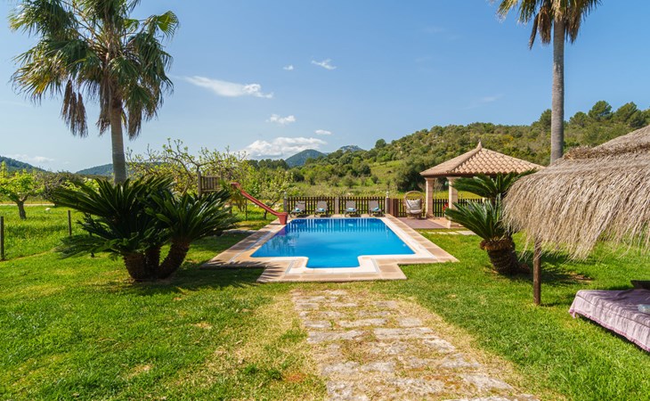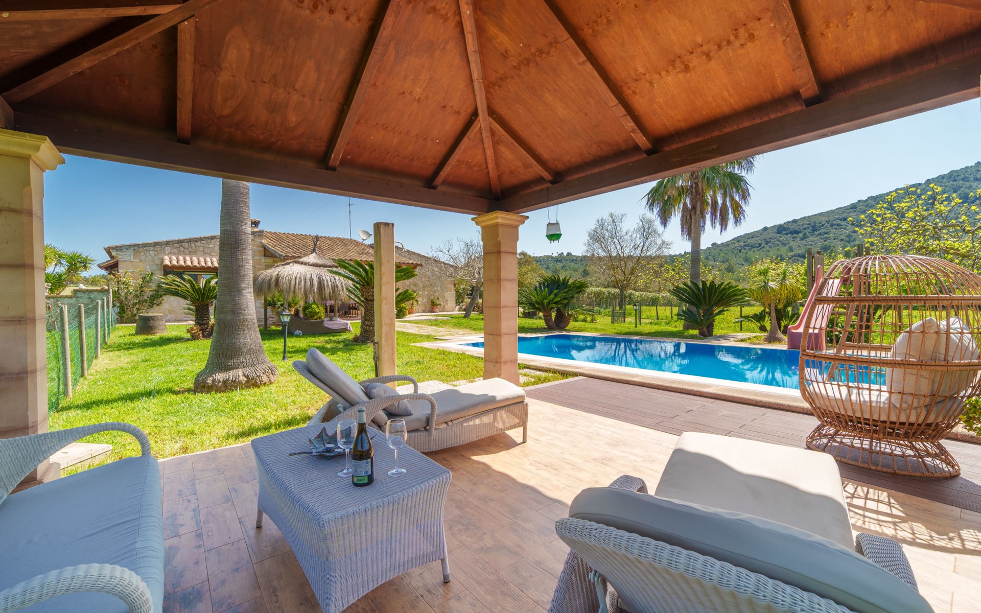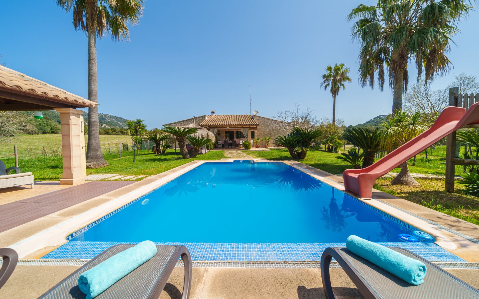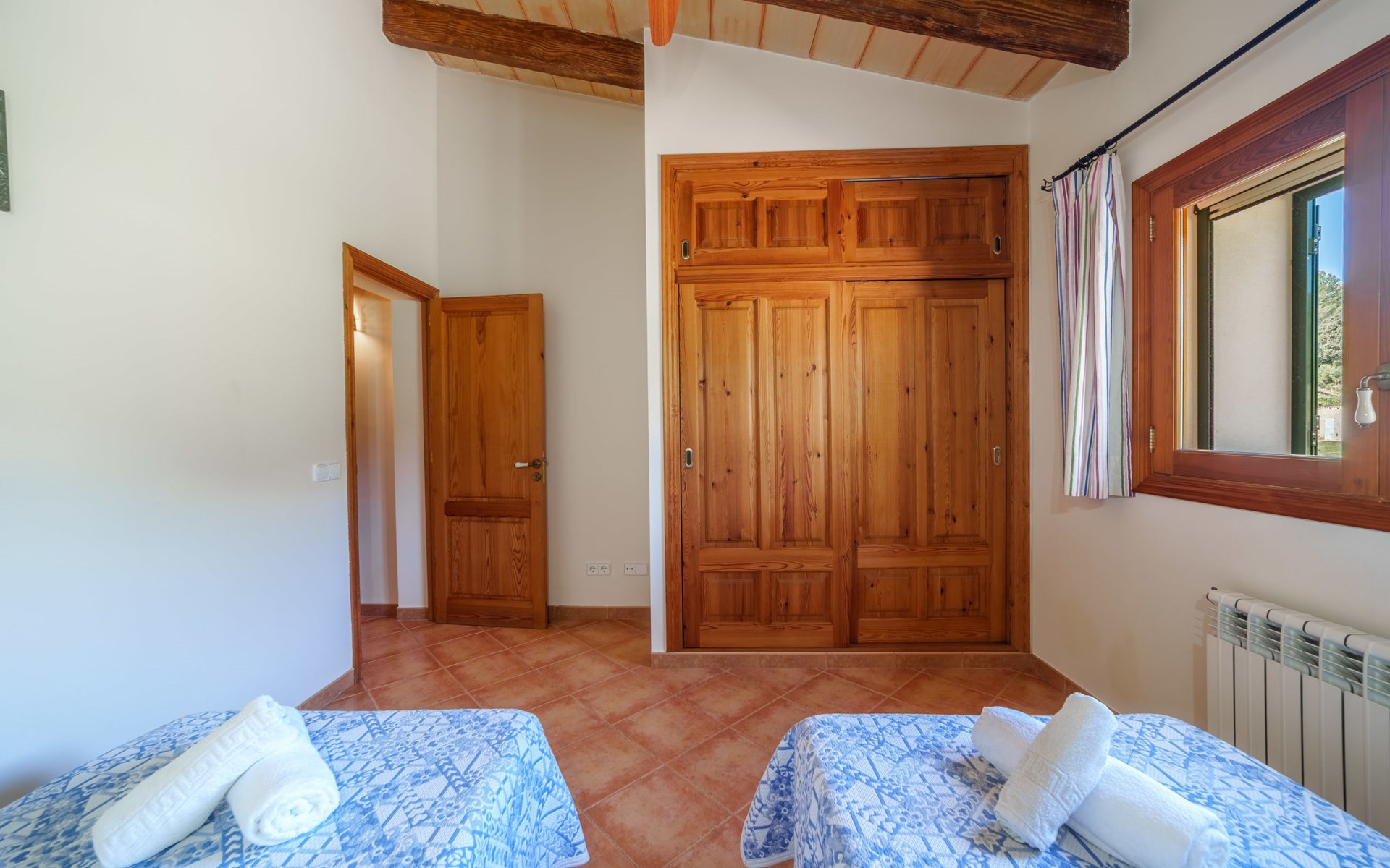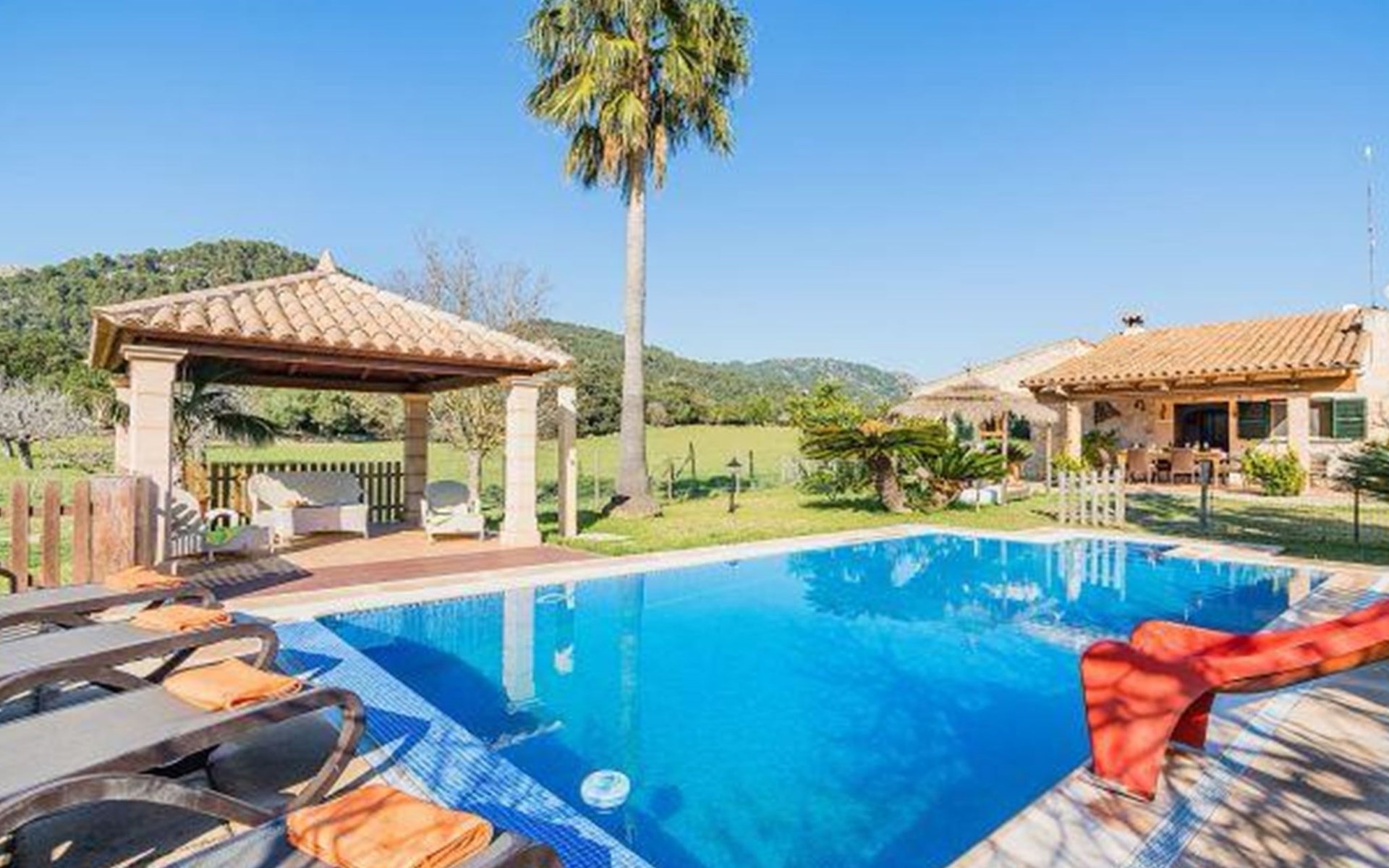 Groot, zeer mooi landgoed "Paratge de Fangar", gerenoveerd, omgeven door velden en wijngaarden. Buiten de plaats, 6.1 km van het centrum van Campanet, rustige, zonnige ligging, gebied met weinig verkeer, 18 km van zee, te midden van groen. Voor alleengebruik: wild terrein (omheind), tuin met gazon en bomen, openluchtzwembad hoekig (8 x 4 m, 50 - 200 cm diepte, seizoensgebonden beschikbaarheid: 01.Jan. - 31.Dec.). Buitendouche, patio, prieel, prieel, tuinmeubelen, barbecue, onderhoud zwembad door de eigenaar/tuinman. In het huis: internetaansluiting, Internet (WiFi), centrale verwarming. Parkeerplaats bij het huis op het terrein. Levensmiddelenwinkel 5.3 km, supermarkt 10 km, restaurant 6 km, bar 6 km, bakkerij 5.3 km, centrum te voet bereikbaar in 80 minuten, bushalte "Campanet 12002" 6.1 km, treinstation "Estación de Inca" 15 km, veerboot "Ferry Port Alcúdia", zandstrand "Port de Pollença" 14 km. Jachthaven 14 km, golfterrein (18 holes) 7.3 km. Attracties in de buurt: Moscari,Caimari,Selva,Campanet,Pollença, Ciudad de Inca 13 km, Santuari de Lluc 20 km, Port de Pollença - Port Alcúdia 15 km, Palma City 42 km, Mallorca Fashion Outlet & Cinemas 32.6 km. Wandelgebied Serra de Tramuntana, Santa Magdalena - Inca, Ses Fonts Ufanes, Campanet. Auto noodzakelijk. Geschikt voor senioren. Het objekt is geschikt voor 6 volwassenen. De eigenaar accepteert geen jeugdgroepen. Vliegveld 47 km van het huis.