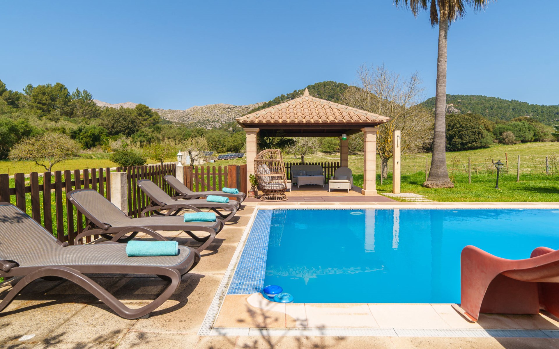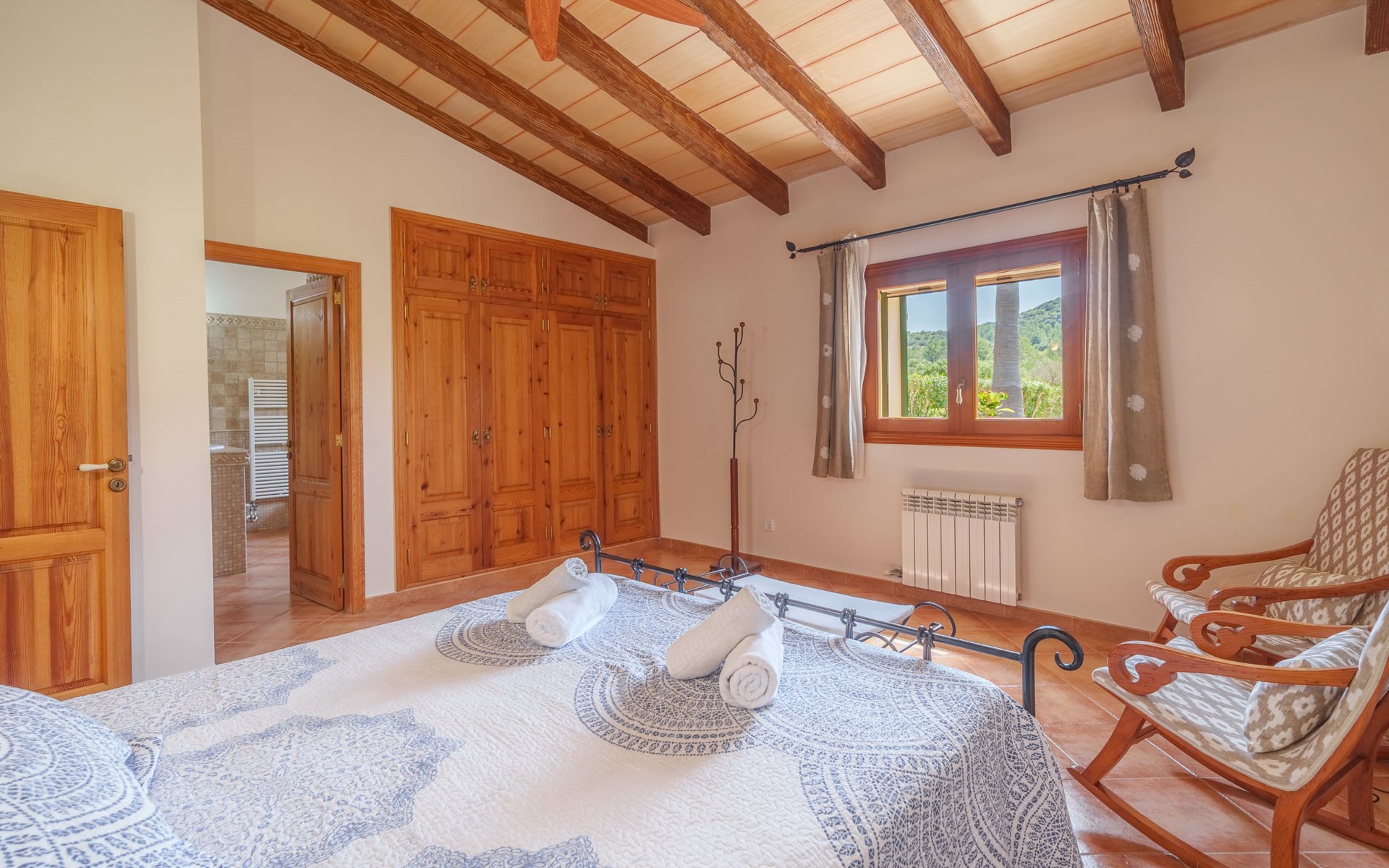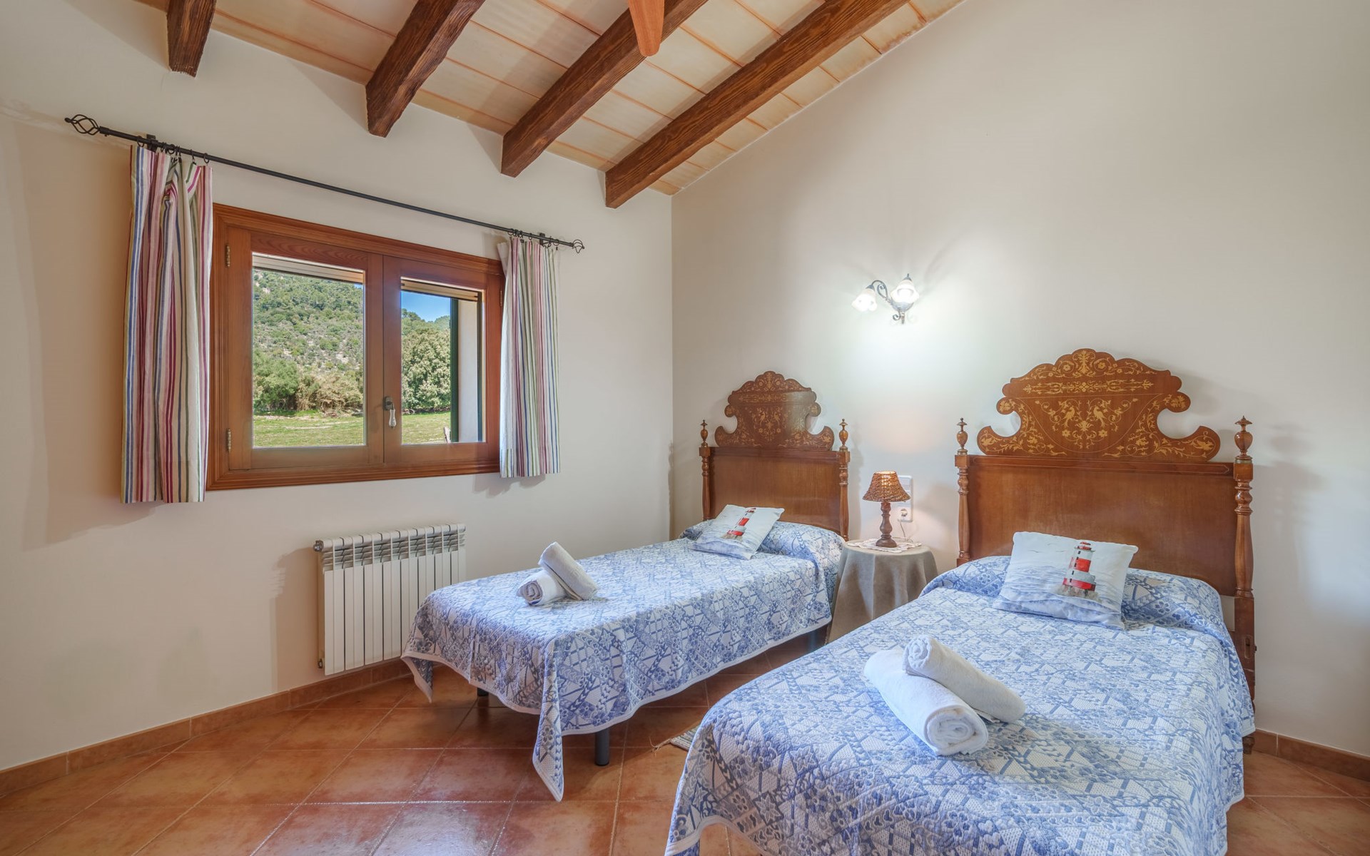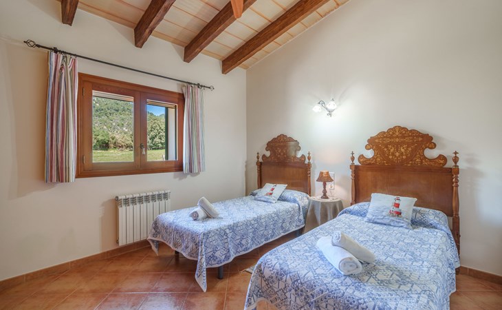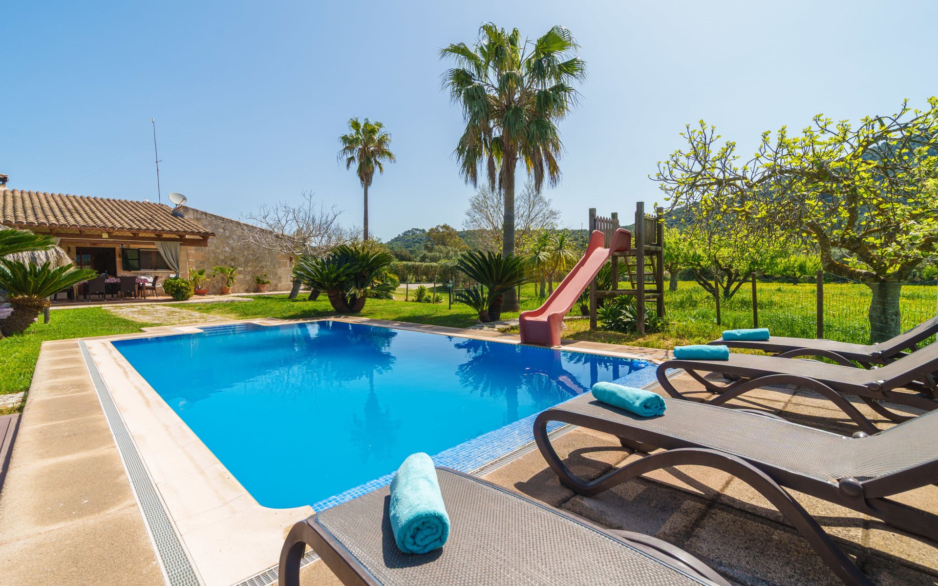 Groot, zeer mooi landgoed "Paratge de Fangar", gerenoveerd, omgeven door velden en wijngaarden. Buiten de plaats, 6.1 km van het centrum van Campanet, rustige, zonnige ligging, gebied met weinig verkeer, 18 km van zee, te midden van groen. Voor alleengebruik: wild terrein (omheind), tuin met gazon en bomen, openluchtzwembad hoekig (8 x 4 m, 50 - 200 cm diepte, seizoensgebonden beschikbaarheid: 01.Jan. - 31.Dec.). Buitendouche, patio, prieel, prieel, tuinmeubelen, barbecue, onderhoud zwembad door de eigenaar/tuinman. In het huis: internetaansluiting, Internet (WiFi), centrale verwarming. Parkeerplaats bij het huis op het terrein. Levensmiddelenwinkel 5.3 km, supermarkt 10 km, restaurant 6 km, bar 6 km, bakkerij 5.3 km, centrum te voet bereikbaar in 80 minuten, bushalte "Campanet 12002" 6.1 km, treinstation "Estación de Inca" 15 km, veerboot "Ferry Port Alcúdia", zandstrand "Port de Pollença" 14 km. Jachthaven 14 km, golfterrein (18 holes) 7.3 km. Attracties in de buurt: Moscari,Caimari,Selva,Campanet,Pollença, Ciudad de Inca 13 km, Santuari de Lluc 20 km, Port de Pollença - Port Alcúdia 15 km, Palma City 42 km, Mallorca Fashion Outlet & Cinemas 32.6 km. Wandelgebied Serra de Tramuntana, Santa Magdalena - Inca, Ses Fonts Ufanes, Campanet. Auto noodzakelijk. Geschikt voor senioren. Het objekt is geschikt voor 6 volwassenen. De eigenaar accepteert geen jeugdgroepen. Vliegveld 47 km van het huis.