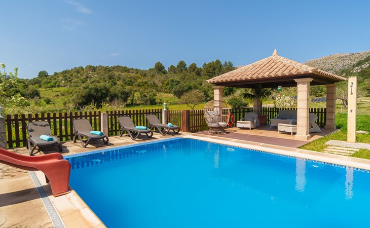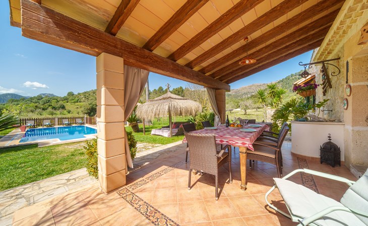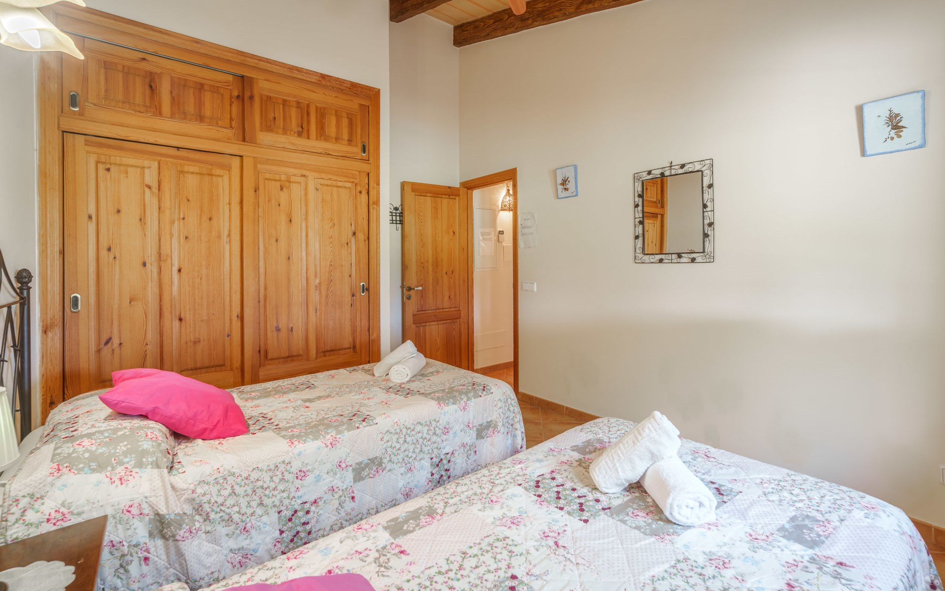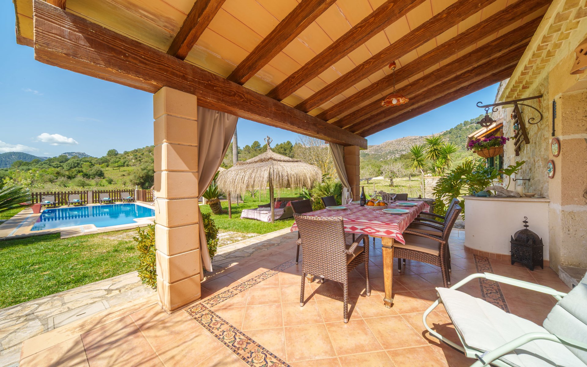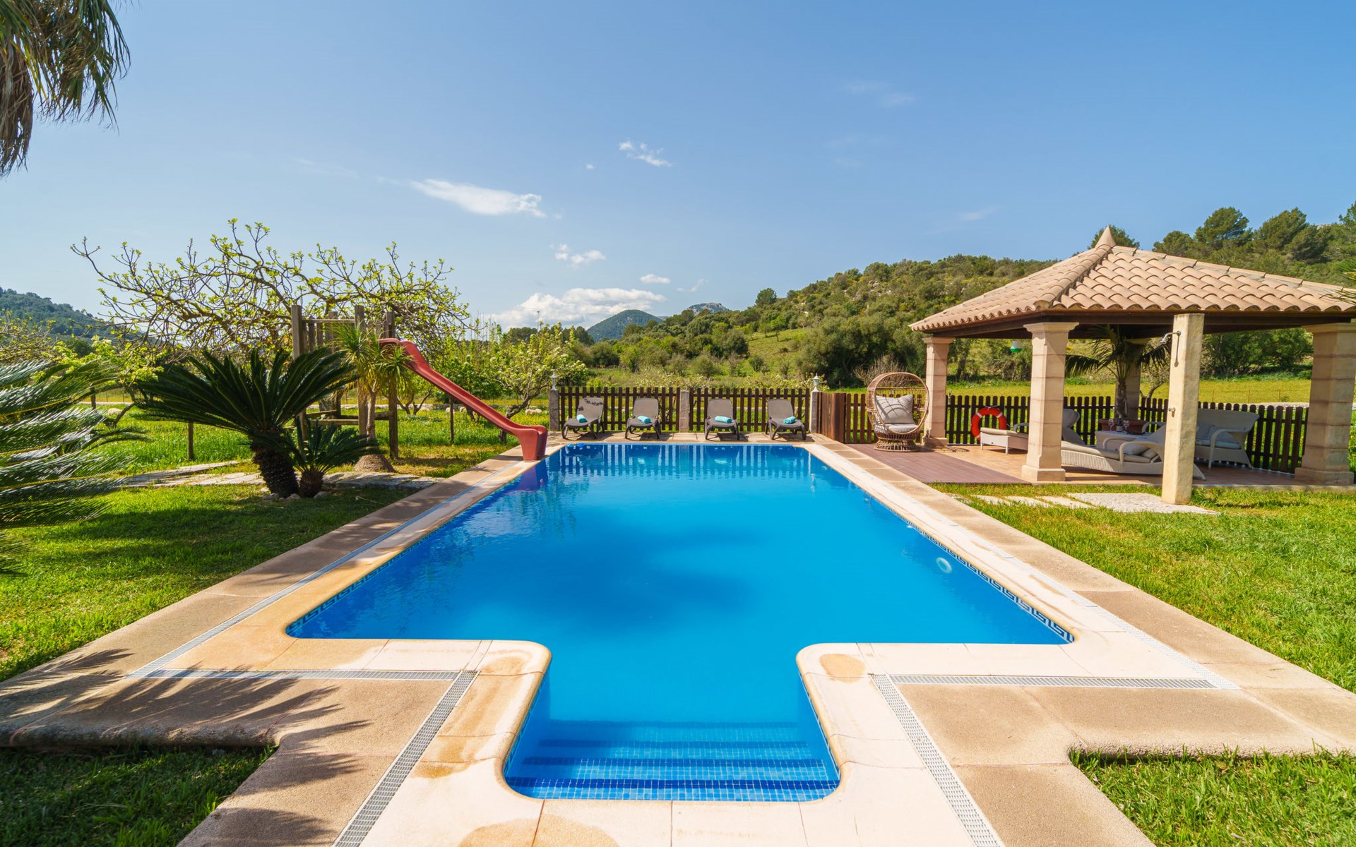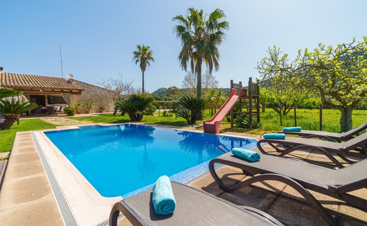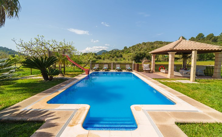 Groot, zeer mooi landgoed "Paratge de Fangar", gerenoveerd, omgeven door velden en wijngaarden. Buiten de plaats, 6.1 km van het centrum van Campanet, rustige, zonnige ligging, gebied met weinig verkeer, 18 km van zee, te midden van groen. Voor alleengebruik: wild terrein (omheind), tuin met gazon en bomen, openluchtzwembad hoekig (8 x 4 m, 50 - 200 cm diepte, seizoensgebonden beschikbaarheid: 01.Jan. - 31.Dec.). Buitendouche, patio, prieel, prieel, tuinmeubelen, barbecue, onderhoud zwembad door de eigenaar/tuinman. In het huis: internetaansluiting, Internet (WiFi), centrale verwarming. Parkeerplaats bij het huis op het terrein. Levensmiddelenwinkel 5.3 km, supermarkt 10 km, restaurant 6 km, bar 6 km, bakkerij 5.3 km, centrum te voet bereikbaar in 80 minuten, bushalte "Campanet 12002" 6.1 km, treinstation "Estación de Inca" 15 km, veerboot "Ferry Port Alcúdia", zandstrand "Port de Pollença" 14 km. Jachthaven 14 km, golfterrein (18 holes) 7.3 km. Attracties in de buurt: Moscari,Caimari,Selva,Campanet,Pollença, Ciudad de Inca 13 km, Santuari de Lluc 20 km, Port de Pollença - Port Alcúdia 15 km, Palma City 42 km, Mallorca Fashion Outlet & Cinemas 32.6 km. Wandelgebied Serra de Tramuntana, Santa Magdalena - Inca, Ses Fonts Ufanes, Campanet. Auto noodzakelijk. Geschikt voor senioren. Het objekt is geschikt voor 6 volwassenen. De eigenaar accepteert geen jeugdgroepen. Vliegveld 47 km van het huis.