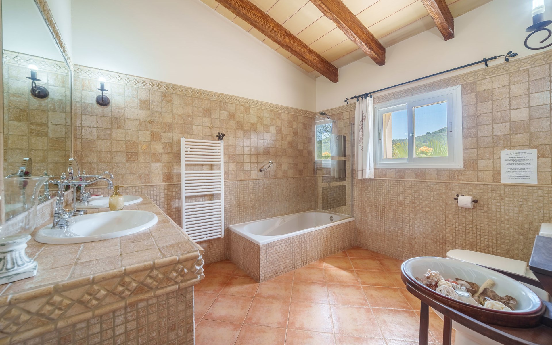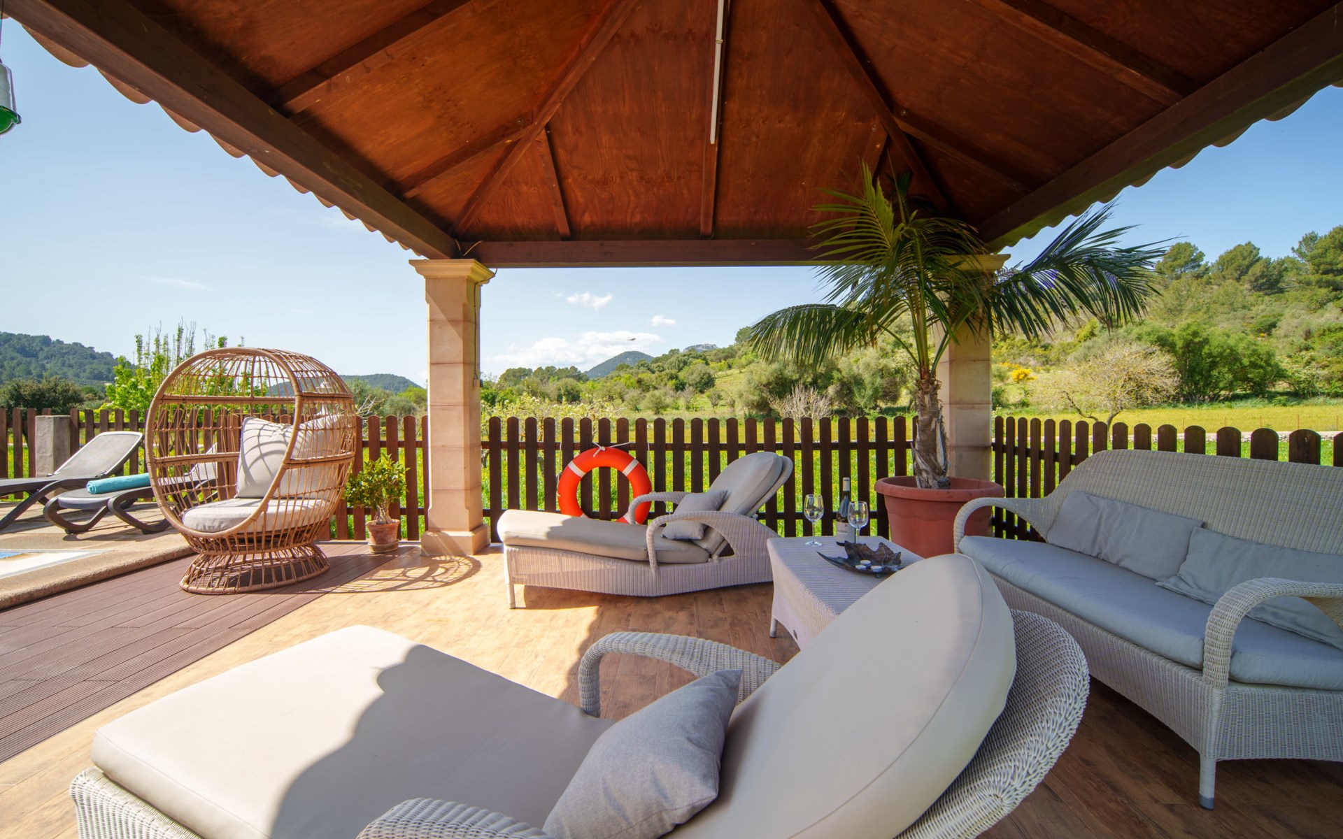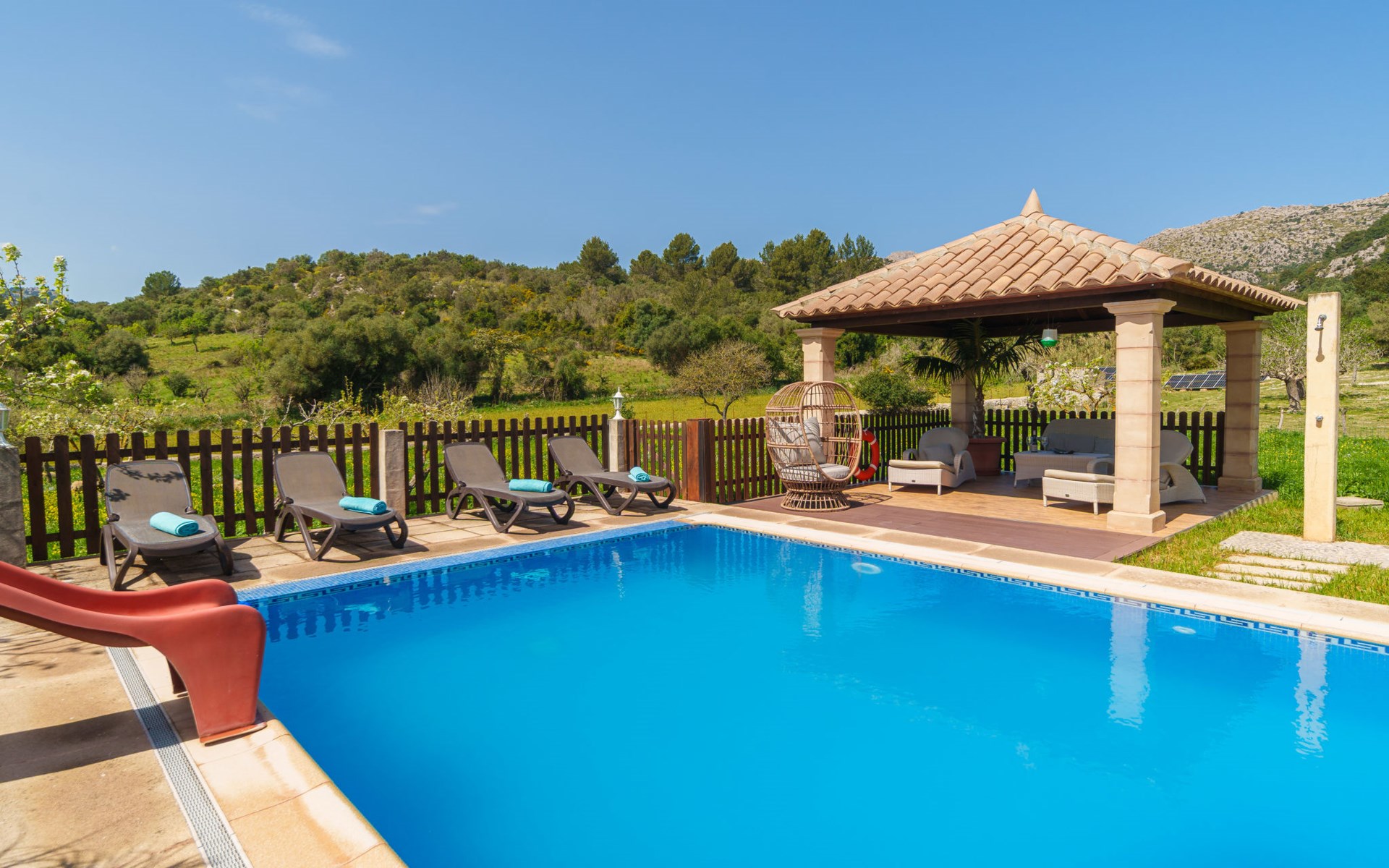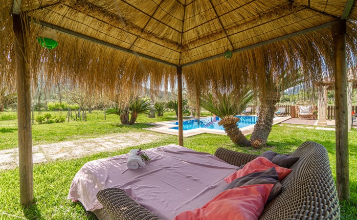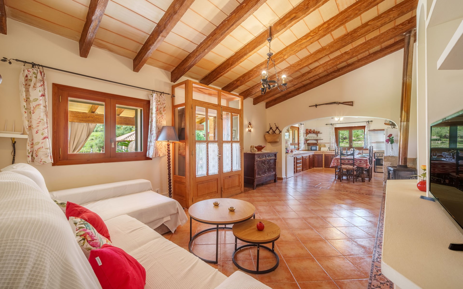 Groot, zeer mooi landgoed "Paratge de Fangar", gerenoveerd, omgeven door velden en wijngaarden. Buiten de plaats, 6.1 km van het centrum van Campanet, rustige, zonnige ligging, gebied met weinig verkeer, 18 km van zee, te midden van groen. Voor alleengebruik: wild terrein (omheind), tuin met gazon en bomen, openluchtzwembad hoekig (8 x 4 m, 50 - 200 cm diepte, seizoensgebonden beschikbaarheid: 01.Jan. - 31.Dec.). Buitendouche, patio, prieel, prieel, tuinmeubelen, barbecue, onderhoud zwembad door de eigenaar/tuinman. In het huis: internetaansluiting, Internet (WiFi), centrale verwarming. Parkeerplaats bij het huis op het terrein. Levensmiddelenwinkel 5.3 km, supermarkt 10 km, restaurant 6 km, bar 6 km, bakkerij 5.3 km, centrum te voet bereikbaar in 80 minuten, bushalte "Campanet 12002" 6.1 km, treinstation "Estación de Inca" 15 km, veerboot "Ferry Port Alcúdia", zandstrand "Port de Pollença" 14 km. Jachthaven 14 km, golfterrein (18 holes) 7.3 km. Attracties in de buurt: Moscari,Caimari,Selva,Campanet,Pollença, Ciudad de Inca 13 km, Santuari de Lluc 20 km, Port de Pollença - Port Alcúdia 15 km, Palma City 42 km, Mallorca Fashion Outlet & Cinemas 32.6 km. Wandelgebied Serra de Tramuntana, Santa Magdalena - Inca, Ses Fonts Ufanes, Campanet. Auto noodzakelijk. Geschikt voor senioren. Het objekt is geschikt voor 6 volwassenen. De eigenaar accepteert geen jeugdgroepen. Vliegveld 47 km van het huis.