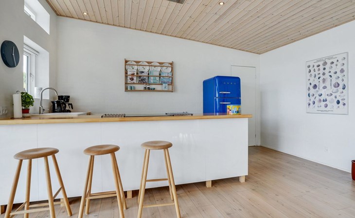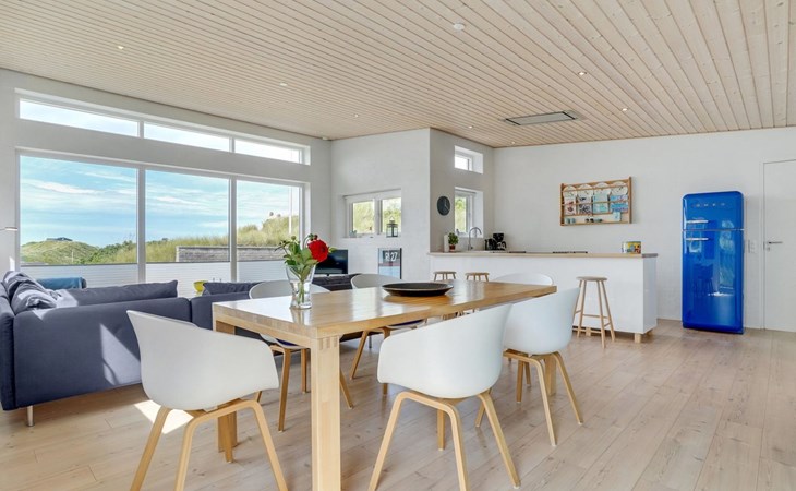 Eengezinswoning, bouwjaar 2013. 400 m van zee. Voor alleengebruik: wild terrein 1.222 m2. Terras (100 m2), barbecue. In het huis: sauna, wasmachine, droger. Parkeerplaats bij het huis. Levensmiddelenwinkel 500 m. Golfterrein 1.7 km. De eigenaar accepteert geen jeugdgroepen.
