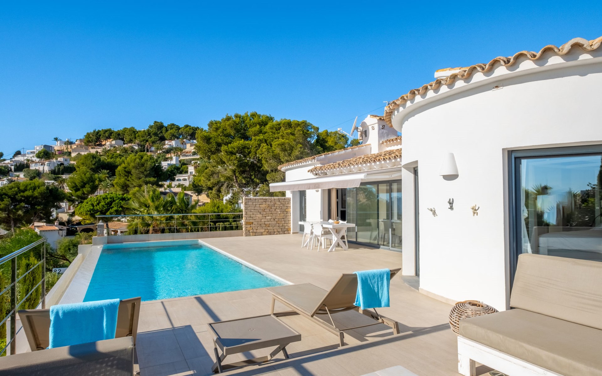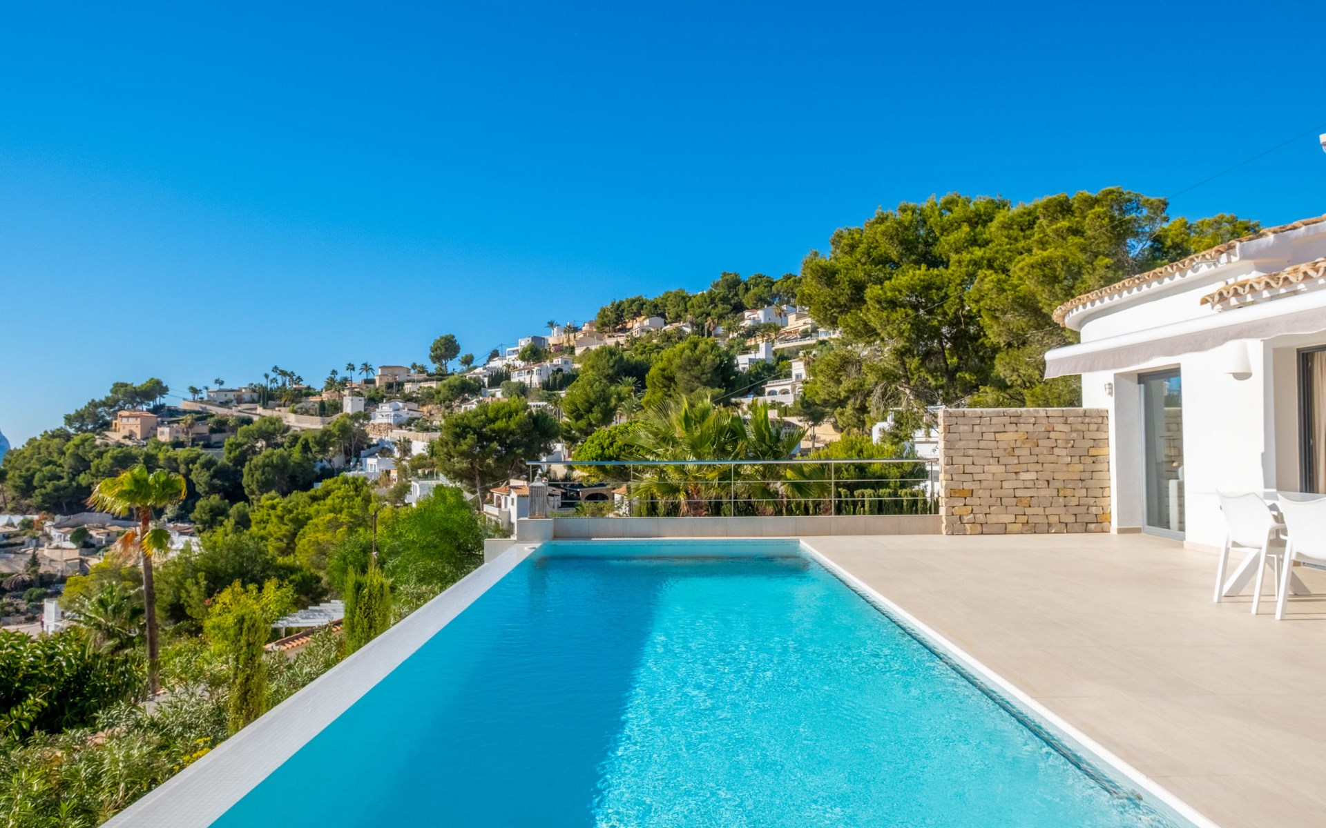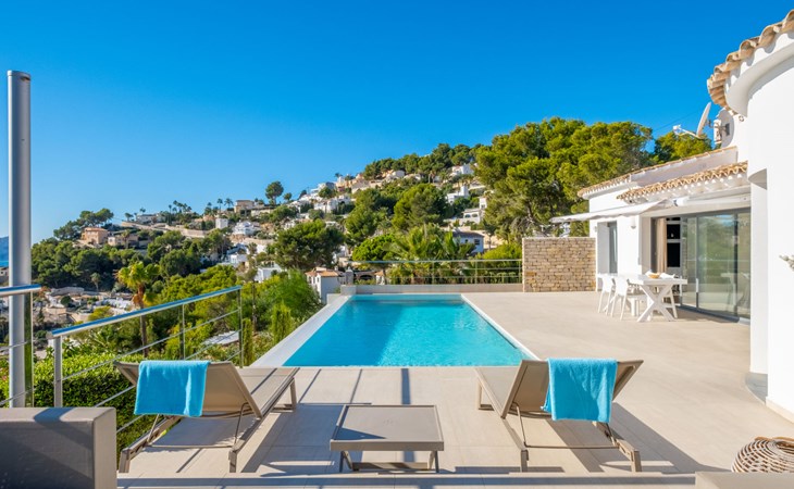 Mooi villa "Casawaouw", van 2 verdiepingen. 3 km van het centrum van Moraira, 13 km van het centrum van Calpe, zonnige ligging villa wijk, gebied met weinig verkeer, 3 km van zee, 300 km van het strand. Voor alleengebruik: terrein 896 m2 (omheind), mooie, verzorgde tuin, openluchtzwembad (8 x 4 m, 120 - 190 cm diepte, seizoensgebonden beschikbaarheid: 01.Jan. - 31.Dec.). Terras, tuinmeubelen. Levensmiddelenwinkel 3 km, supermarkt 3 km, restaurant 2 km, bushalte "Moraira" 3.7 km, station "Teulada" 4.3 km, veerboot "Denia" 30.3 km, zandstrand "Playa de la Ampolla" 3 km. Jachthaven 4 km, jachthaven 4 km, golfterrein (18 holes) 3 km. Attracties in de buurt: Aqualandia, Mundomar, Terra MÃtica, Terra Natura, Benidorm Palace (Benidorm), Les Fonts de l'Algar, Castillo de Guadalest. De eigenaar accepteert geen jeugdgroepen.