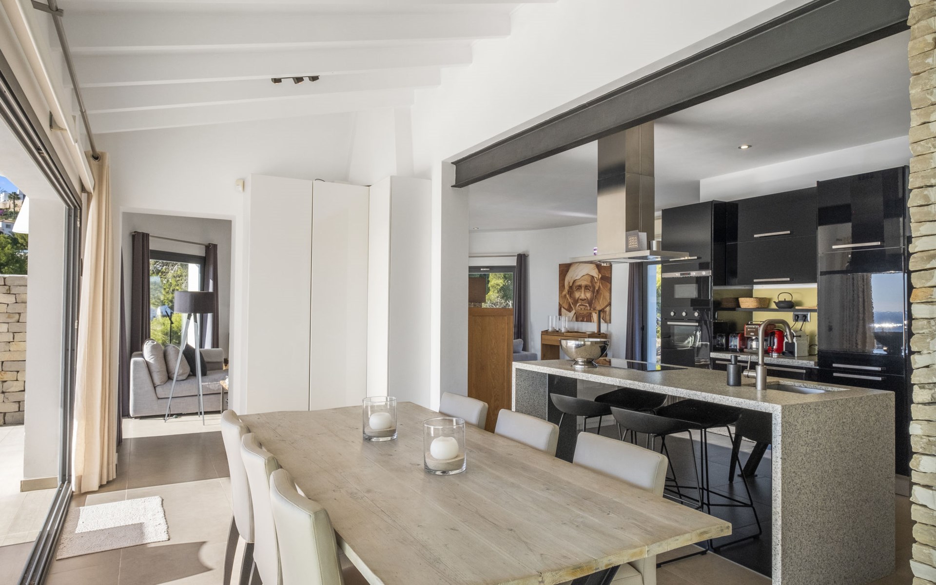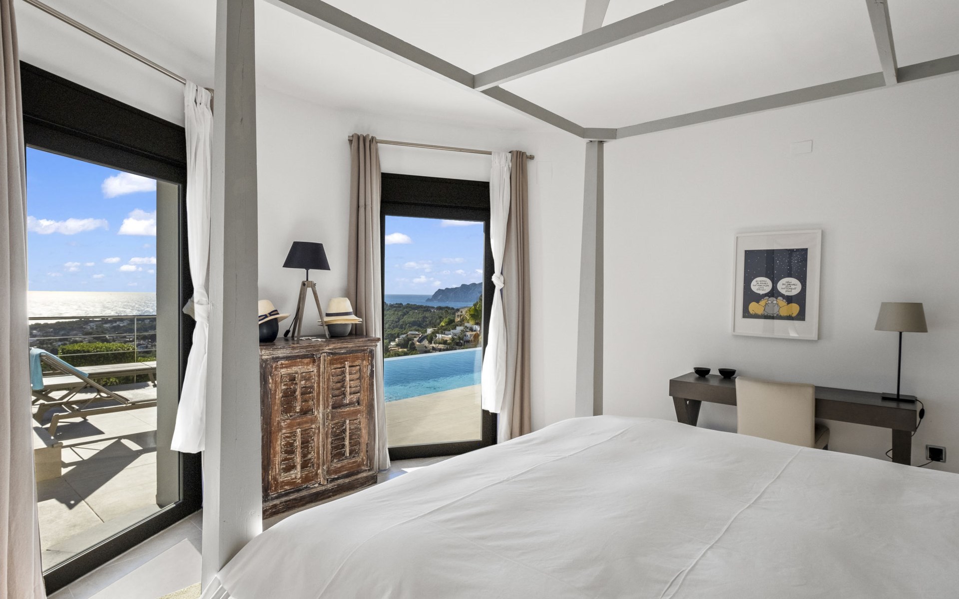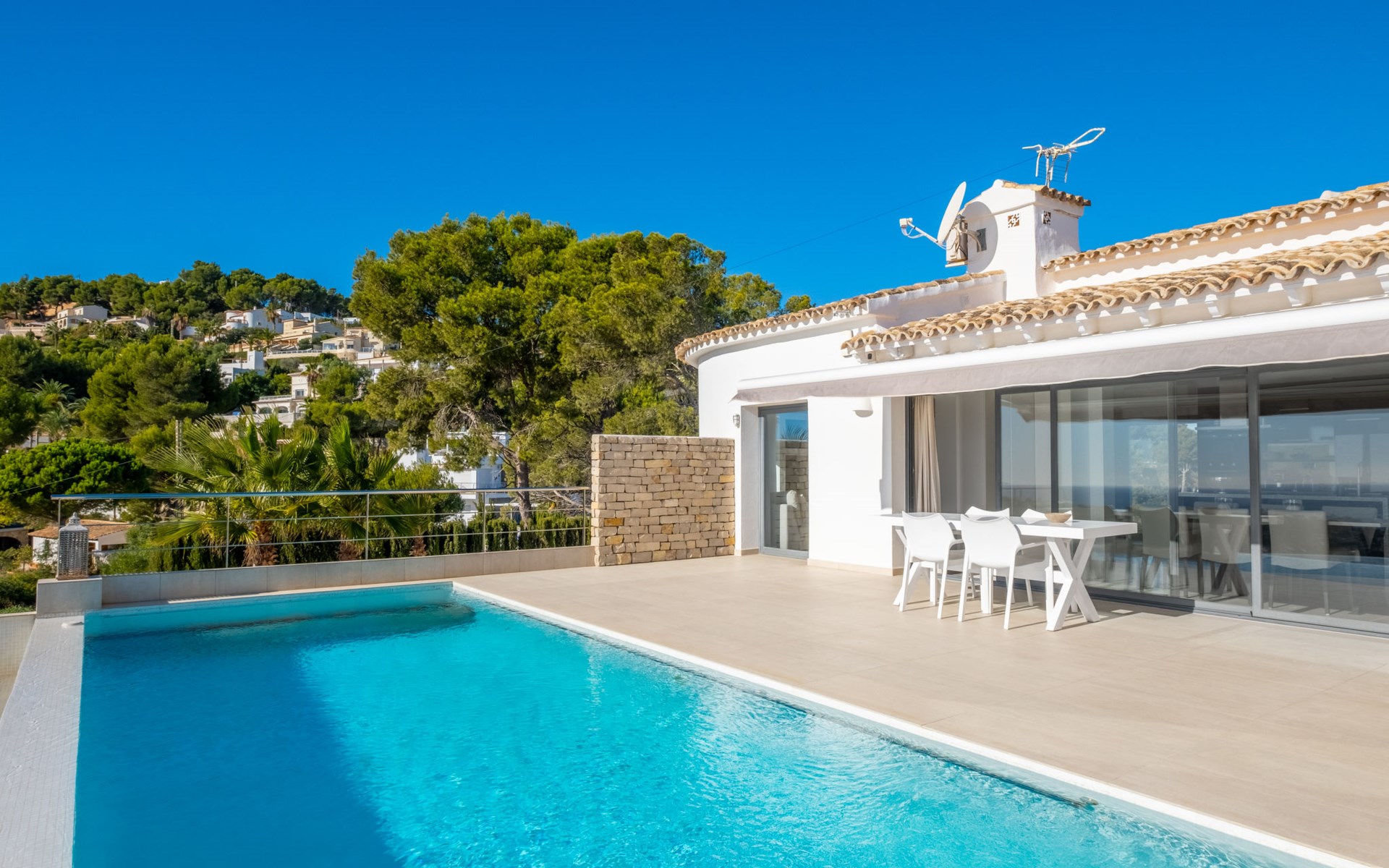 Mooi villa "Casawaouw", van 2 verdiepingen. 3 km van het centrum van Moraira, 13 km van het centrum van Calpe, zonnige ligging villa wijk, gebied met weinig verkeer, 3 km van zee, 300 km van het strand. Voor alleengebruik: terrein 896 m2 (omheind), mooie, verzorgde tuin, openluchtzwembad (8 x 4 m, 120 - 190 cm diepte, seizoensgebonden beschikbaarheid: 01.Jan. - 31.Dec.). Terras, tuinmeubelen. Levensmiddelenwinkel 3 km, supermarkt 3 km, restaurant 2 km, bushalte "Moraira" 3.7 km, station "Teulada" 4.3 km, veerboot "Denia" 30.3 km, zandstrand "Playa de la Ampolla" 3 km. Jachthaven 4 km, jachthaven 4 km, golfterrein (18 holes) 3 km. Attracties in de buurt: Aqualandia, Mundomar, Terra MÃtica, Terra Natura, Benidorm Palace (Benidorm), Les Fonts de l'Algar, Castillo de Guadalest. De eigenaar accepteert geen jeugdgroepen.