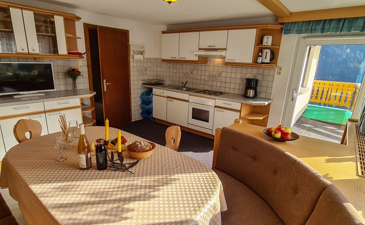 Huis met 3 woningen "Alpenliebe", 1.400 m boven zeeniveau. In de wijk Klasen, 3 km van het centrum van Kappl, 10 km van het centrum van Ischgl, 20 km van het centrum van Landeck, tegen een helling. In het huis: centrale verwarming, wasmachine (extra), skischoendroger. Broodjesservice. 3 km lange smalle toegangsweg. In de winter sneeuwkettingen aanbevolen. Parkeerplaats (extra) op het terrein. Winkel 3 km, bushalte "Kappl Perpat" 400 m, treinstation "Landeck-Zams Bahnhof" 23.3 km. Skilift 3.5 km, kabelbaan op 3.5 km, skibushalte 20 m.