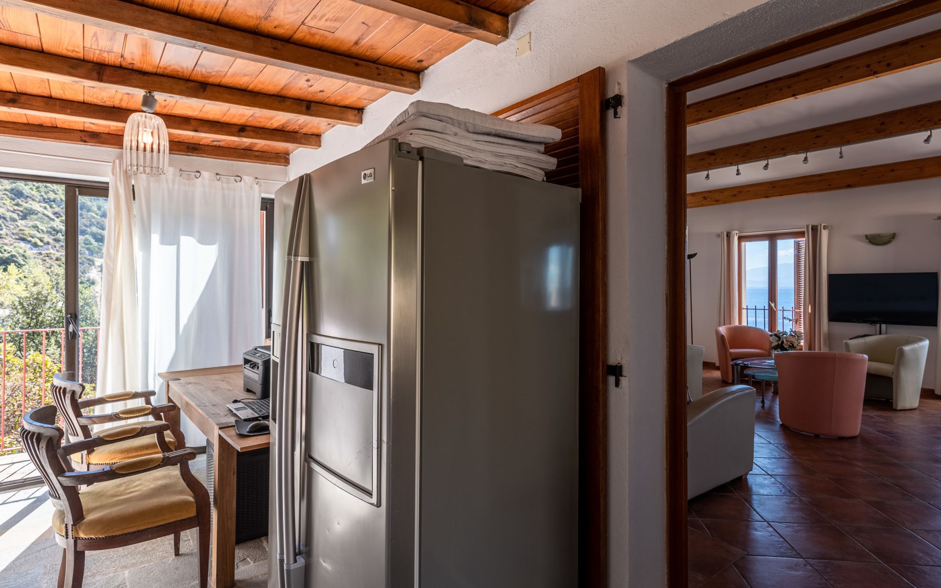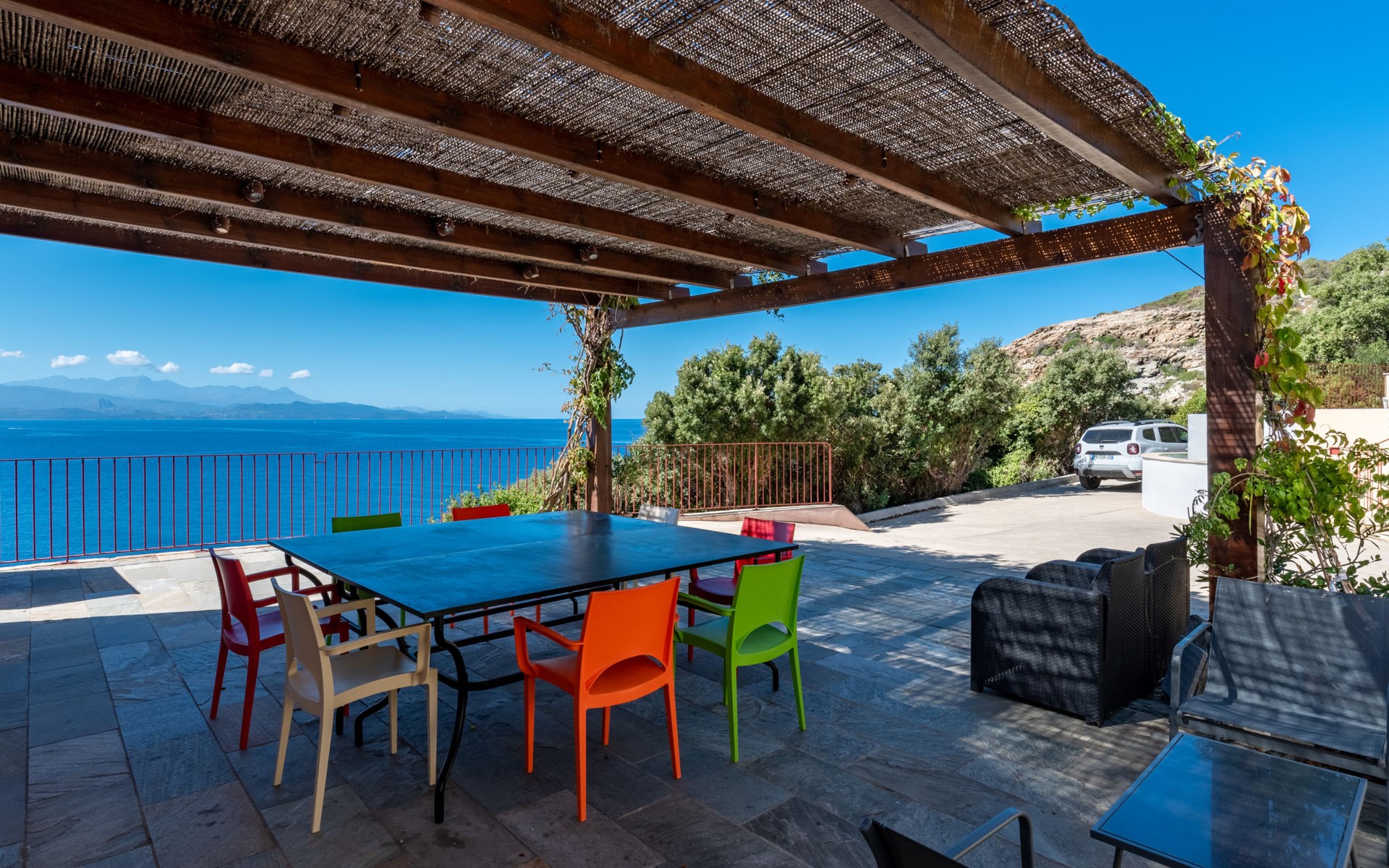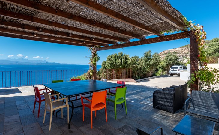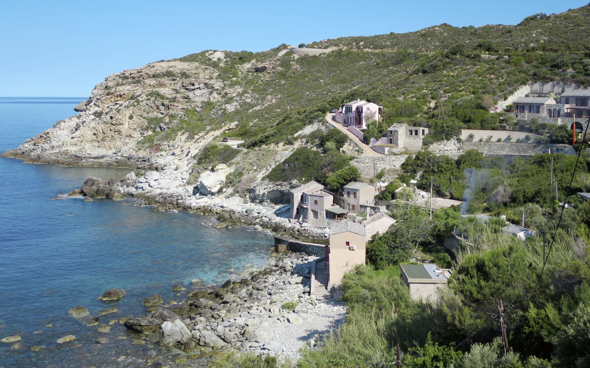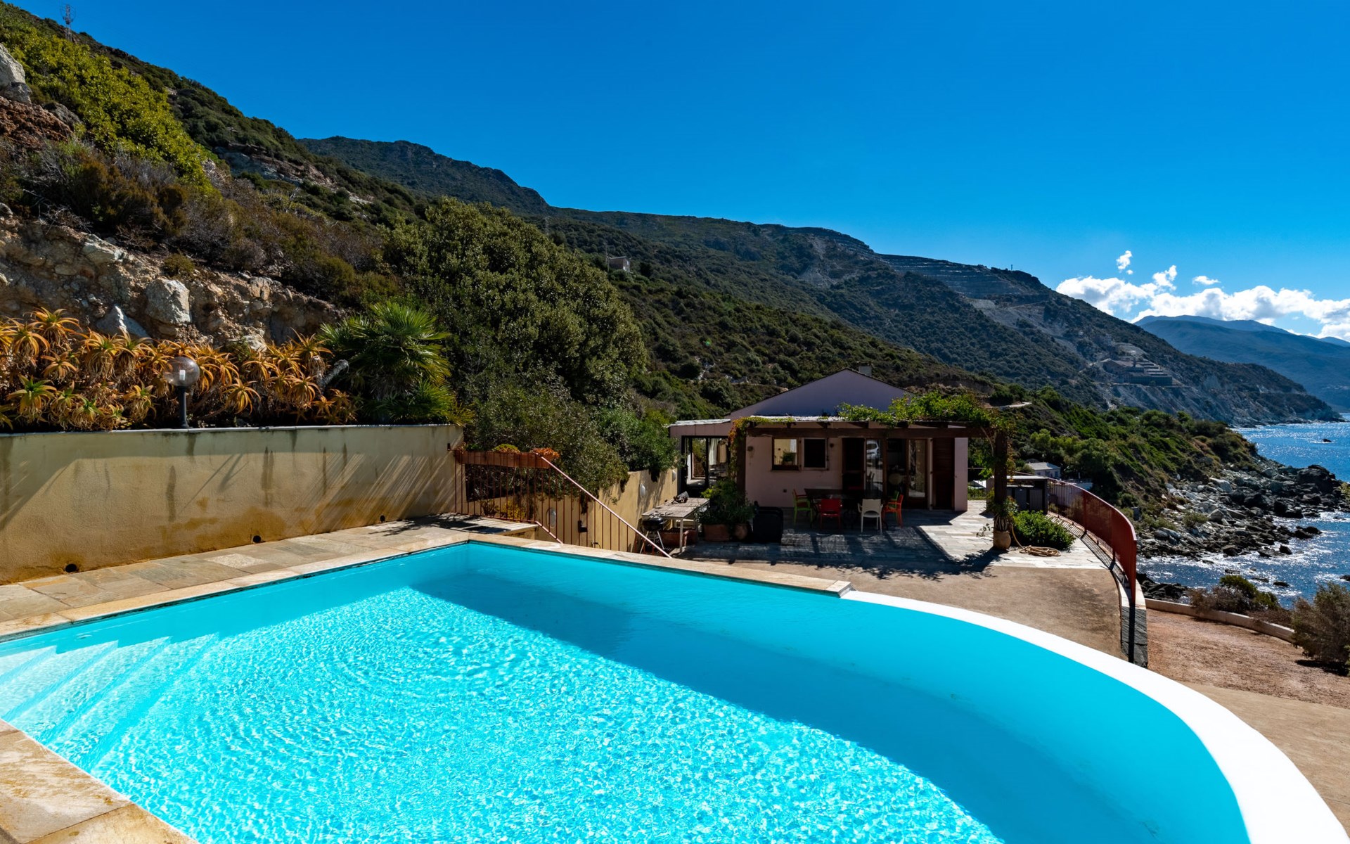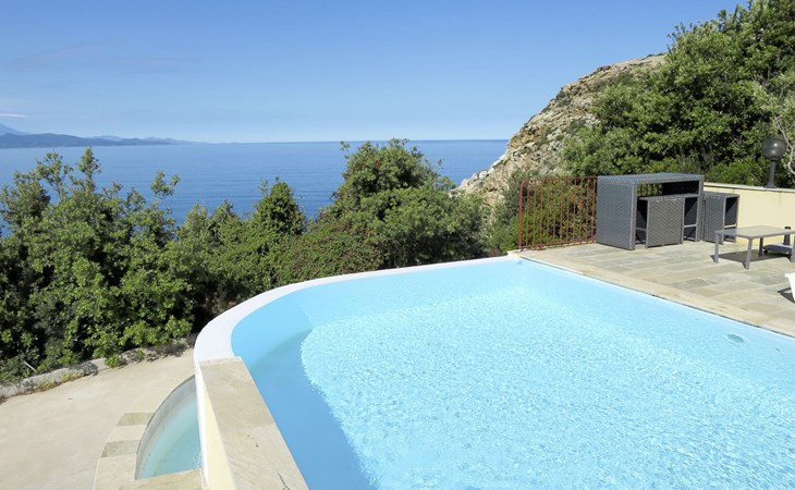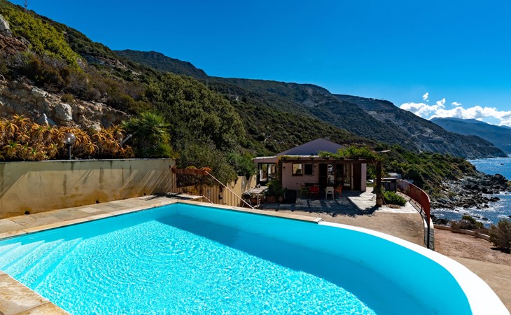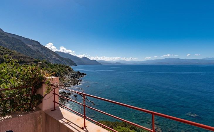 Zeer mooi, gezellige eengezinswoning "Balbi". In het gehucht Cannelle, 6 km van het centrum van Canari, 32 km van het centrum van St. Florent, 46 km van het centrum van Bastia, geïsoleerde, verhoogde ligging tegen een helling, direct aan zee, te midden van groen. Voor alleengebruik: wild terrein 1.000 m2, verzorgde tuin op verschillende niveaus met planten en bomen, openluchtzwembad beveiligd, omheind (6 x 4 m, seizoensgebonden beschikbaarheid: 01.Apr. - 31.Okt.). Terras, tuinmeubelen, onderhoud zwembad door de eigenaar/tuinman. 25 m steil voetpad naar het huis. Parkeerplaats (voor 2 auto's) bij het huis op 25 m. Levensmiddelenwinkel 6 km, restaurant 2 km, bushalte 30 km, zandstrand "Plage Albo" 6 km, rotsstrand 100 m (klein). Wandelroutes 100 m vanaf het huis. Auto noodzakelijk.