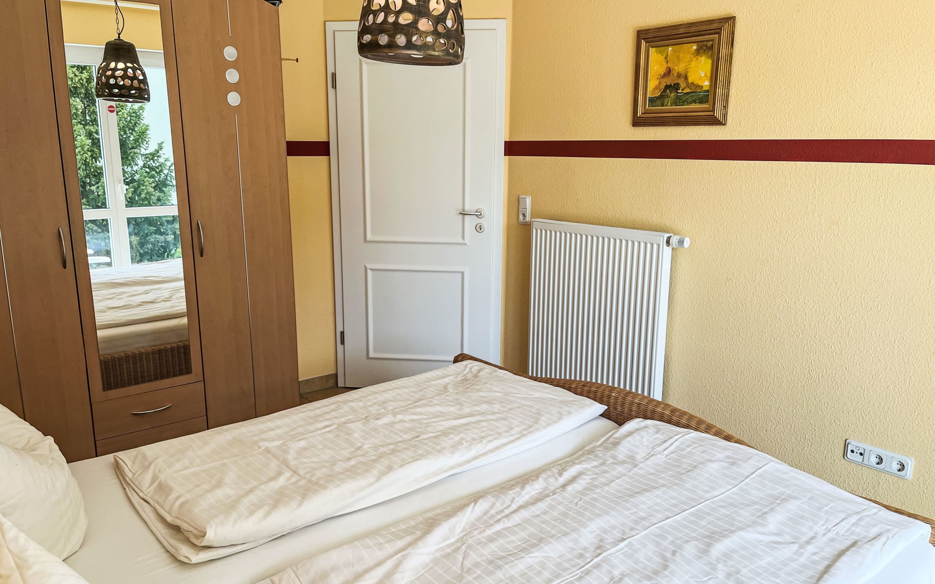 Flatgebouw. In de plaats, 850 m van het centrum van Koserow, 750 m van zee, van het strand. In het huis: bergruimte voor fietsen, centrale verwarming. Parkeerplaats op het terrein. Supermarkt 900 m, restaurant 300 m, bakkerij 1 km, café 1.3 km, bushalte 950 m, station 1.4 km, zandstrand 750 m, thermaalbad "Bernsteintherme" 9 km. Golfterrein (18 holes) 18 km, surfschool 9 km, midgetgolf 850 m.