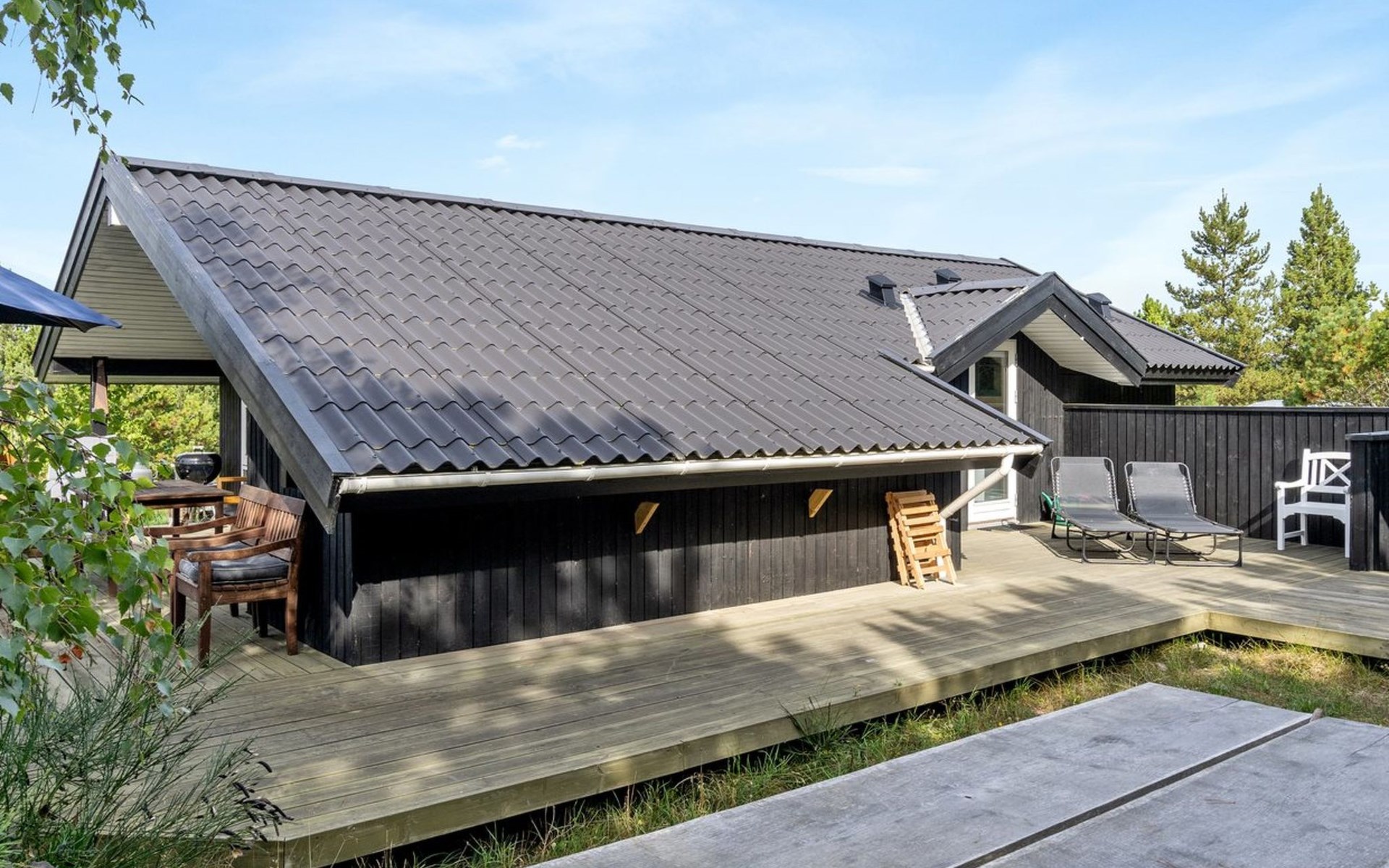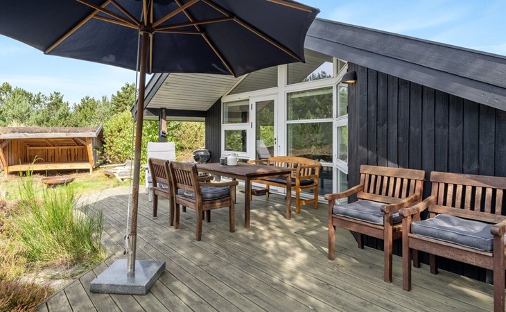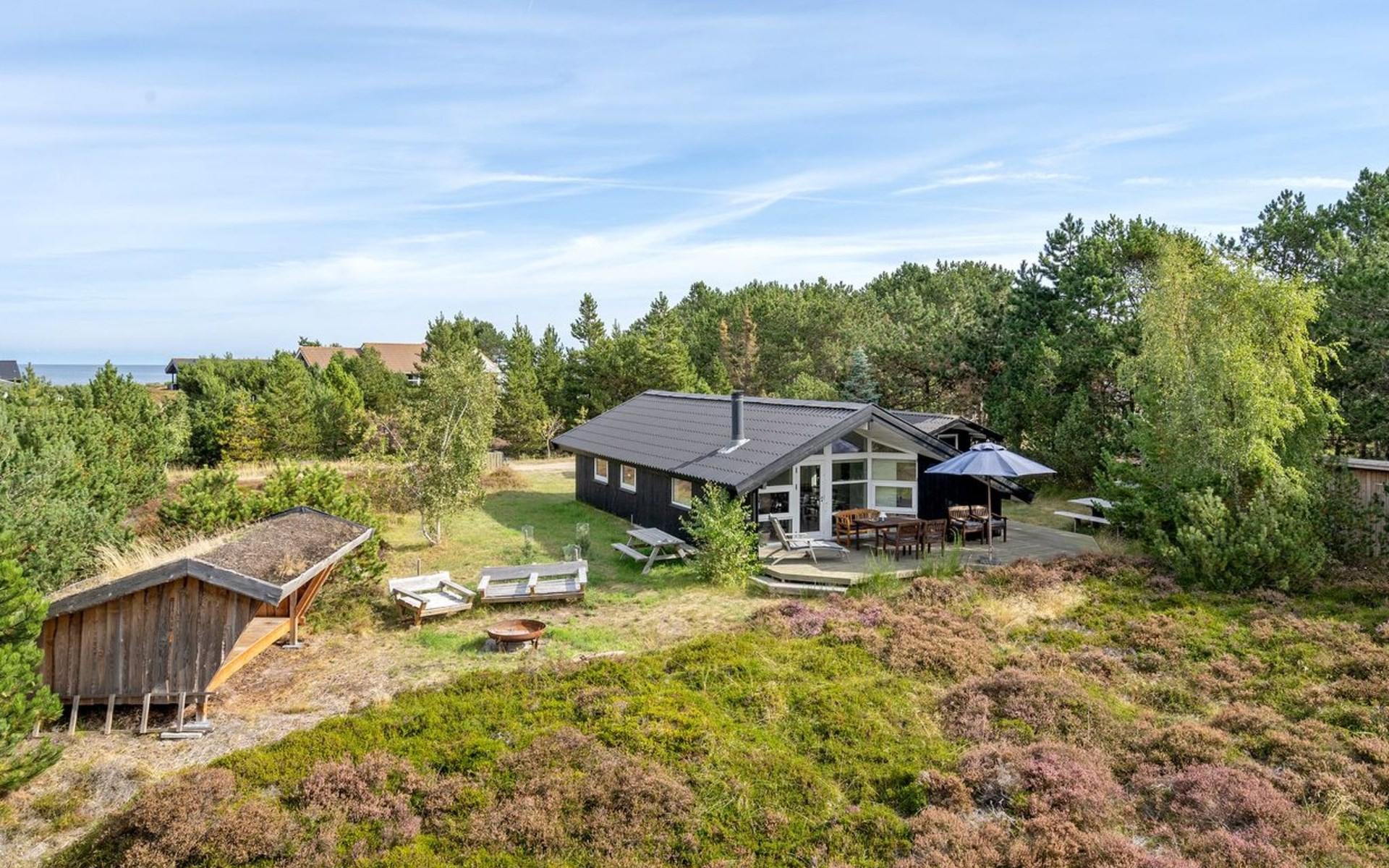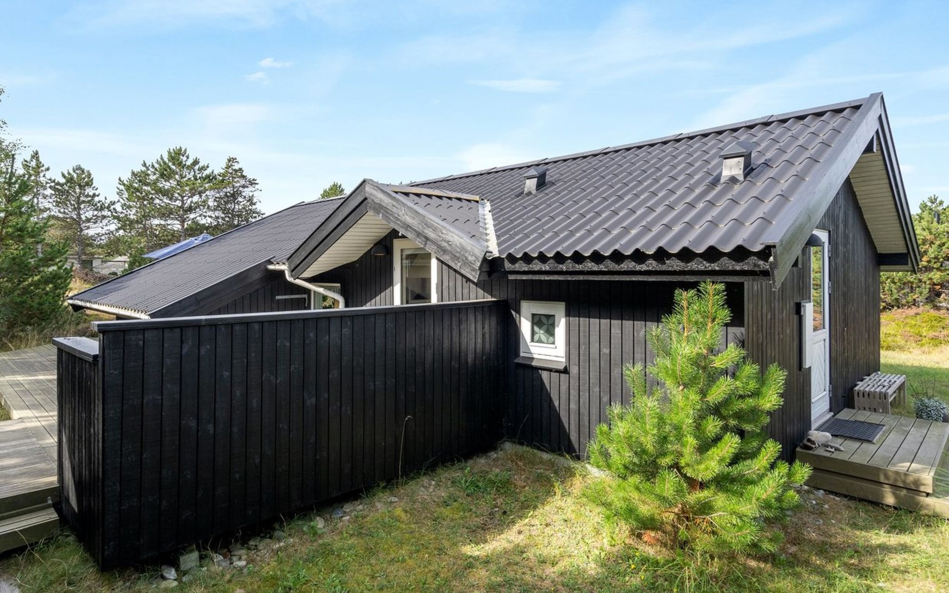 Eengezinswoning, bouwjaar 2001. 400 m van zee. Voor alleengebruik: wild terrein 1.835 m2. Terras (60 m2), barbecue, kinderspeelplaats, parkeerplaats bij het huis. Levensmiddelenwinkel 3 km. De eigenaar accepteert geen jeugdgroepen.