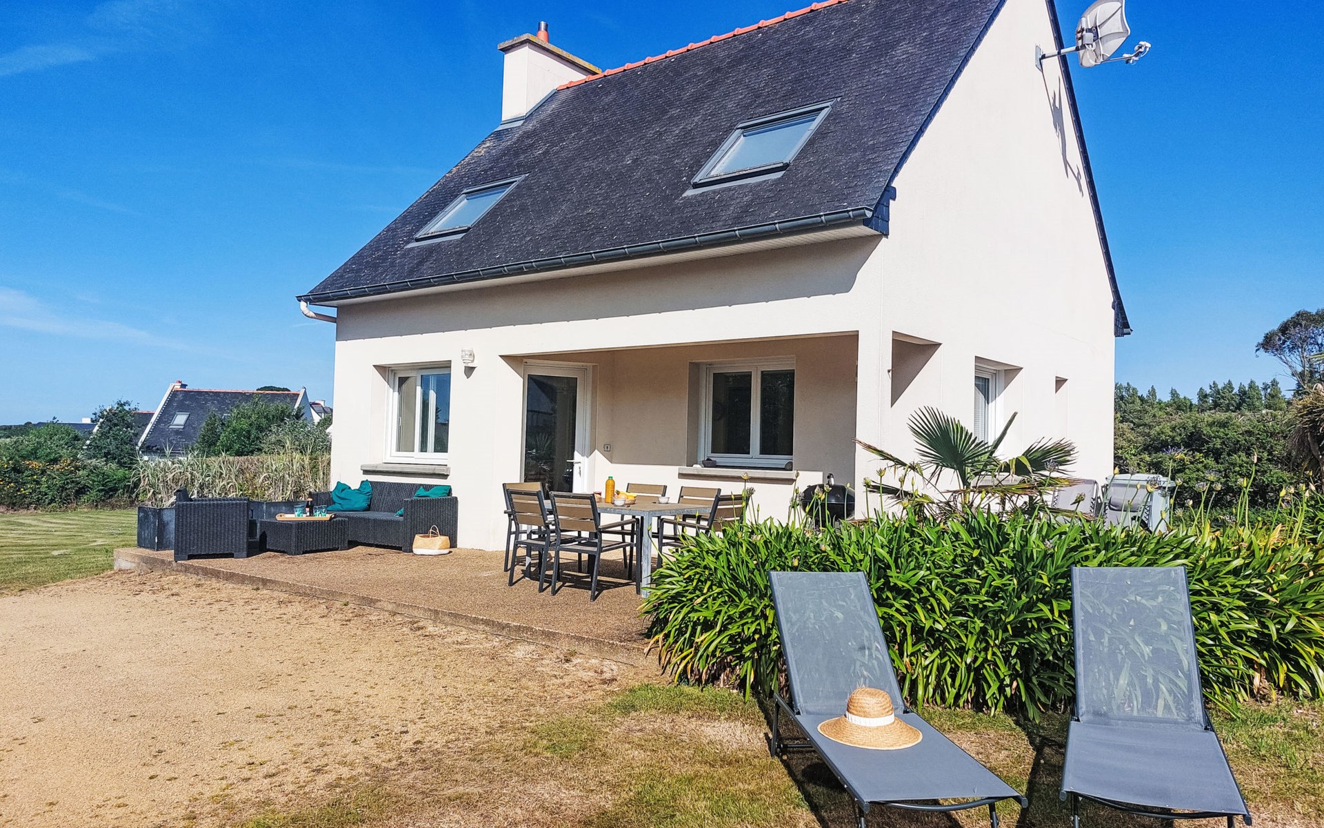 Eengezinswoning "de la Plage". In de wijk L'Armor, 2.5 km van het centrum van Pleubian, 10 km van het centrum van Treguier, 30 km van het centrum van Lannion, 100 m van zee, 100 m van het strand, aan een doodlopende weg. Voor alleengebruik: terrein 1.700 m2 met gazon, parkeerplaats (voor 2 auto's) op het terrein. Winkel 1 km, supermarkt 2.5 km, bushalte 3 km, zandstrand "Pors Rand" 100 m. Zeilschool 21 km. Attracties in de buurt: Sillon de Talbert 200 m, Tréguier 16 km, Paimpol 17 km, Plougrescant 26 km, Perros-Guirec 42 km. Wandelgebied GR34, Ile de Bréhat.