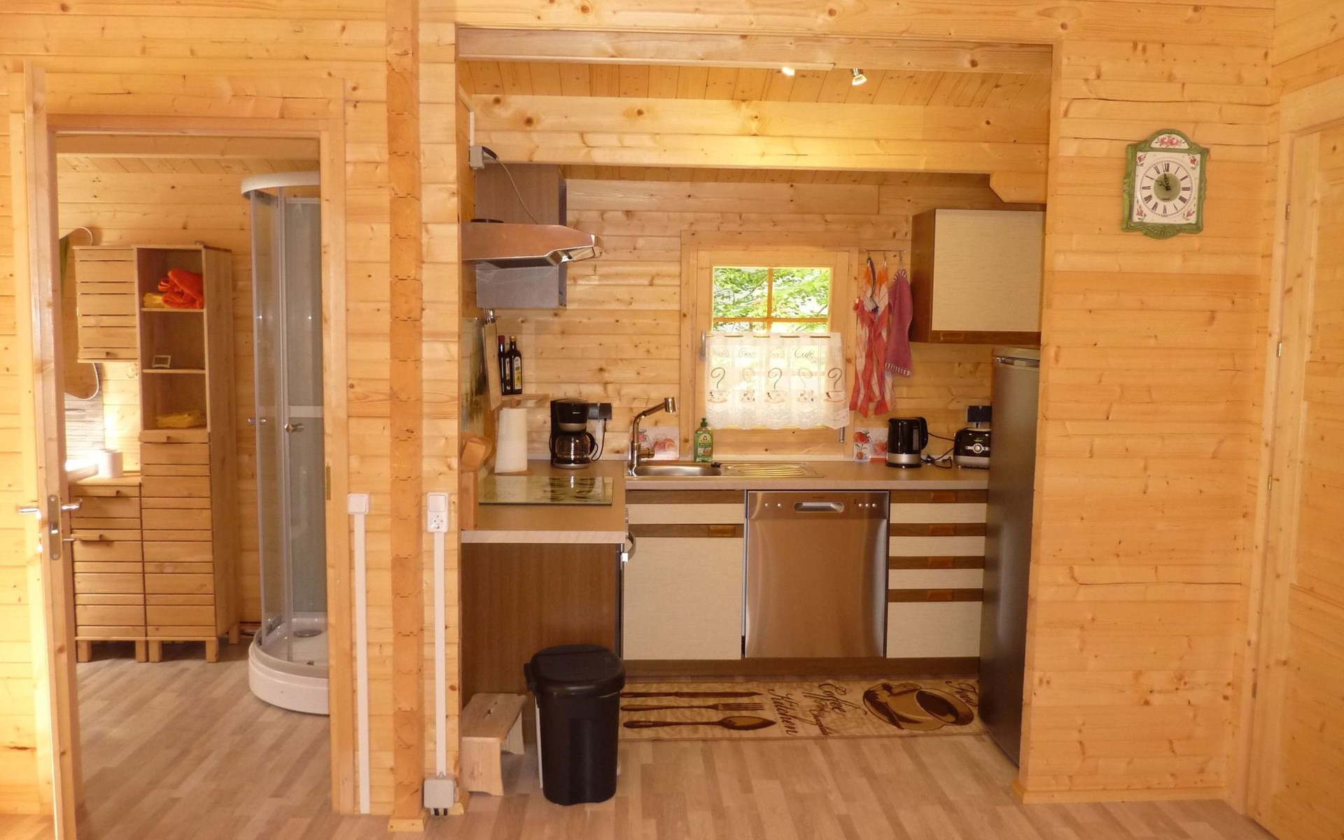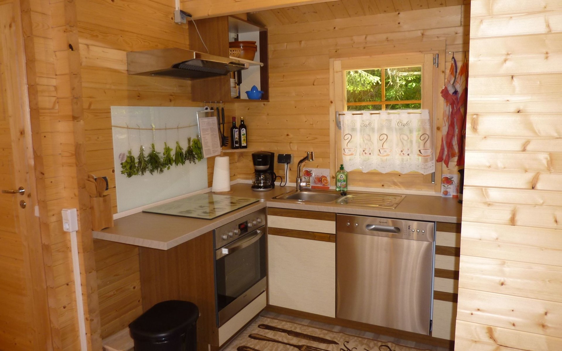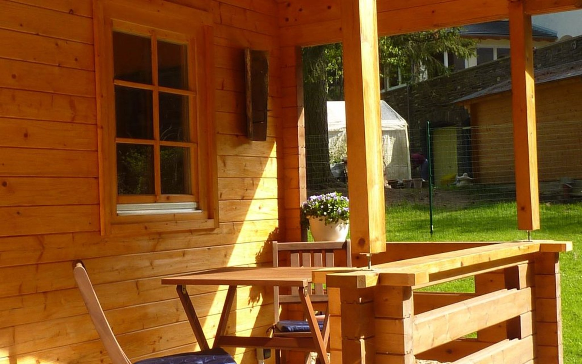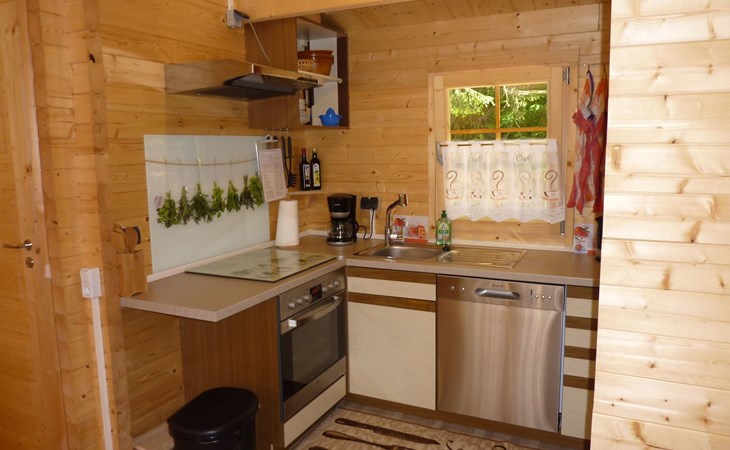 Maximaal 3 huisdieren/honden toegestaan. The wooden log cabin is located directly next to the forest, the Deimerbach meanders past the completely fenced property of the wooden log cabin.There is a small veranda in front of the log cabin, which invites you to linger in the morning sun or enjoy a cosy get-together in the evening. As the property around the house is fenced in, your four-legged friend can also enjoy time with you without any worries.The wooden log cabin has approx. 41 m² of living space, it has two bedrooms each with a double bed, a large living room with an open-plan kitchen and a bathroom with shower, WC and a window to the garden. For cooler days, there is a pellet stove in the living room that can heat the entire house. The kitchen is equipped with an electric cooker with oven and ceramic hob. A dishwasher makes washing up easier. There is also a large fridge, a kettle, a filter coffee machine and a toaster.The property is in a secluded location, so the access routes are a little further than you may be used to. However, the town of Kastellaun is only 2 minutes away by car and has a very good infrastructure with cafés, restaurants, indoor swimming pool, mini golf course, castle complex and much more. You can also go cycling in Schinderhannes-Land, hiking on dream loops and go on circular tours along the Rhine, Moselle and Nahe. Or experience forest adventures in the Kastellaun Nature Adventure Park, enjoy an impressive Kyrill Trail, a fragrant lavender labyrinth in summer and visit one of the longest suspension rope bridges in Germany from Mörsdorf to Sosberg. Or simply relax in peaceful surroundings. Listen to the Deimerbach stream and enjoy the time.In order to enjoy your holiday undisturbed and without stress, all our flats and holiday homes are without WLAN and without TV, so pure relaxation for people and animals. The Deimerbach flows for long stretches across our property, and in the Schnüffelgarten it is integrated into the exercise area so that your four-legged friends can also play in the water. On request, you can book a health check for humans and animals on site.