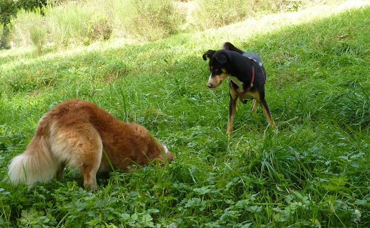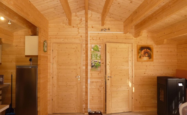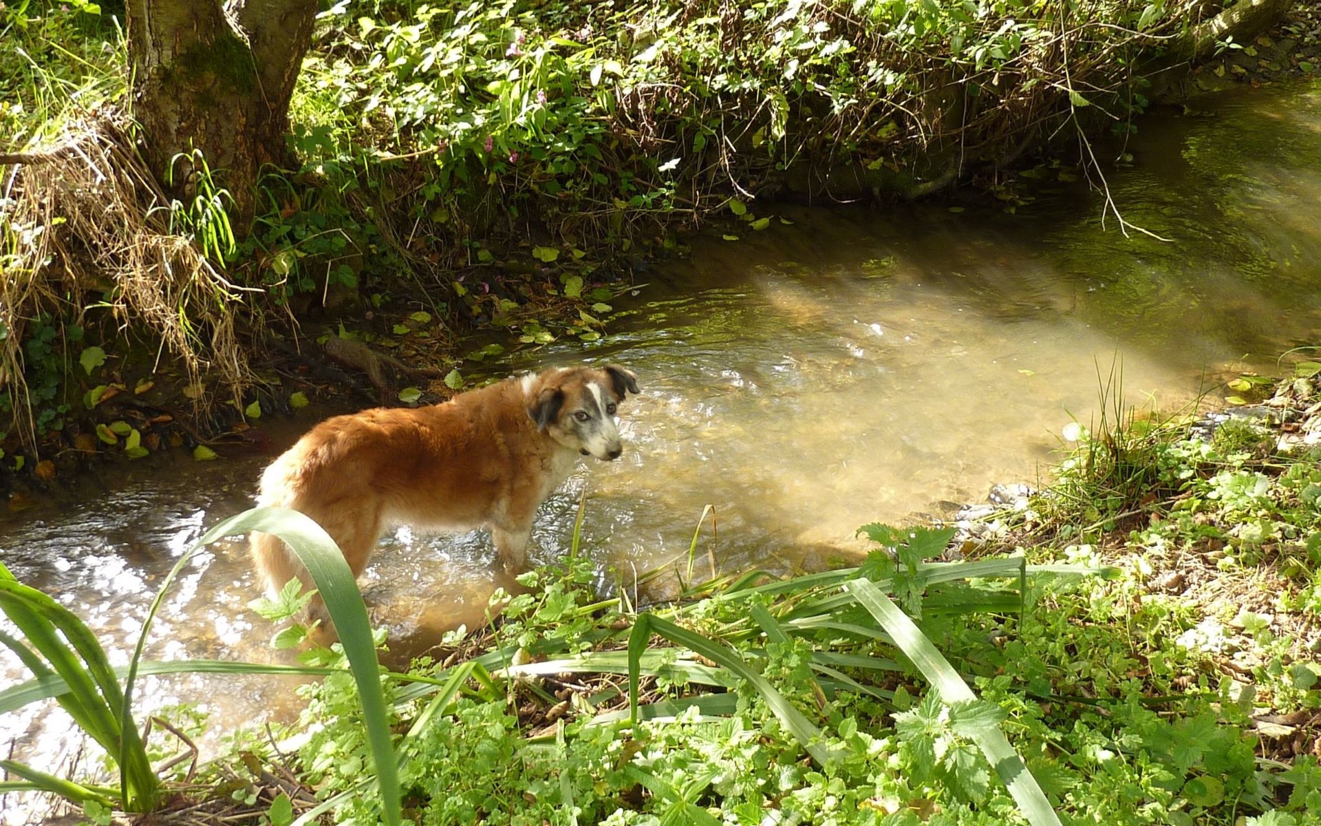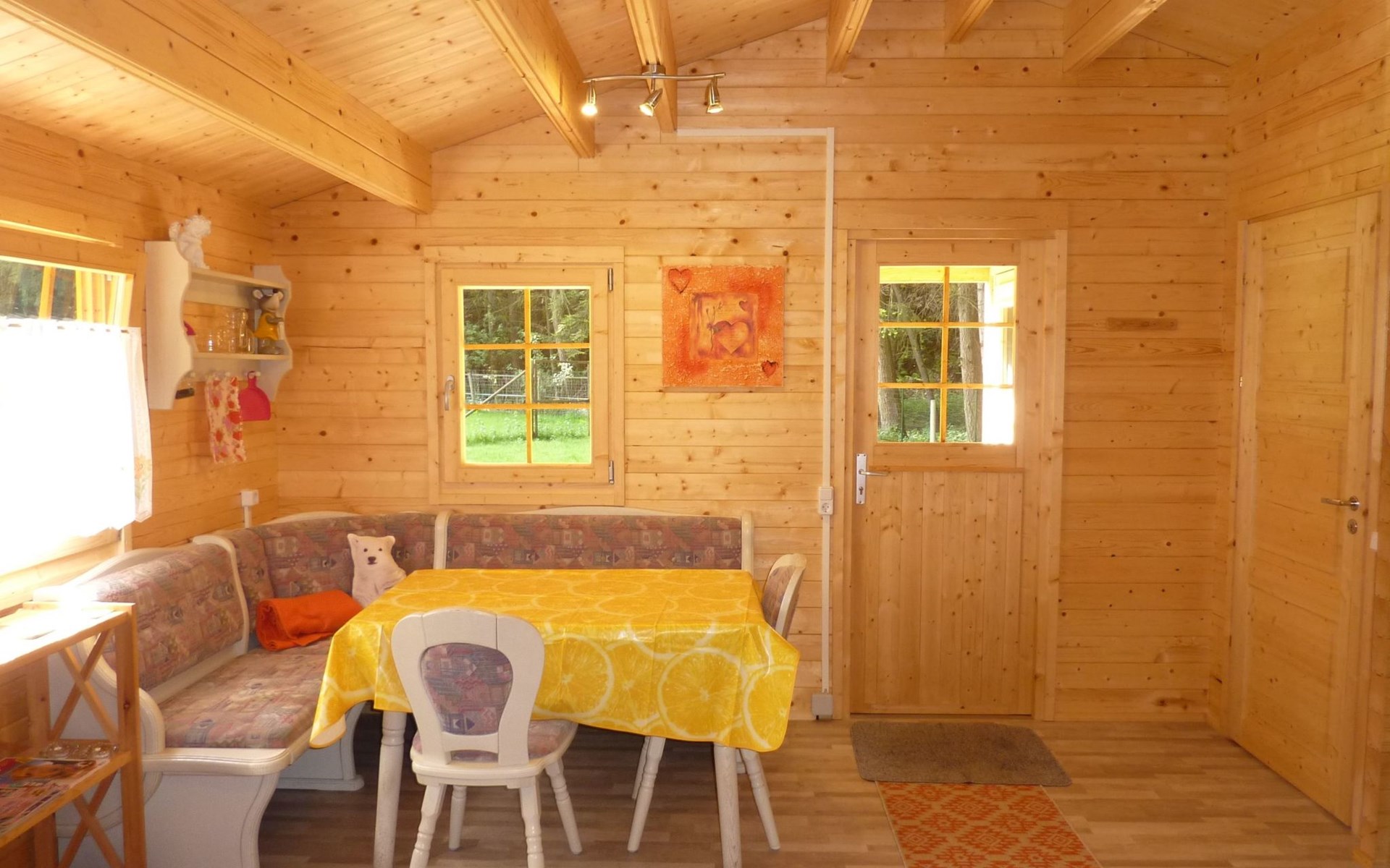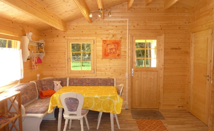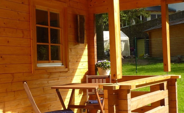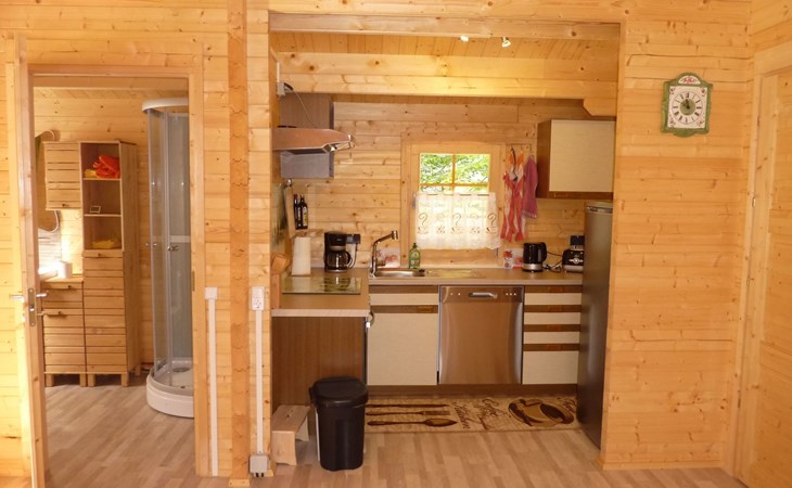 Maximaal 3 huisdieren/honden toegestaan. The wooden log cabin is located directly next to the forest, the Deimerbach meanders past the completely fenced property of the wooden log cabin.There is a small veranda in front of the log cabin, which invites you to linger in the morning sun or enjoy a cosy get-together in the evening. As the property around the house is fenced in, your four-legged friend can also enjoy time with you without any worries.The wooden log cabin has approx. 41 m² of living space, it has two bedrooms each with a double bed, a large living room with an open-plan kitchen and a bathroom with shower, WC and a window to the garden. For cooler days, there is a pellet stove in the living room that can heat the entire house. The kitchen is equipped with an electric cooker with oven and ceramic hob. A dishwasher makes washing up easier. There is also a large fridge, a kettle, a filter coffee machine and a toaster.The property is in a secluded location, so the access routes are a little further than you may be used to. However, the town of Kastellaun is only 2 minutes away by car and has a very good infrastructure with cafés, restaurants, indoor swimming pool, mini golf course, castle complex and much more. You can also go cycling in Schinderhannes-Land, hiking on dream loops and go on circular tours along the Rhine, Moselle and Nahe. Or experience forest adventures in the Kastellaun Nature Adventure Park, enjoy an impressive Kyrill Trail, a fragrant lavender labyrinth in summer and visit one of the longest suspension rope bridges in Germany from Mörsdorf to Sosberg. Or simply relax in peaceful surroundings. Listen to the Deimerbach stream and enjoy the time.In order to enjoy your holiday undisturbed and without stress, all our flats and holiday homes are without WLAN and without TV, so pure relaxation for people and animals. The Deimerbach flows for long stretches across our property, and in the Schnüffelgarten it is integrated into the exercise area so that your four-legged friends can also play in the water. On request, you can book a health check for humans and animals on site.