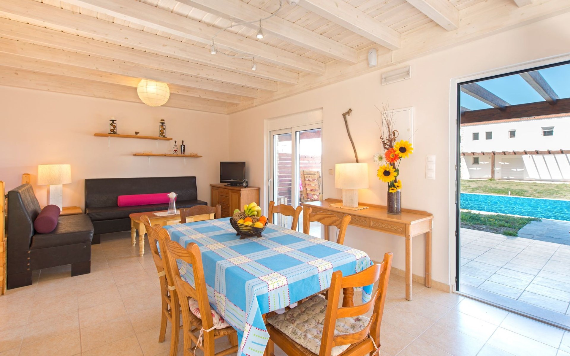These modern Greek-style villa is only 300m from the beach and with a beautiful view of the surrounding mountains. Cozy semi-detached house with modern comforts and a big common swimming pool. Everything you need is on a walking distance!Enjoy a comfort Stay on Rhodes at Petaloudes house.The Villa is Located only 300 meters from the beach, with a short walk to everything you need. Nice greek Tavernas, shops, cafeterias, minimarkets, bars, the beach, etc.Seven Springs is only 5 min away and Rhodos nicest sandy beach called TSAMPIKA BEACH, is the beach next to you.It has a big common swimming pool, which is filled up from 01 April until the end of October. It has airconditioning on the ground floor & bedrooms. The villa is a 2-floor semi-detached cozy furnitured house with spacious living room, dining table, WC, double sofa bed and the kitchen on the ground floor. Here you will also find your own private outside bathroom where two persons at the same time can shower under the blue sky. This is our guest's favorite spot of the villa. On the ground floor you will also find our 4th bedroom. Which is a nice small semi-detached bedroom next to the house with access from your garden :-)Upstairs there is a spacious bathroom with two double bedrooms and a family room with (double bed and a single bed). The house provides all its comfort you need. it has a fully equipped kitchen with a washing machine and outside BBQ.The villa has a big private garden on the front and a bigger common area on the back covered with grass. We have big windows and doors which you can open to enter your back patio. The backyard is connected with the swimming pool and your own private jacuzzi on your terasse where you can enjoy the sunset breeze with a glass of wineYou have a wonderful mountain view a nice garden and you are located in a quite area. You are still not far from the busy main street where everything is happening. Kolymbia is located 20 minutes from Rhodes town and it is only four minutes from the village of Afandou and Archangelos with its many facilities and an 18-hole golf course. The villa sleeps up to 10-11 persons. Prices shown are up to 8 persons.Above 8 there will be an additional fee per person per night. Which you can pay upon arrival.Is covered with grass, BBQ area, big common swimming pool and wonderful scenery over the mountains which are next to the sea!A car is recommended if you would like to explore the island. We can help you arrange one waiting for you at the airport from local rent car agencies that have very good prices!UPSTAIRSMaster bedroom 1 / one double bedBedroom 2 / one double bed or 2 single bedsFamily room 3 / 3 single beds Big family bathroom (shower and wc)DOWNSTAIRSTraditional double sofa bed downstairs ( sleeps 2 persons)Extra guest room - one double bed sleeps 2.Living roomDinning areaKitchenSecond bathroom (shower and wc)The house have a nice atmosphere located on quiet, very safe and children friendly neighbourhood. Everything is on a walking distance , Super marked, cafeterias, restaurants, shops and bars. The sea is only a short walk awayEverything is on a walking distance , Super marked, cafeterias, restaurants, shops and bars. The sea is only 300 meters away.A car is recommended if you would like to explore the island. We can help you arrange one waiting for you at the airport from local rent car agencies that have very good prices! 1476K134K0446301